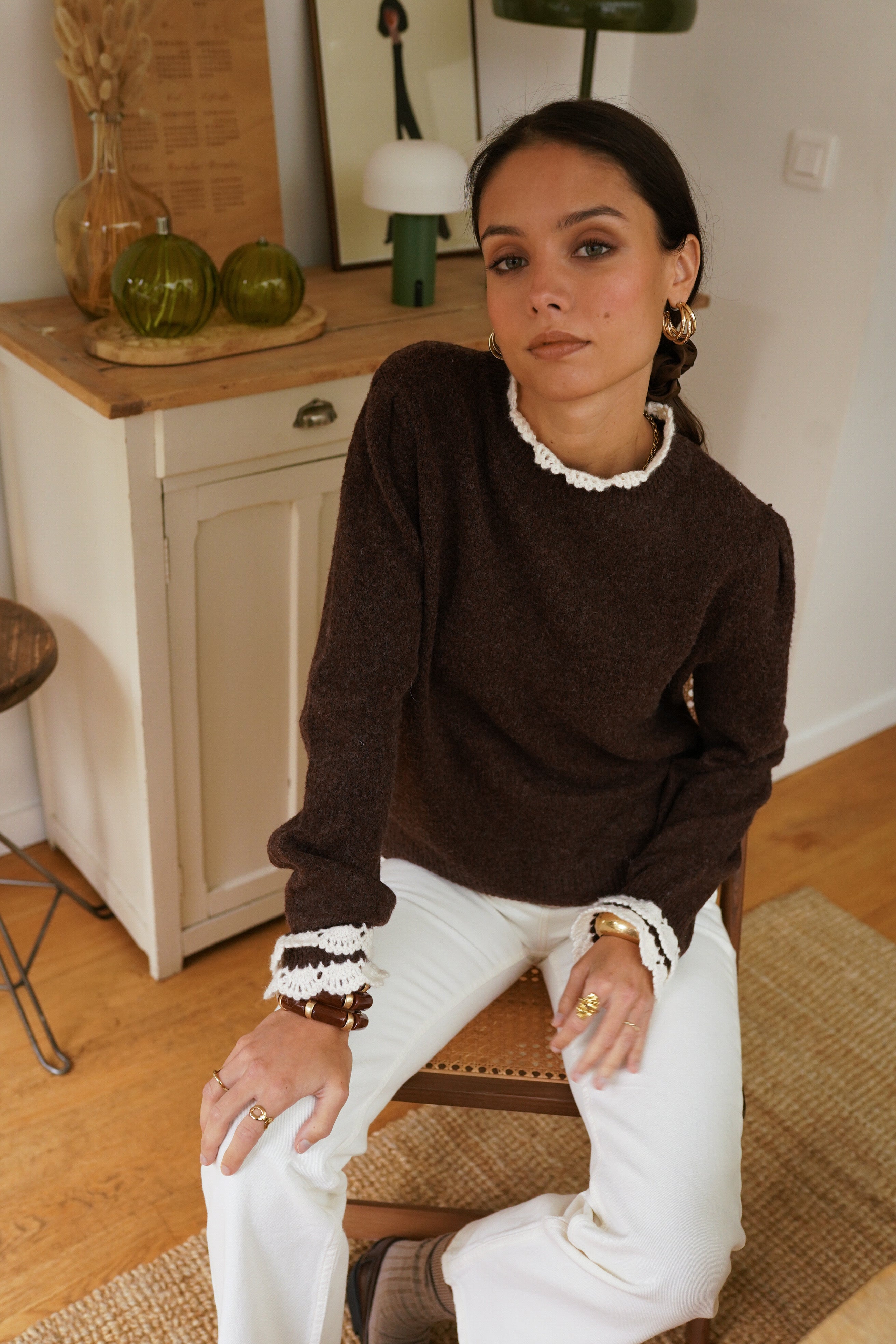 Estelle Crochet Sweater - Brown