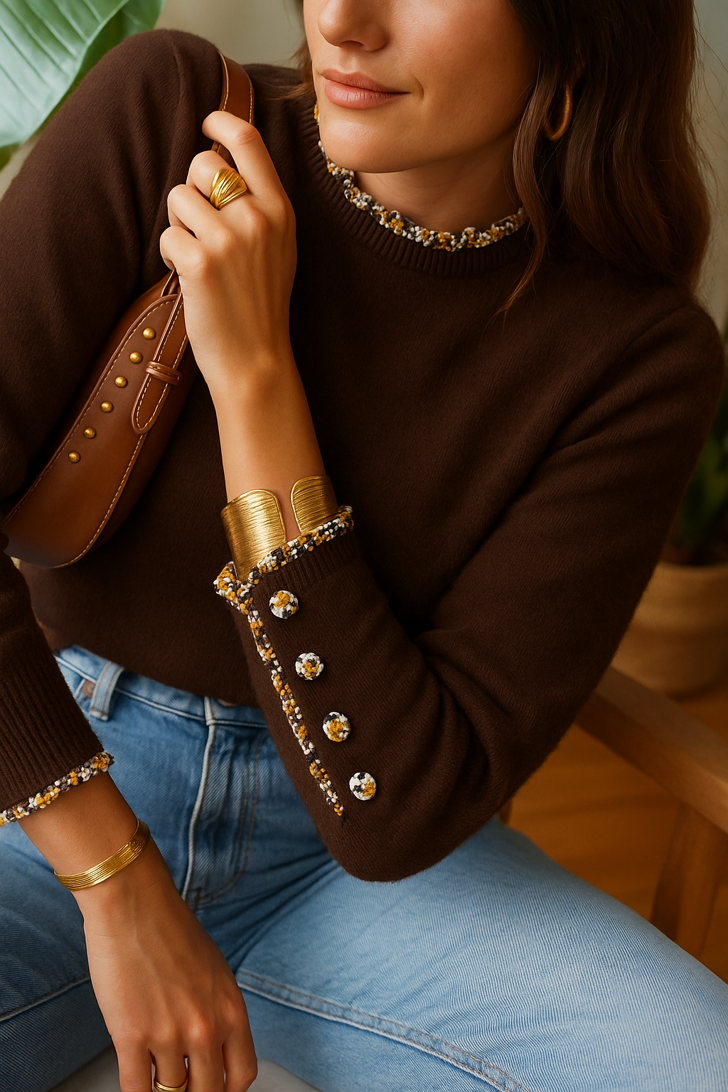 Pauline Button Sleeve Sweater - Chocolate