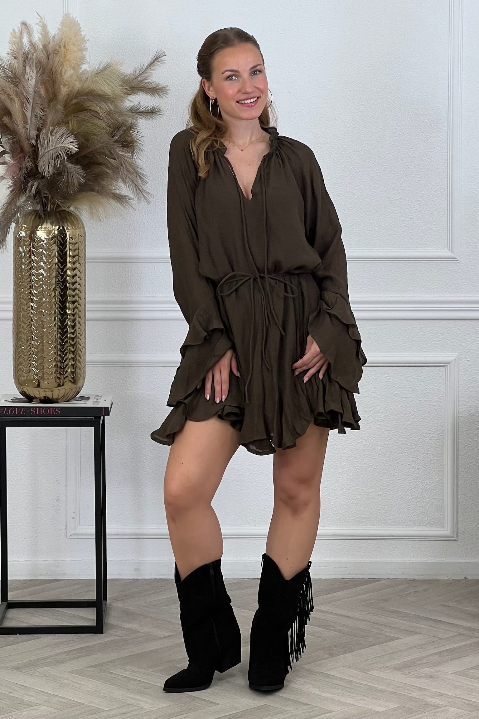 Milos Ruffle Dress - Chocolate