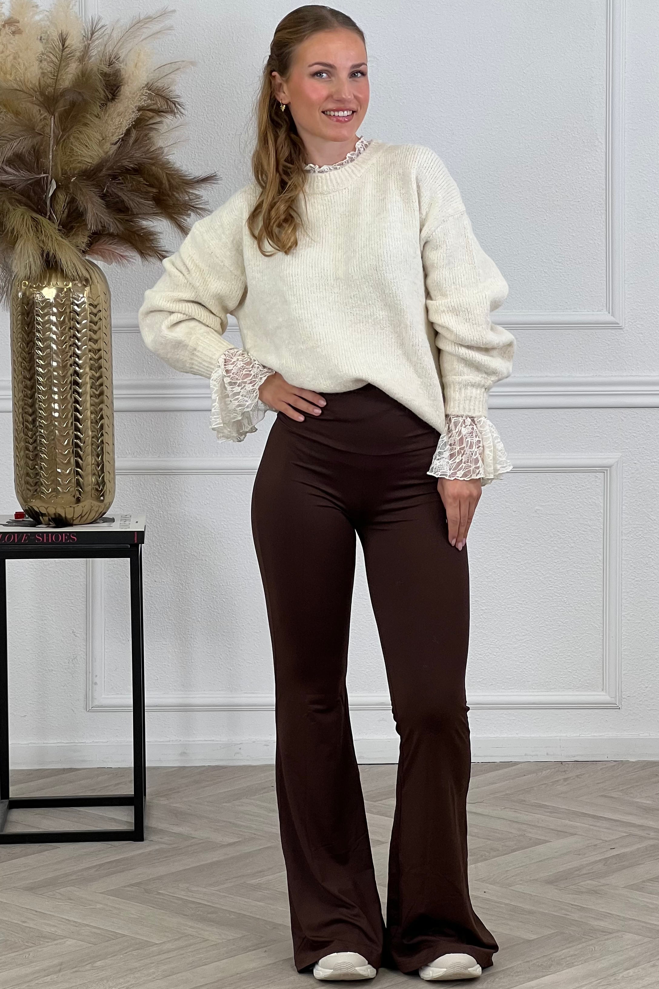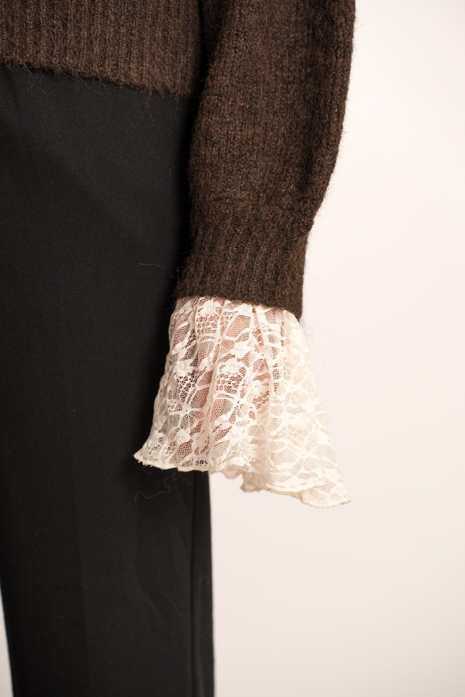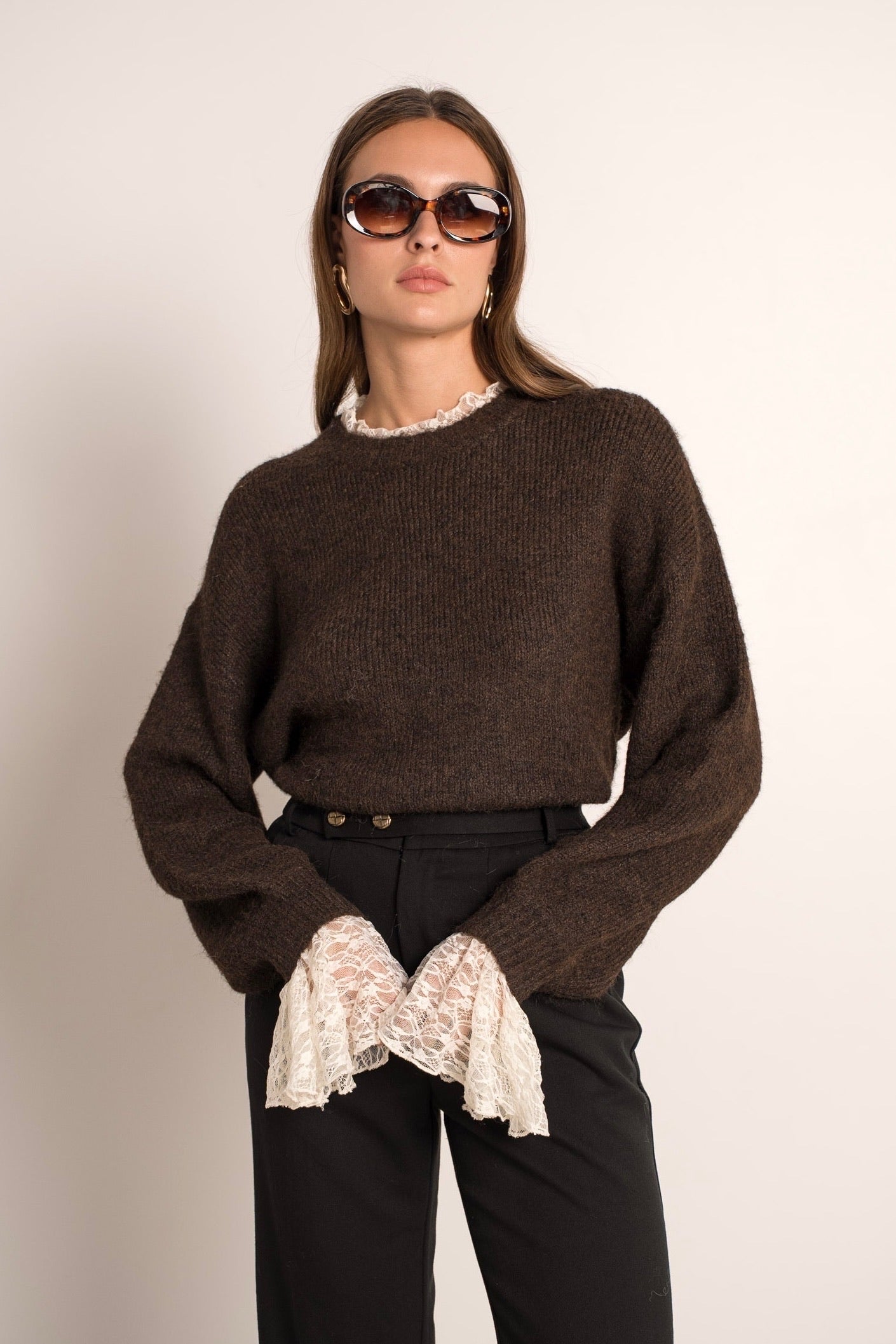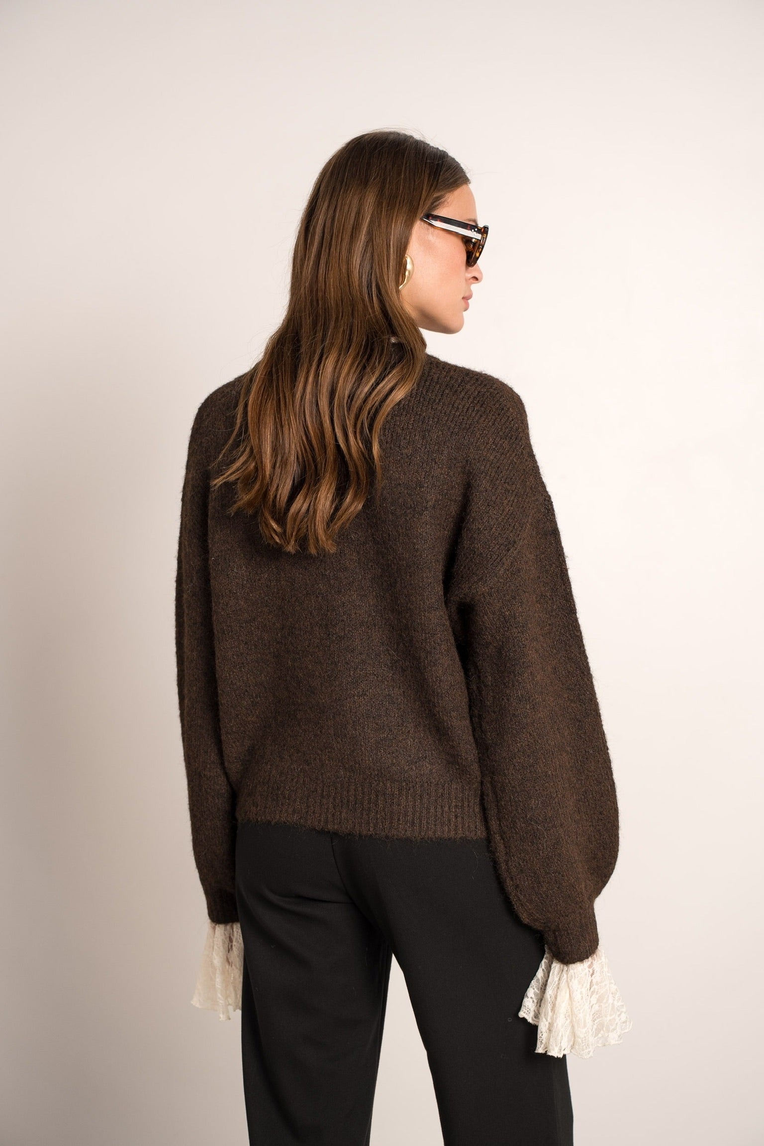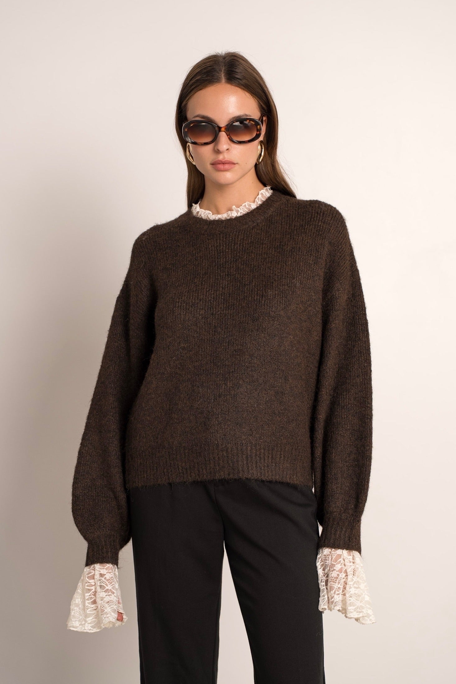 Perfect Lace Sleeve Sweater - Brown