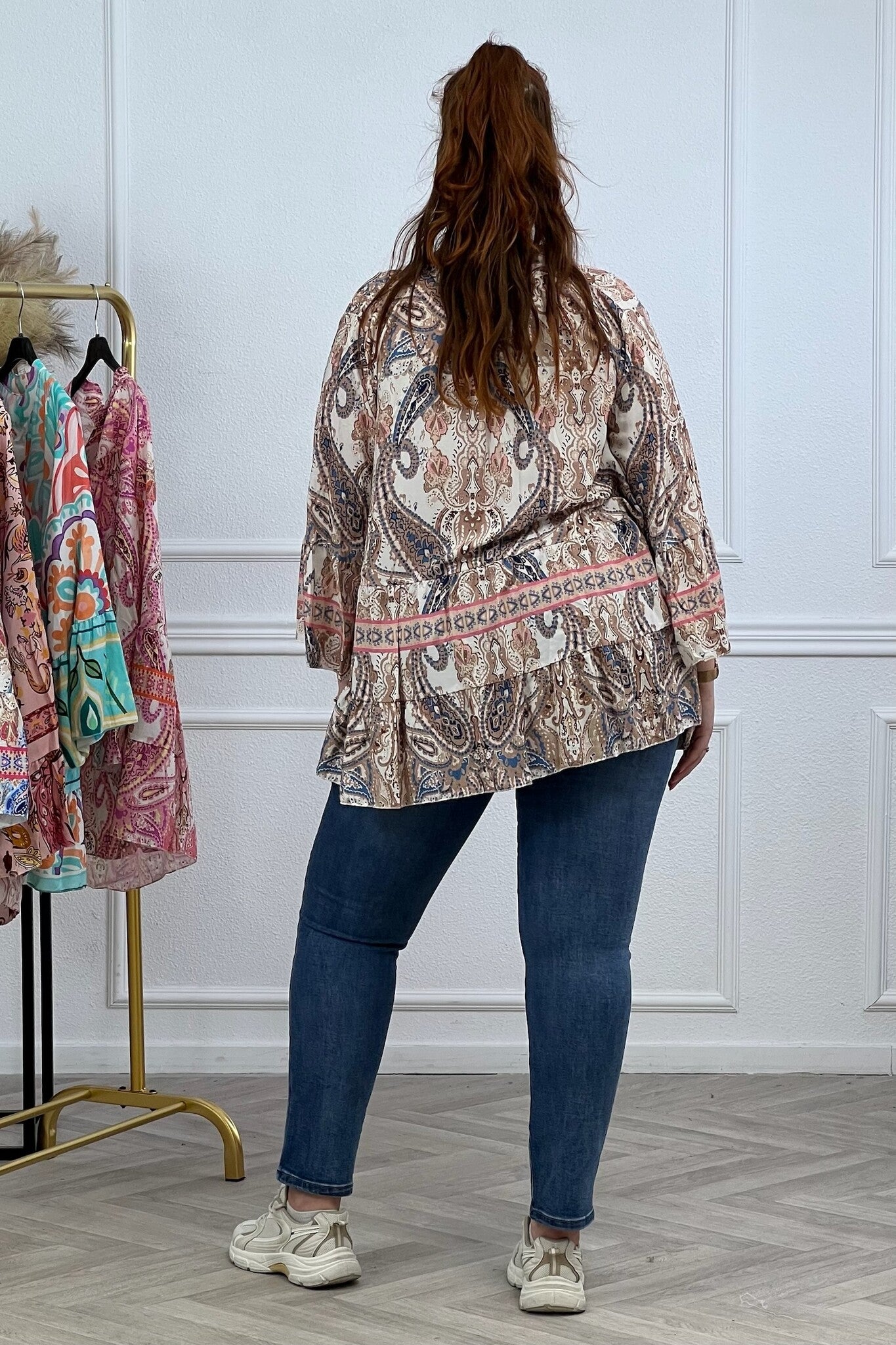 Paisley Button Blouse - Brown/White