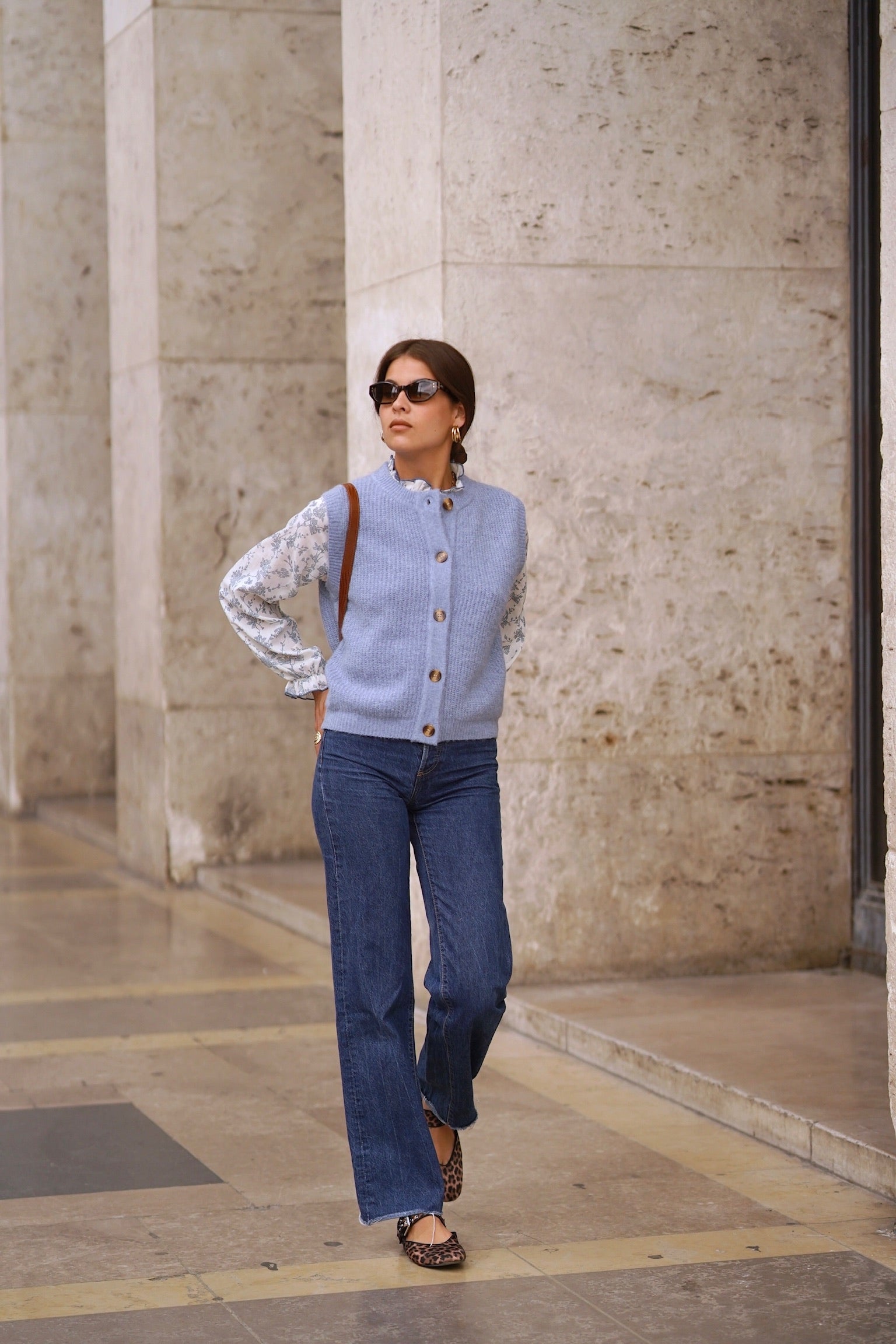 Chiara Button Vest - Blue