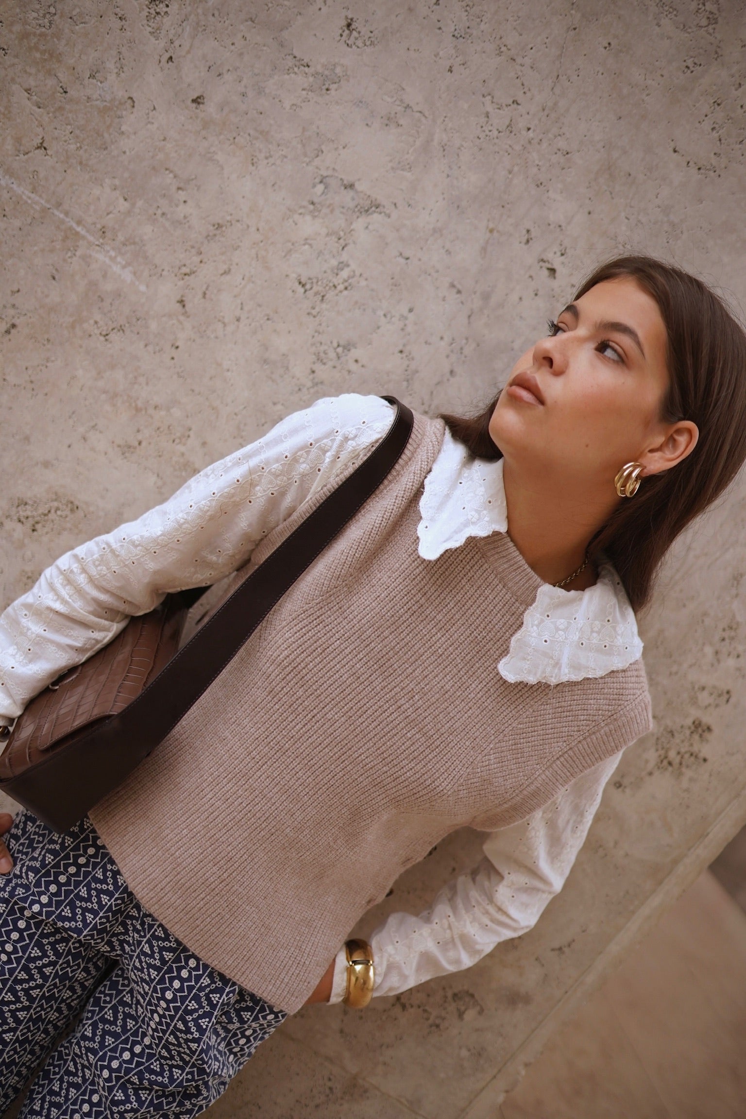 La Dolce Vita! Wow! Deze prachtige classy blouse met grote kraag en broderie details is werkelijk prachtig! Shop hem in beige!