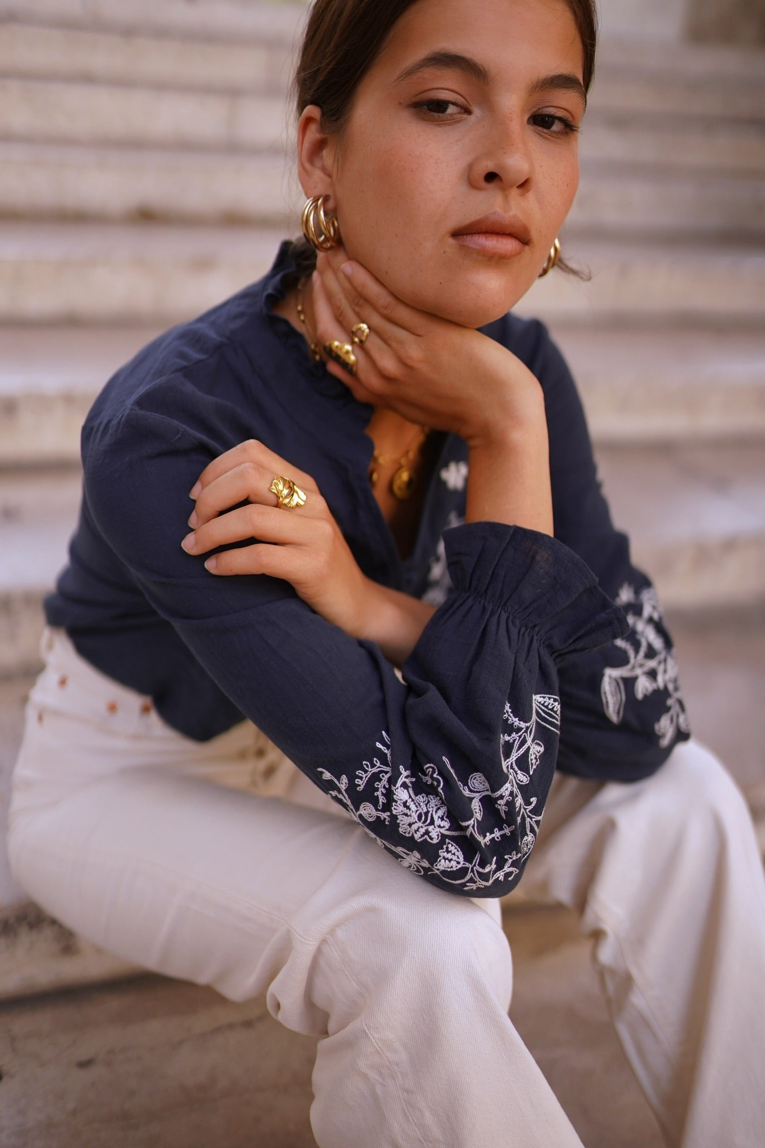 Rosa Flower Blouse - Navy
