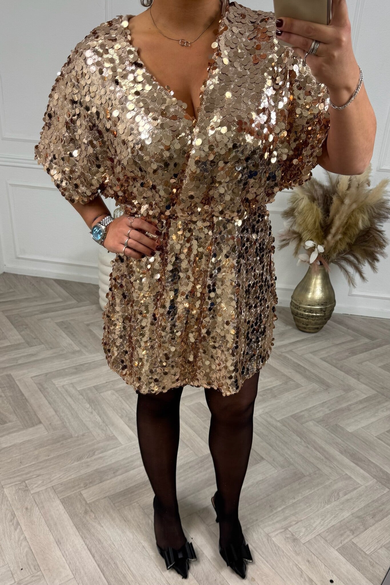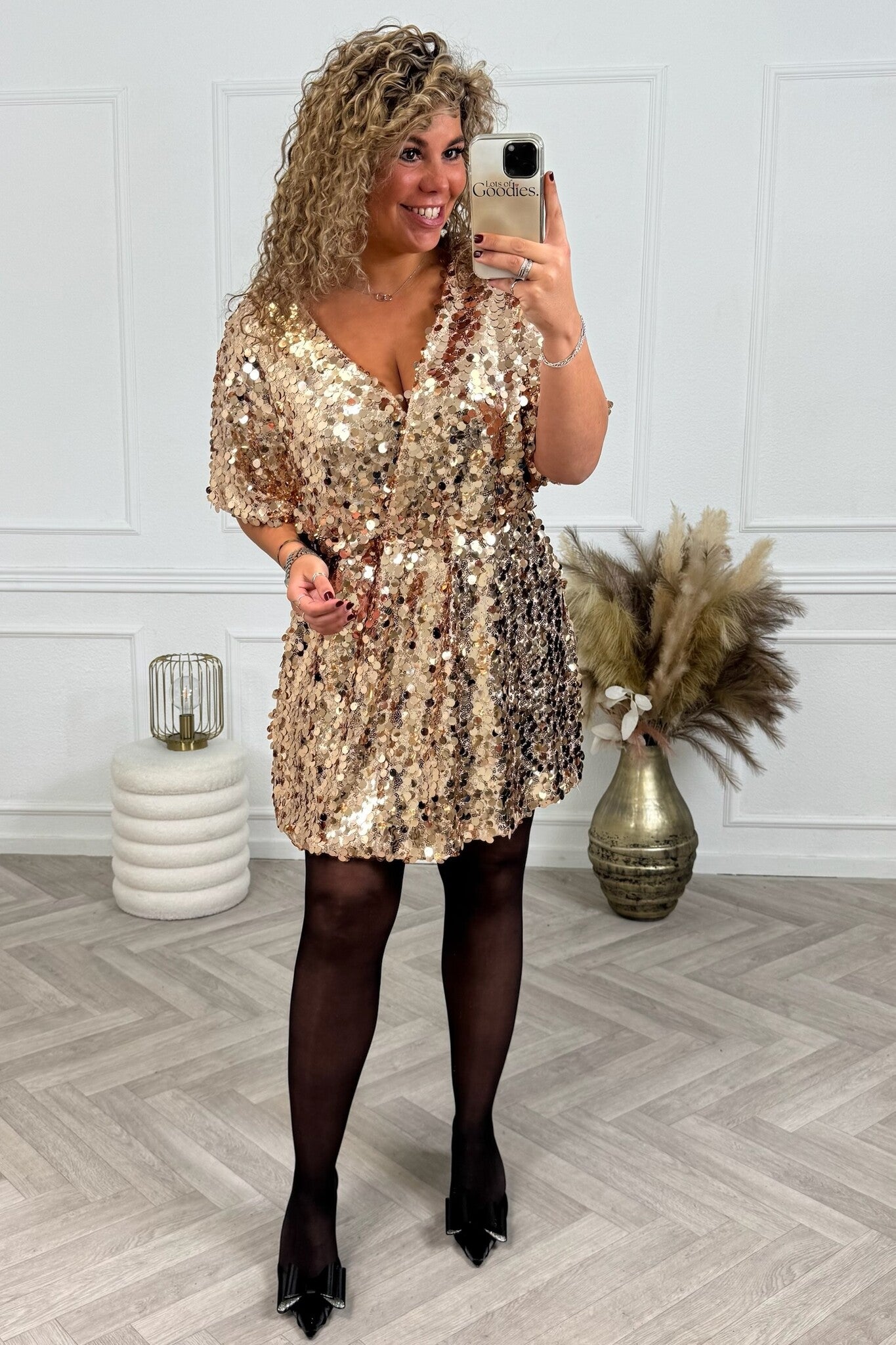 Wat een fijne curvy dress! Je zult stralen tijdens de komende feestdagen! Deze heerlijke party dress shop je nu nieuw online! Shop hem in gold!