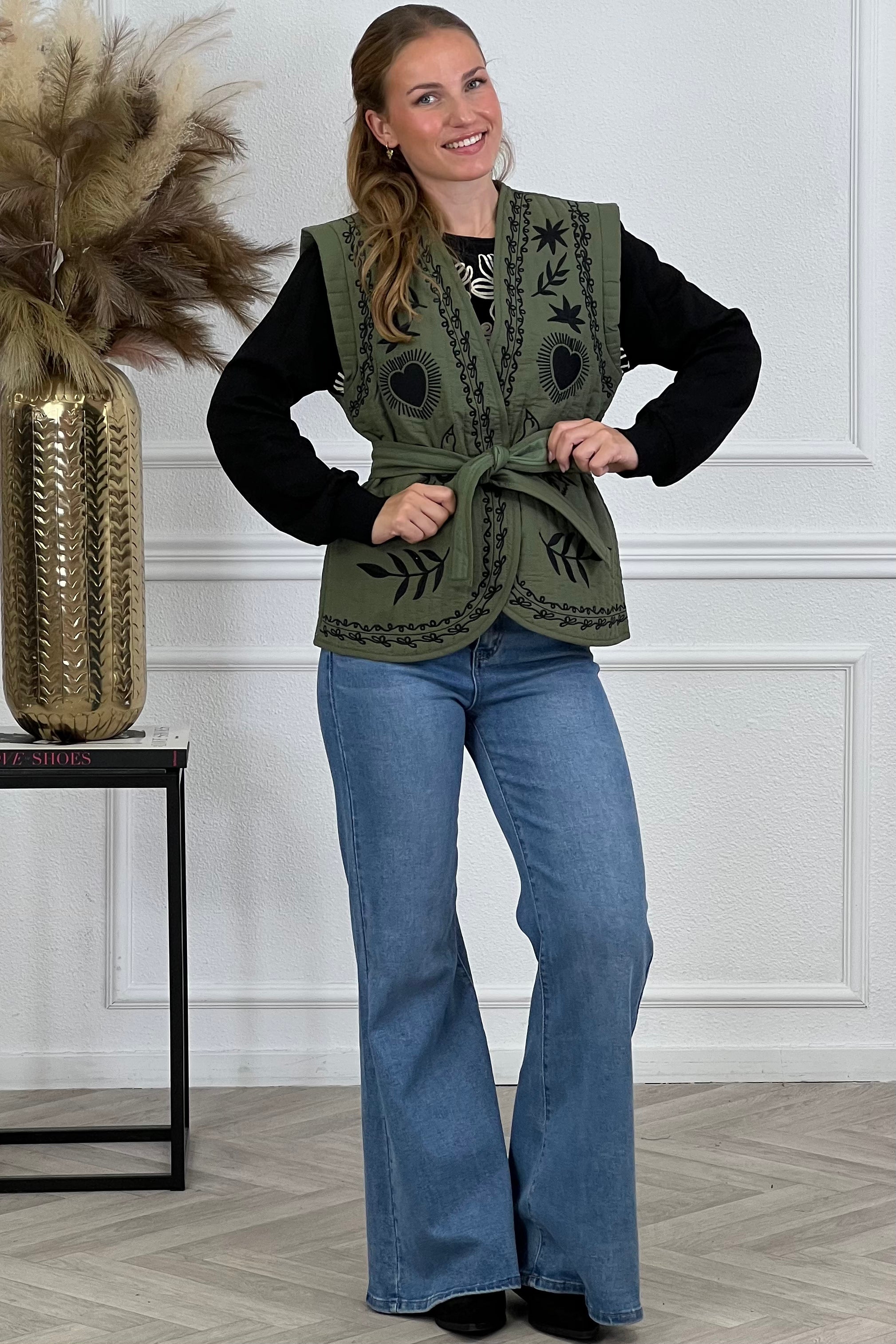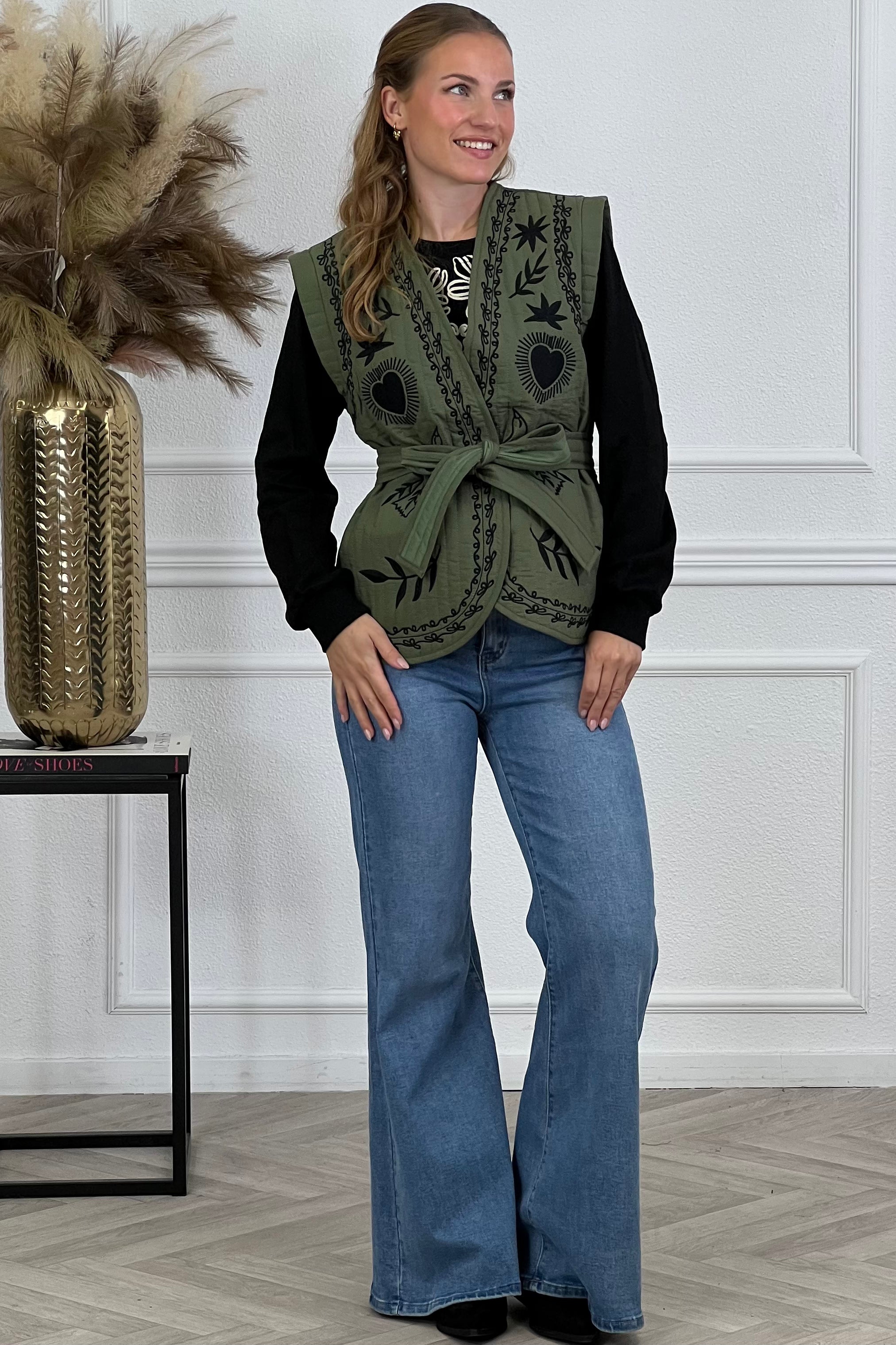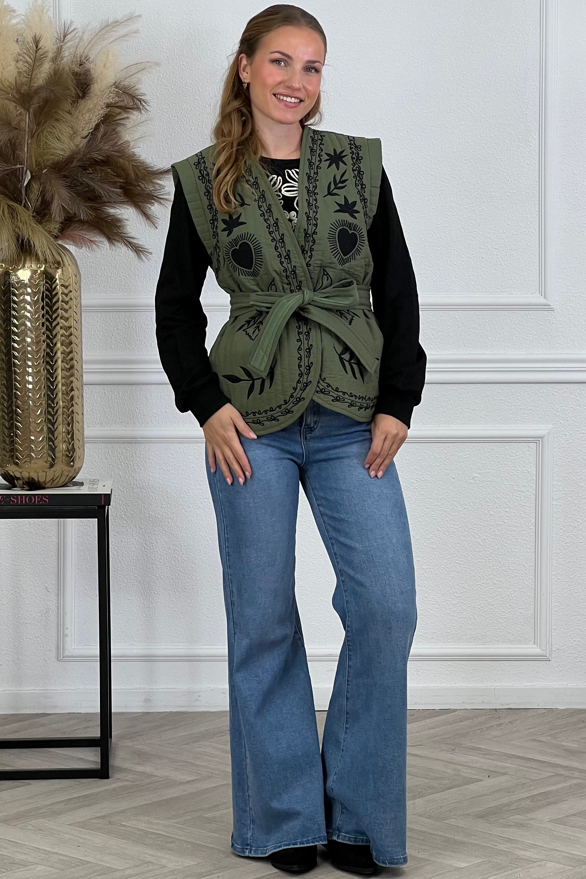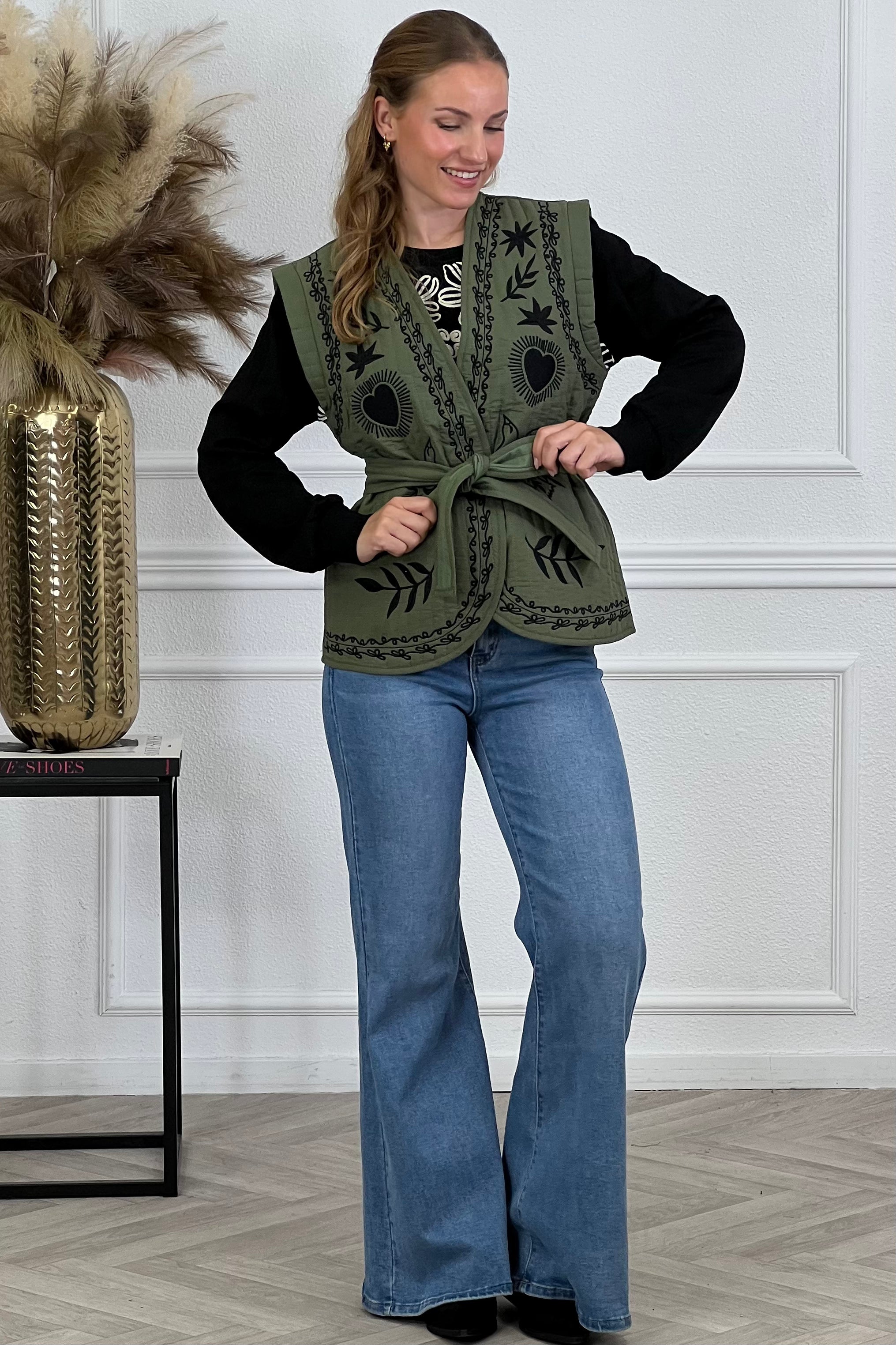 Wow! Wat een mooi gilet! Shop hem nu met een mooie print in armygreen!