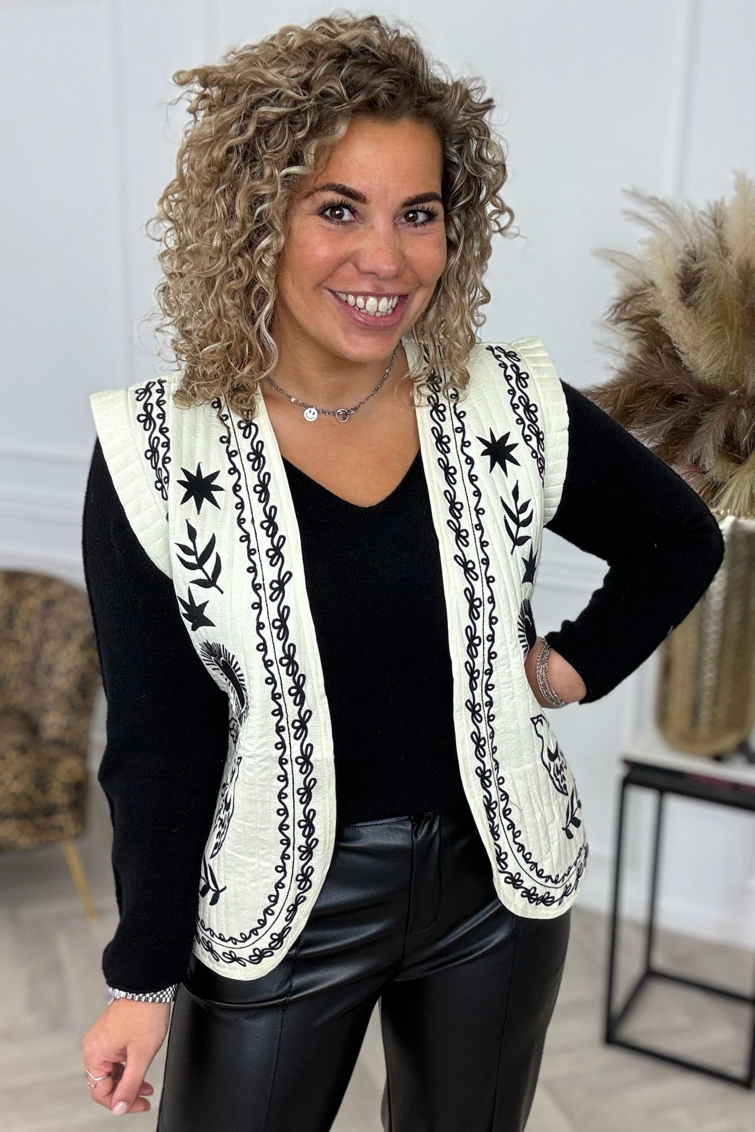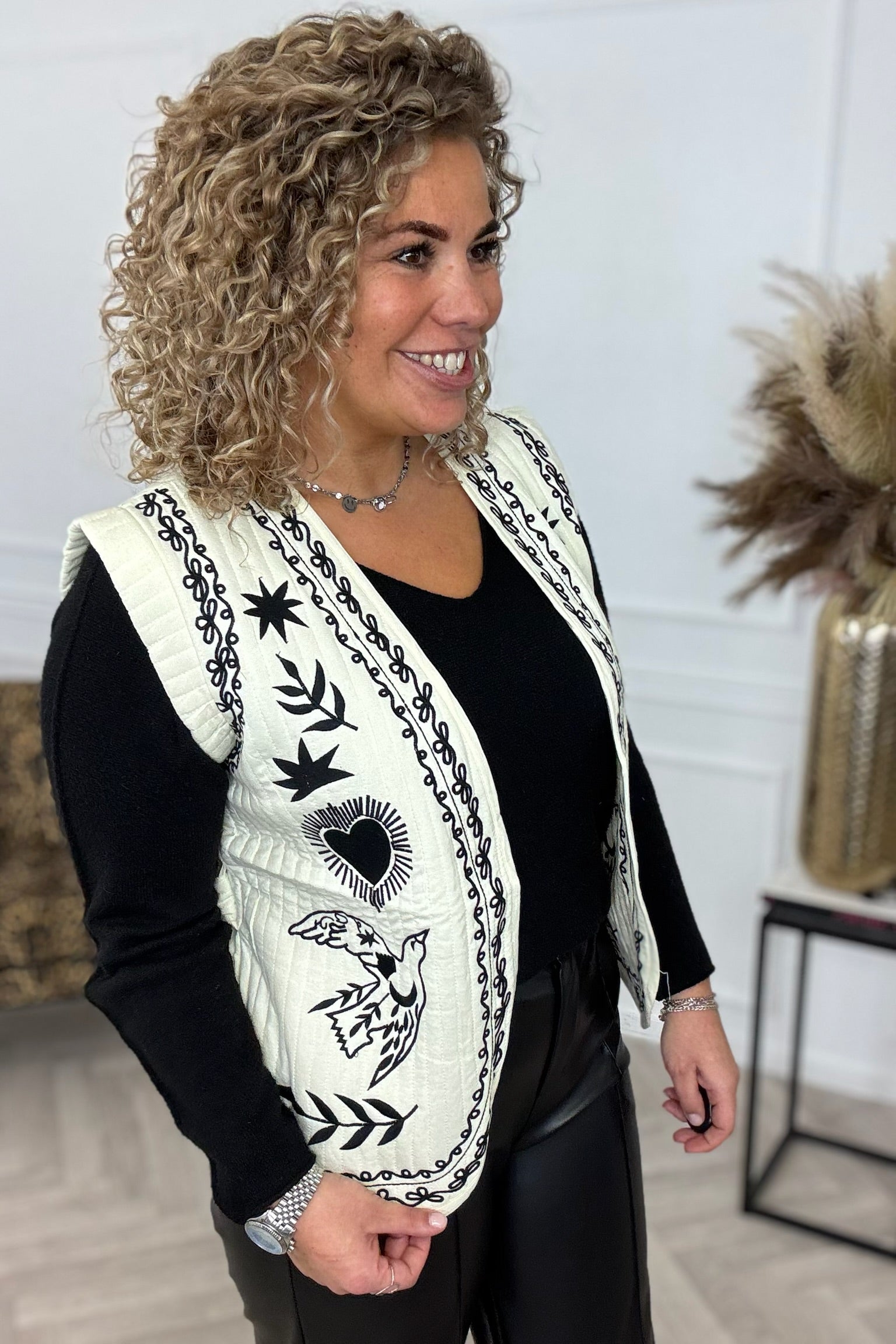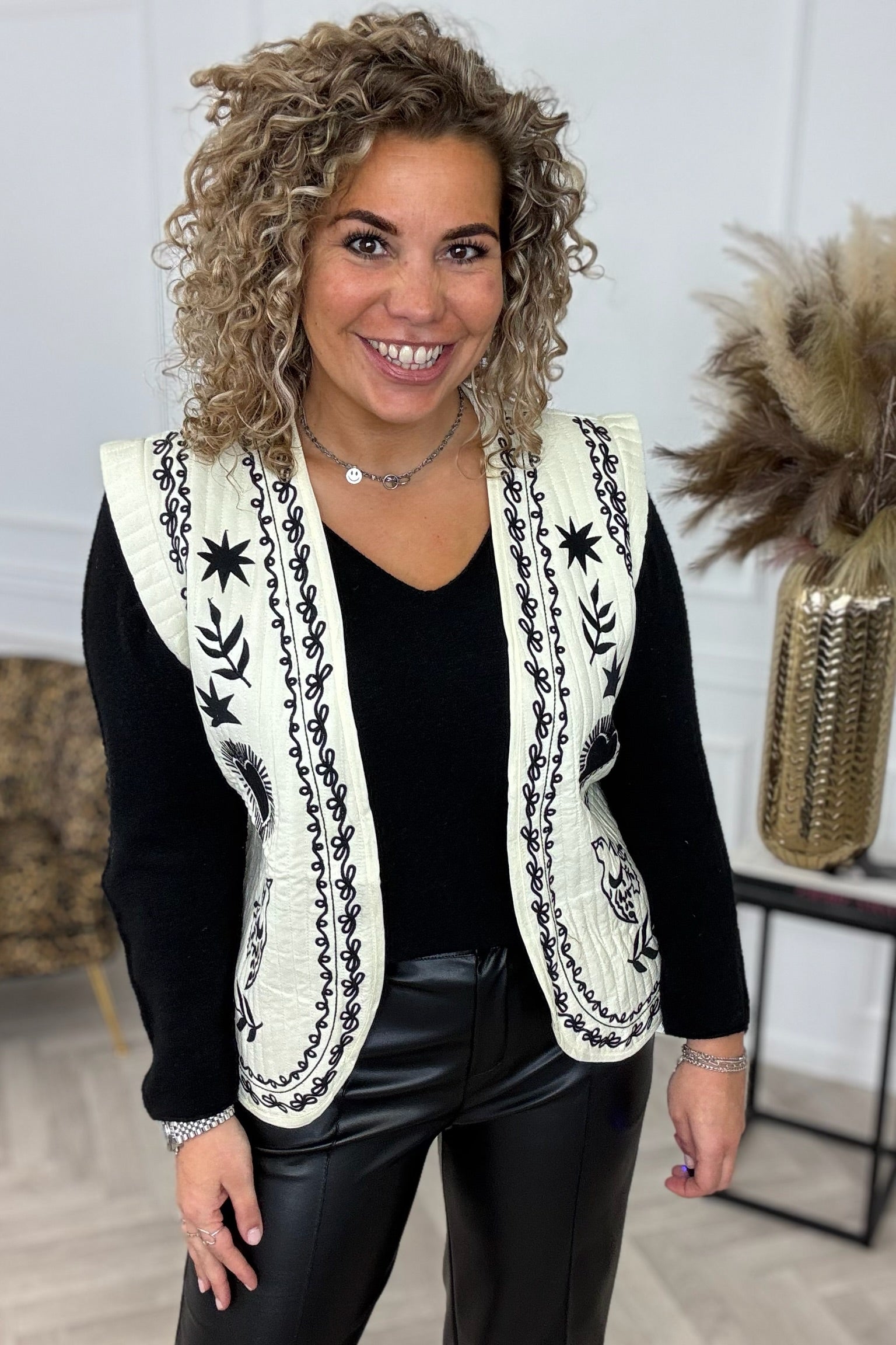 Wow! Wat een mooi gilet! Shop hem nu met een mooie print in creme!