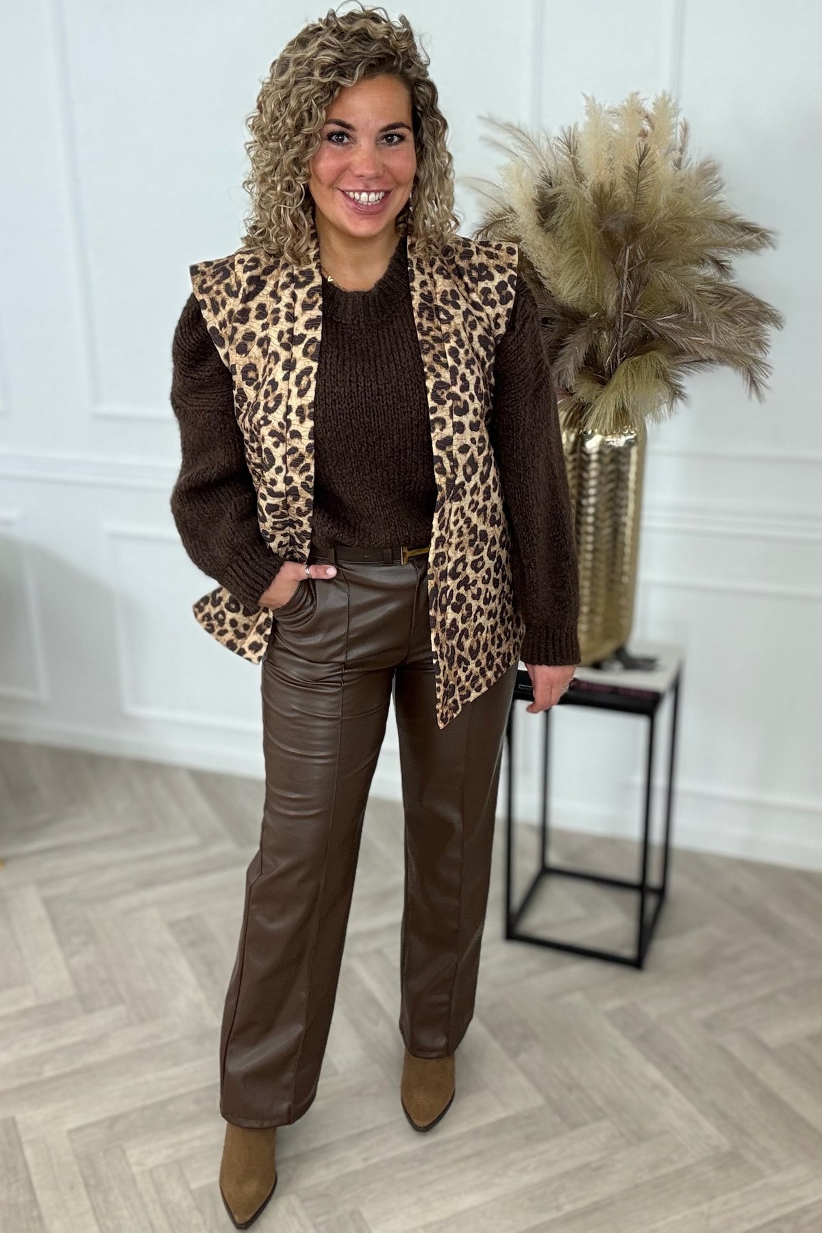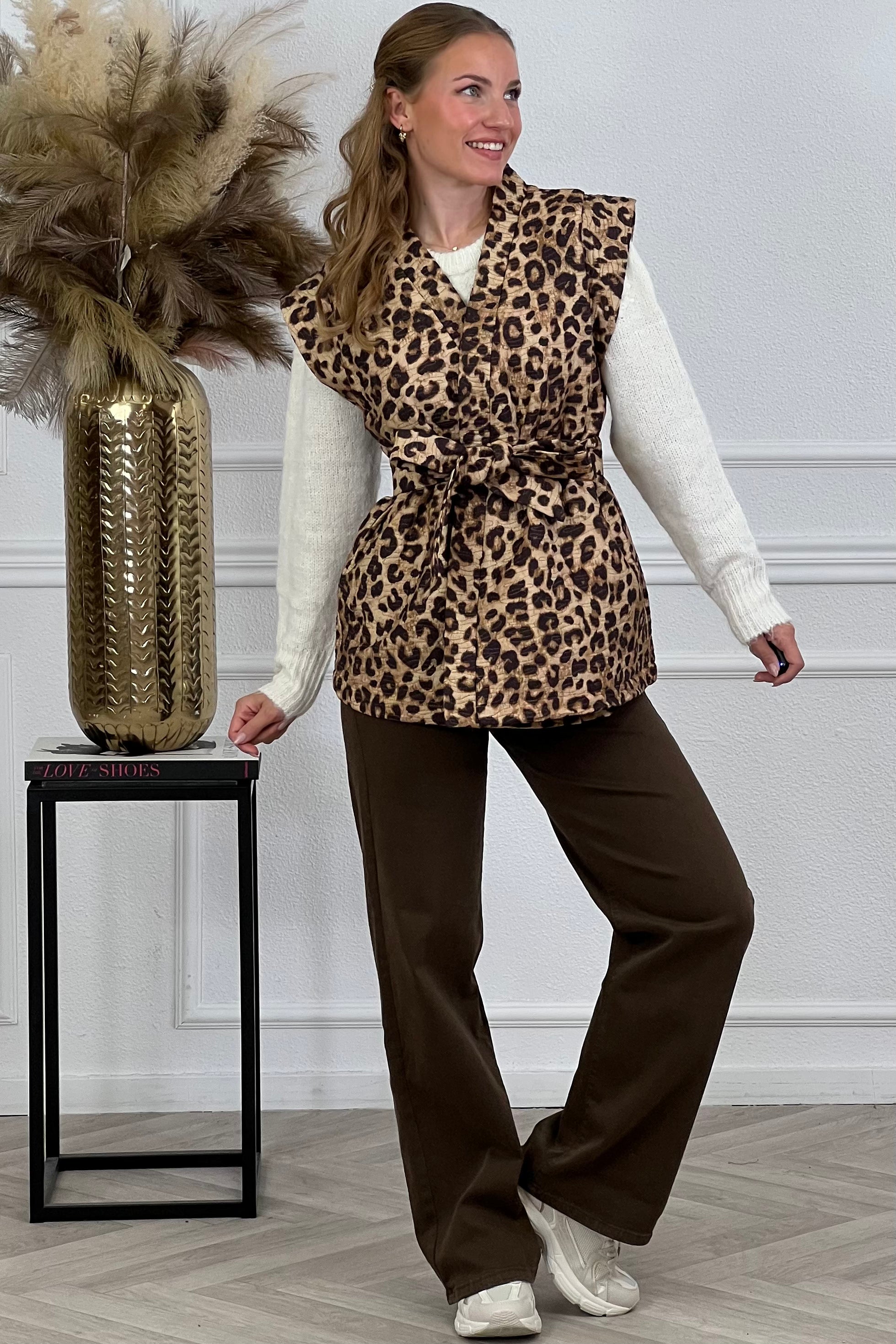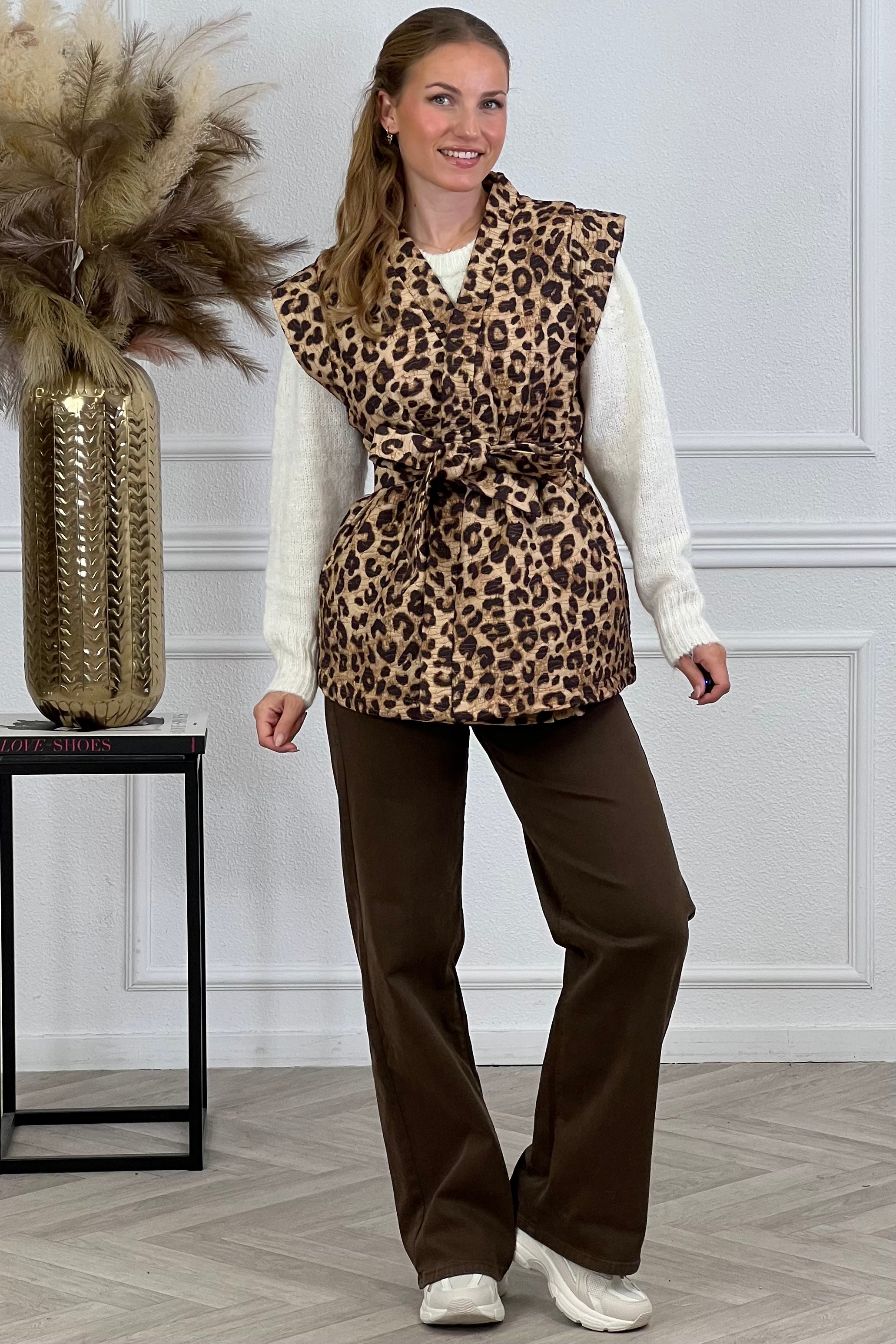 Dit gilet heeft een mooi model met een ceintuur en een geweldige leopard print! Shop hem nu in brown/black!