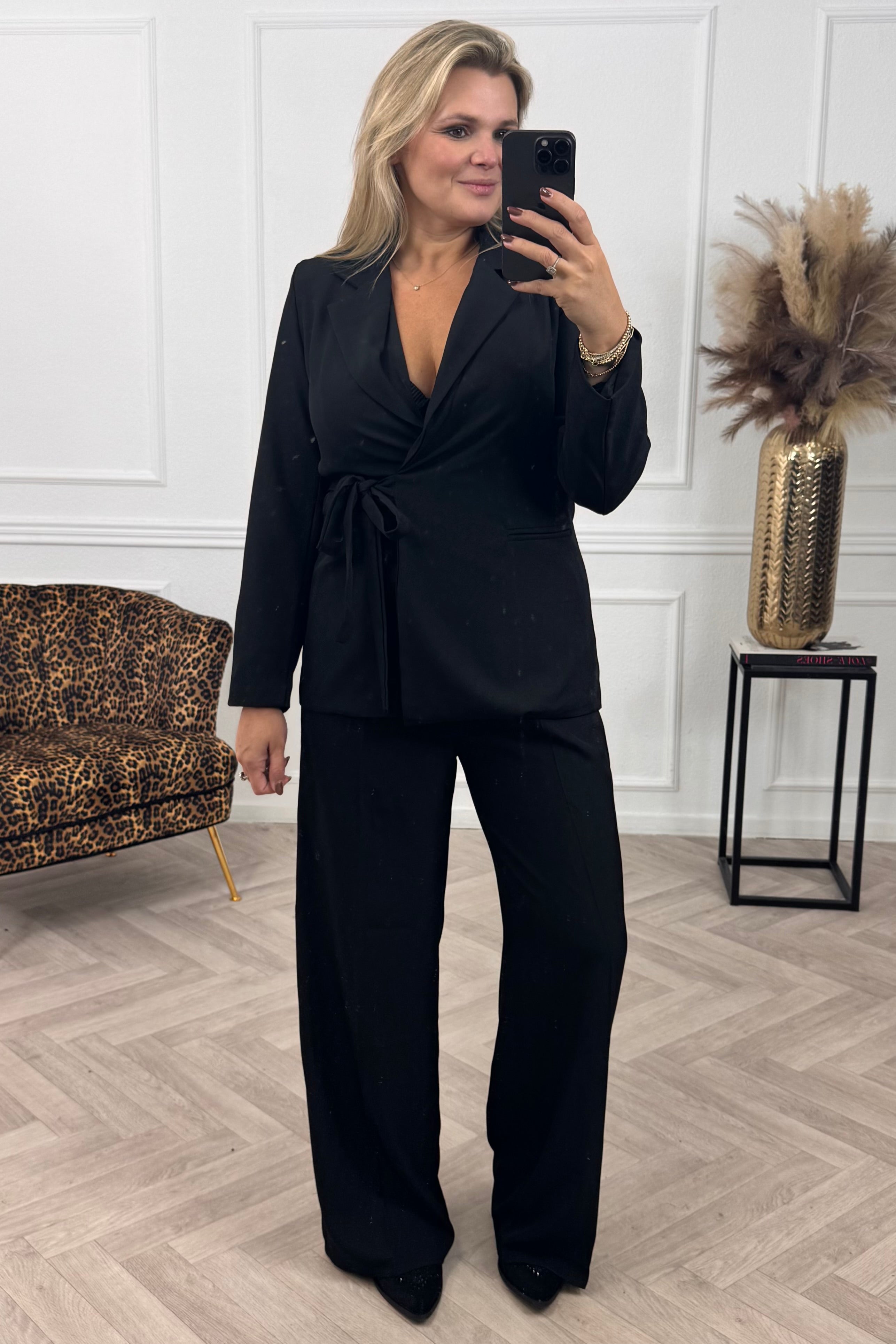 Shine in onze classy collectie! Shop deze leuke strik blazer, dicht te maken met een koord en strik op de zijkant, nu online! Je combineert deze natuurlijk met een pantalon of strik pants in dezelfde stijl! Te shoppen in verschillende maten en kleuren, shop hem in black!