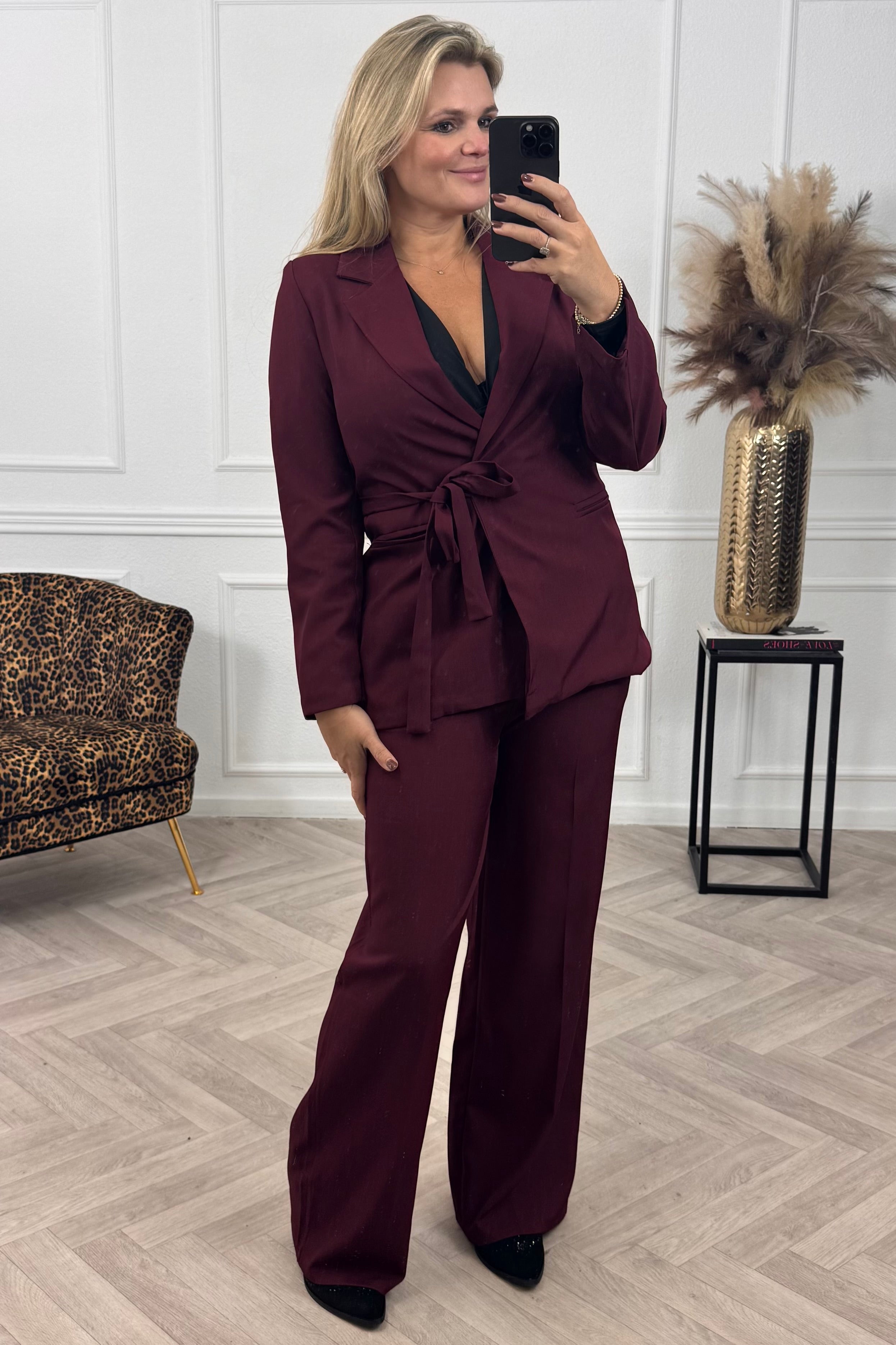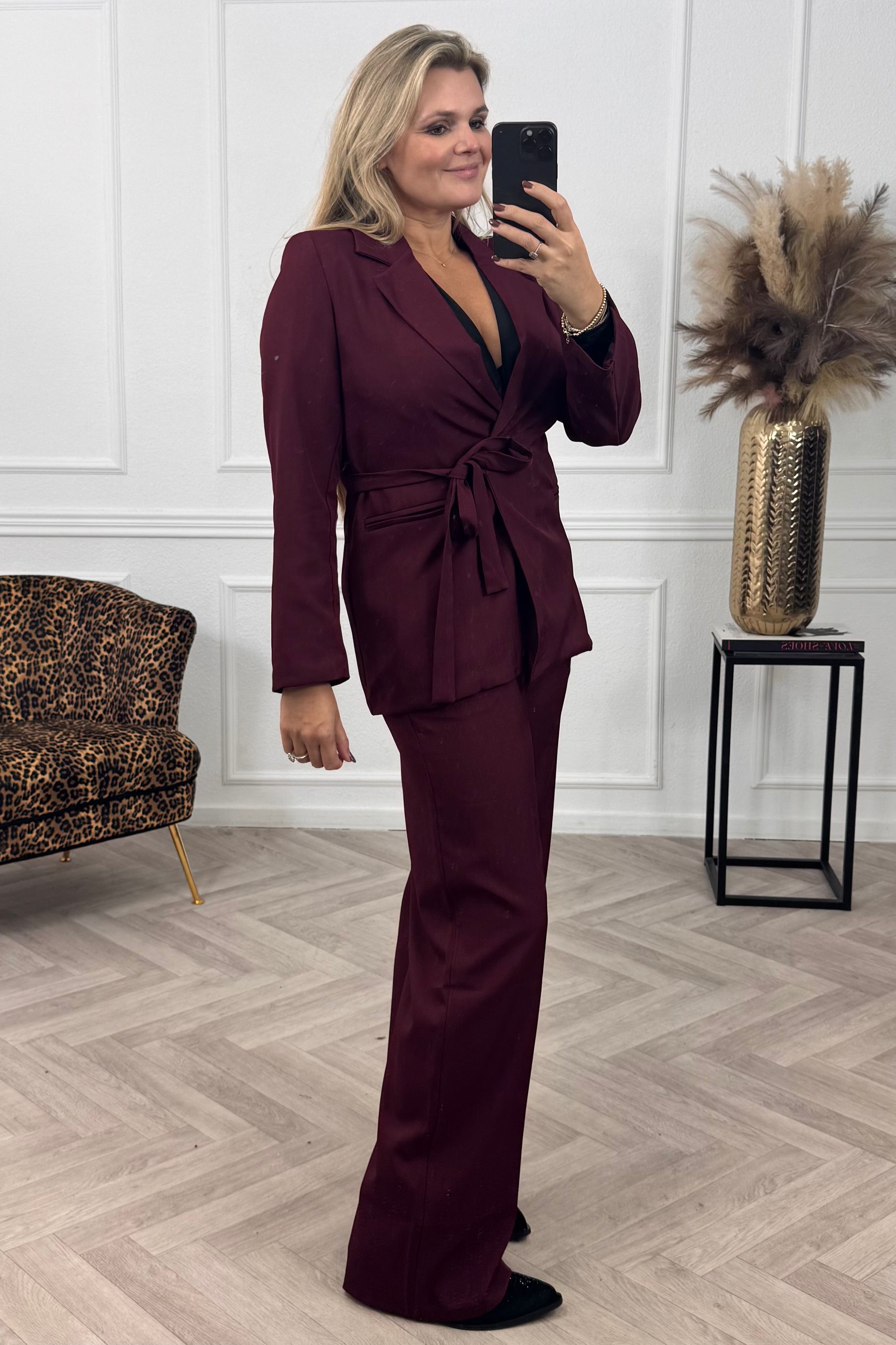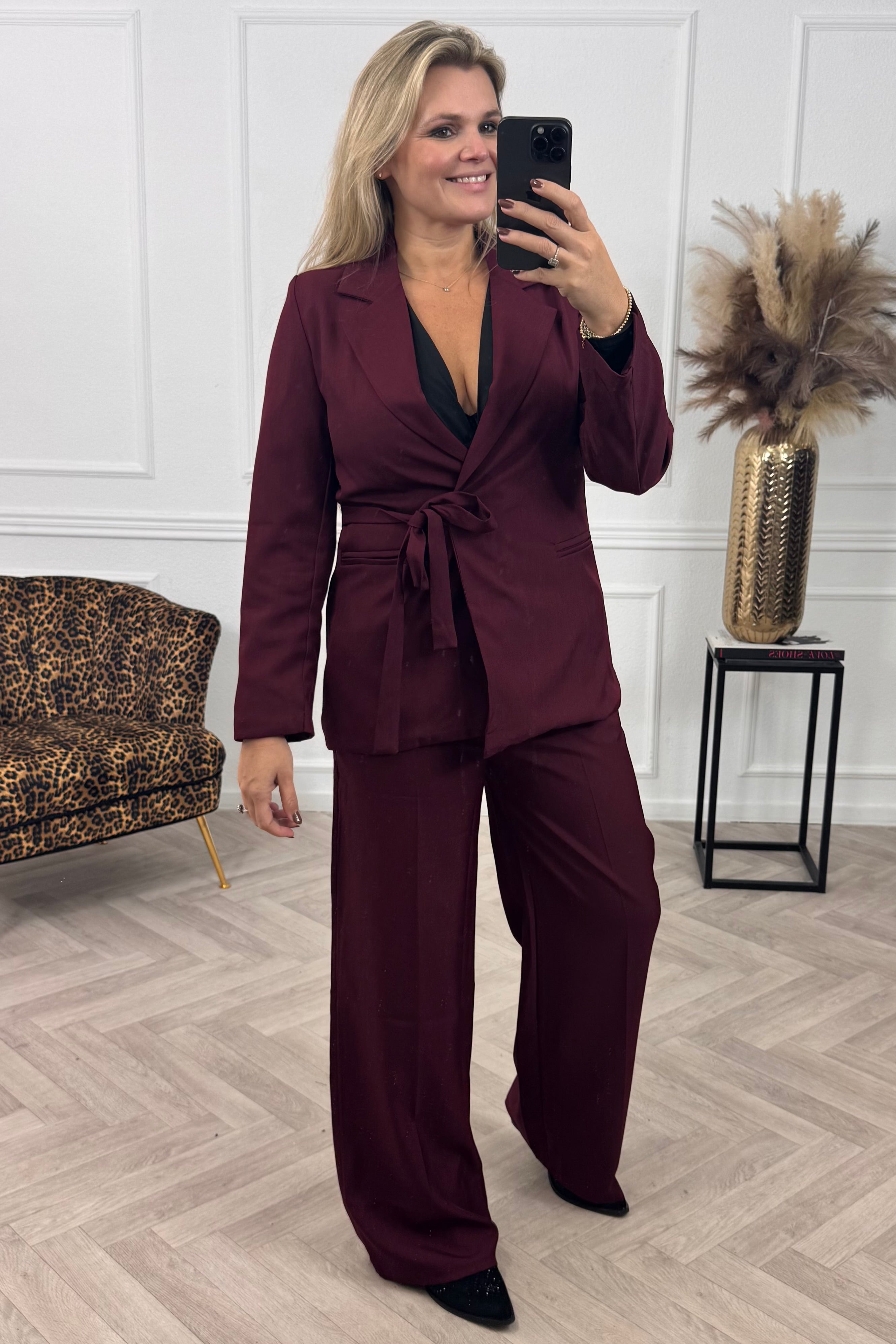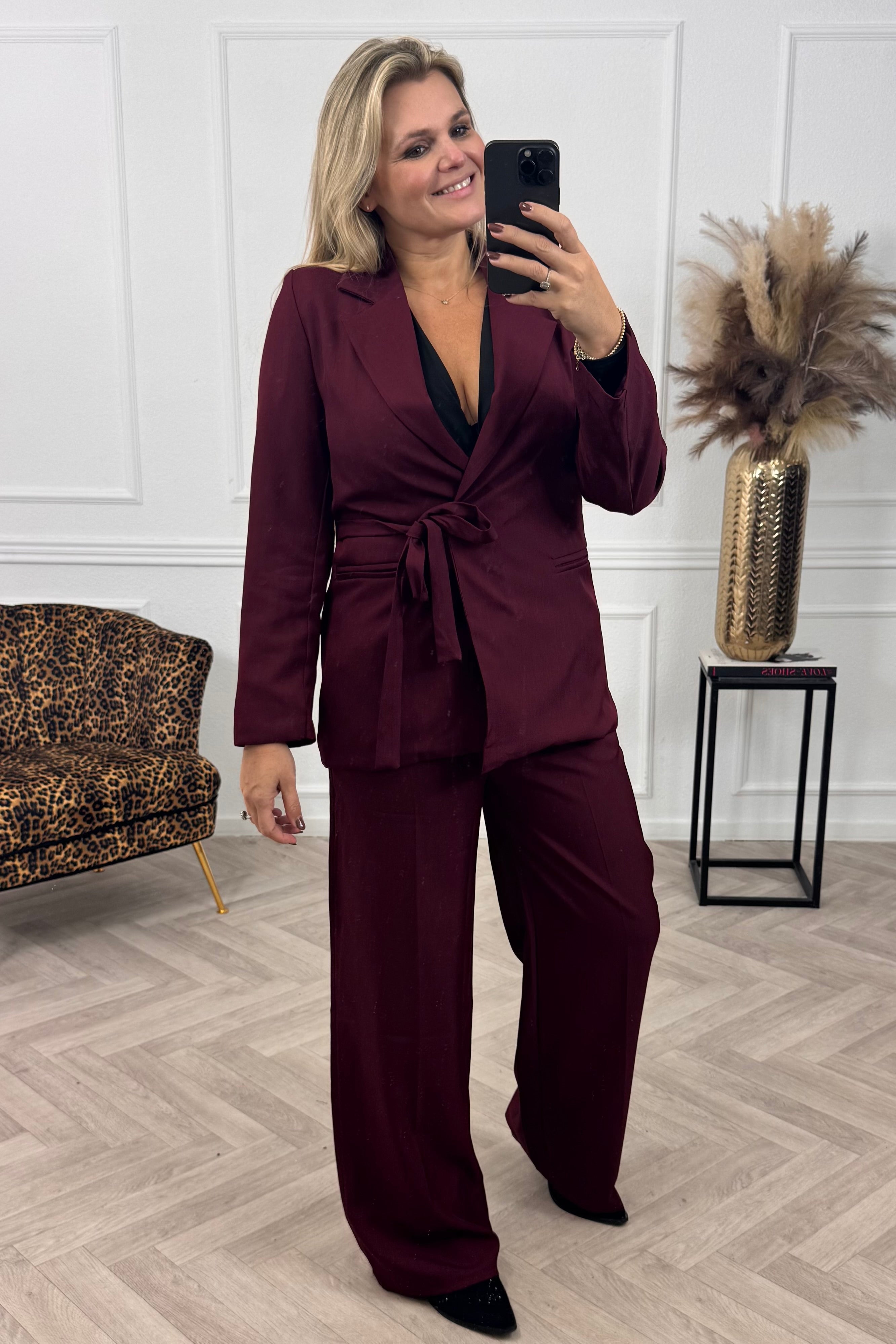Shine in onze classy collectie! Shop deze leuke strik blazer, dicht te maken met een koord en strik op de zijkant, nu online! Je combineert deze natuurlijk met een pantalon of strik pants in dezelfde stijl! Te shoppen in verschillende maten en kleuren, shop hem in bordeaux!