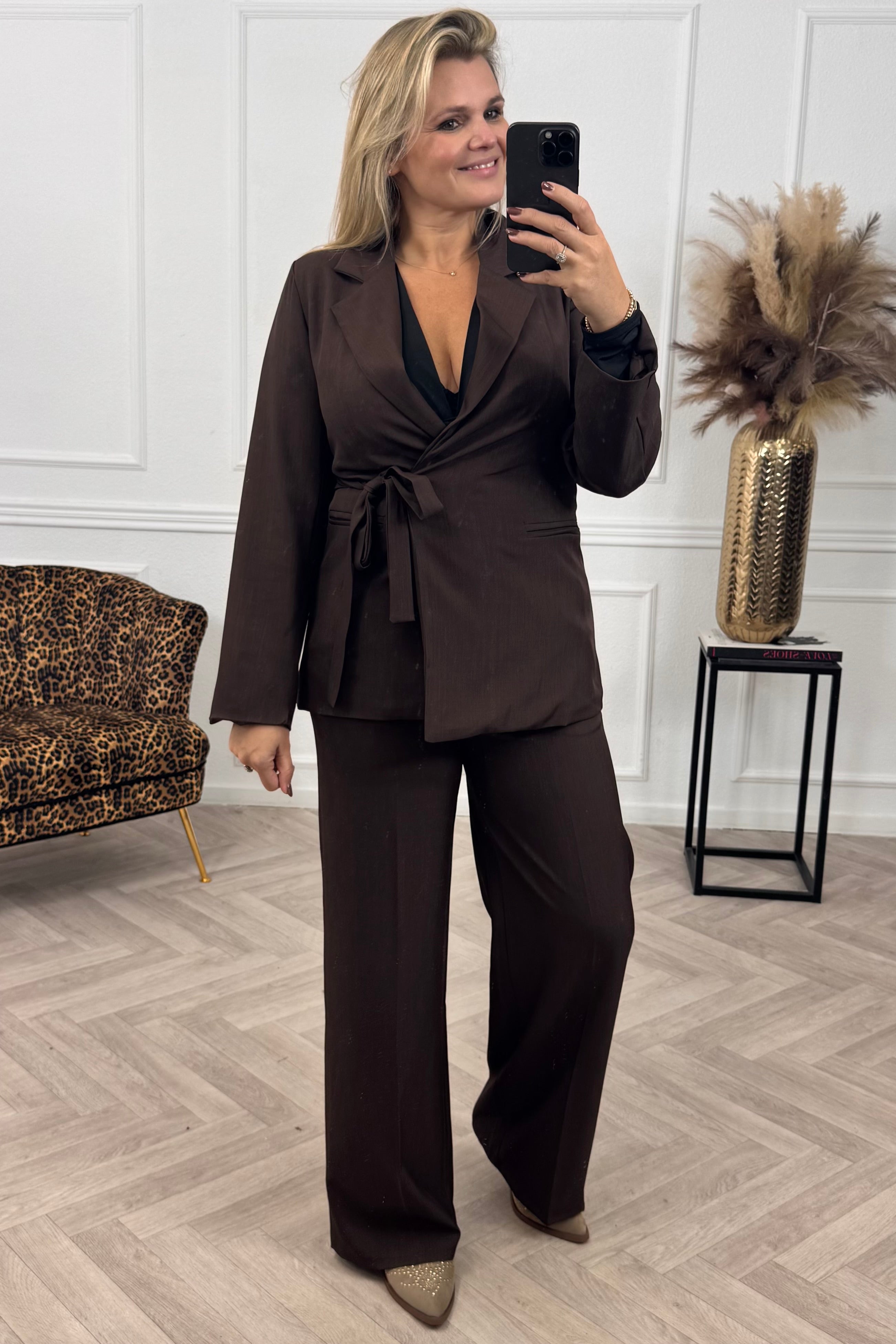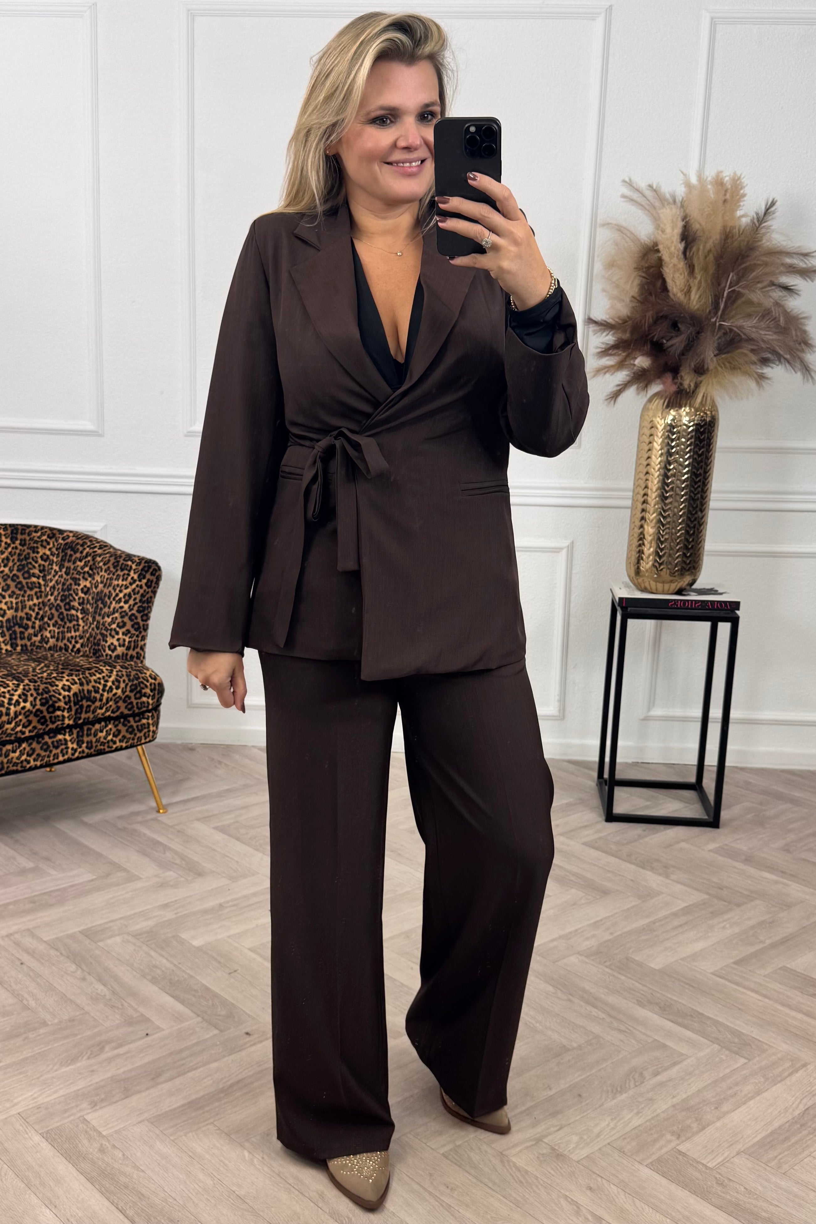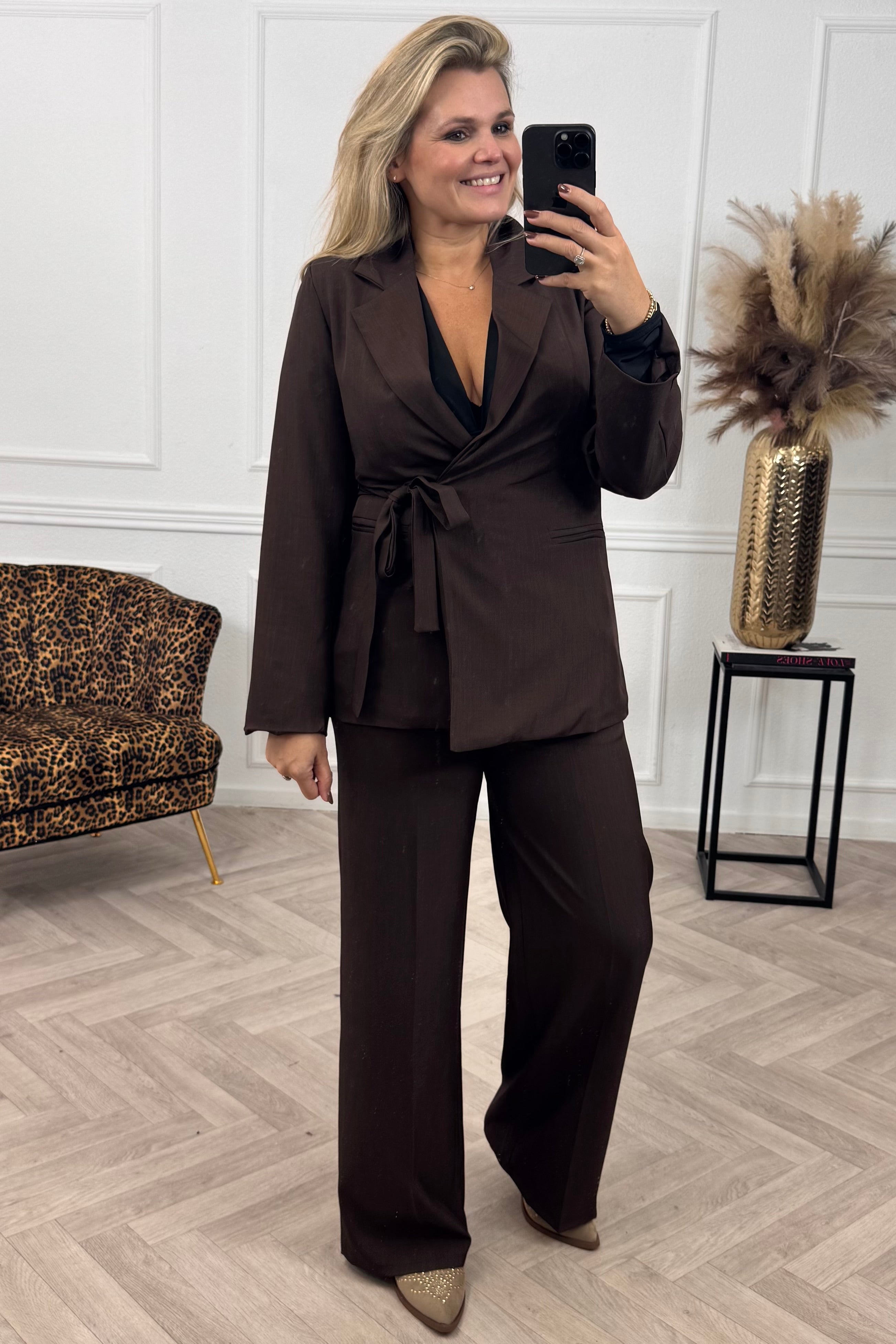 Shine in onze classy collectie! Shop deze leuke strik blazer, dicht te maken met een koord en strik op de zijkant, nu online! Je combineert deze natuurlijk met een pantalon of strik pants in dezelfde stijl! Te shoppen in verschillende maten en kleuren, shop hem in brown!