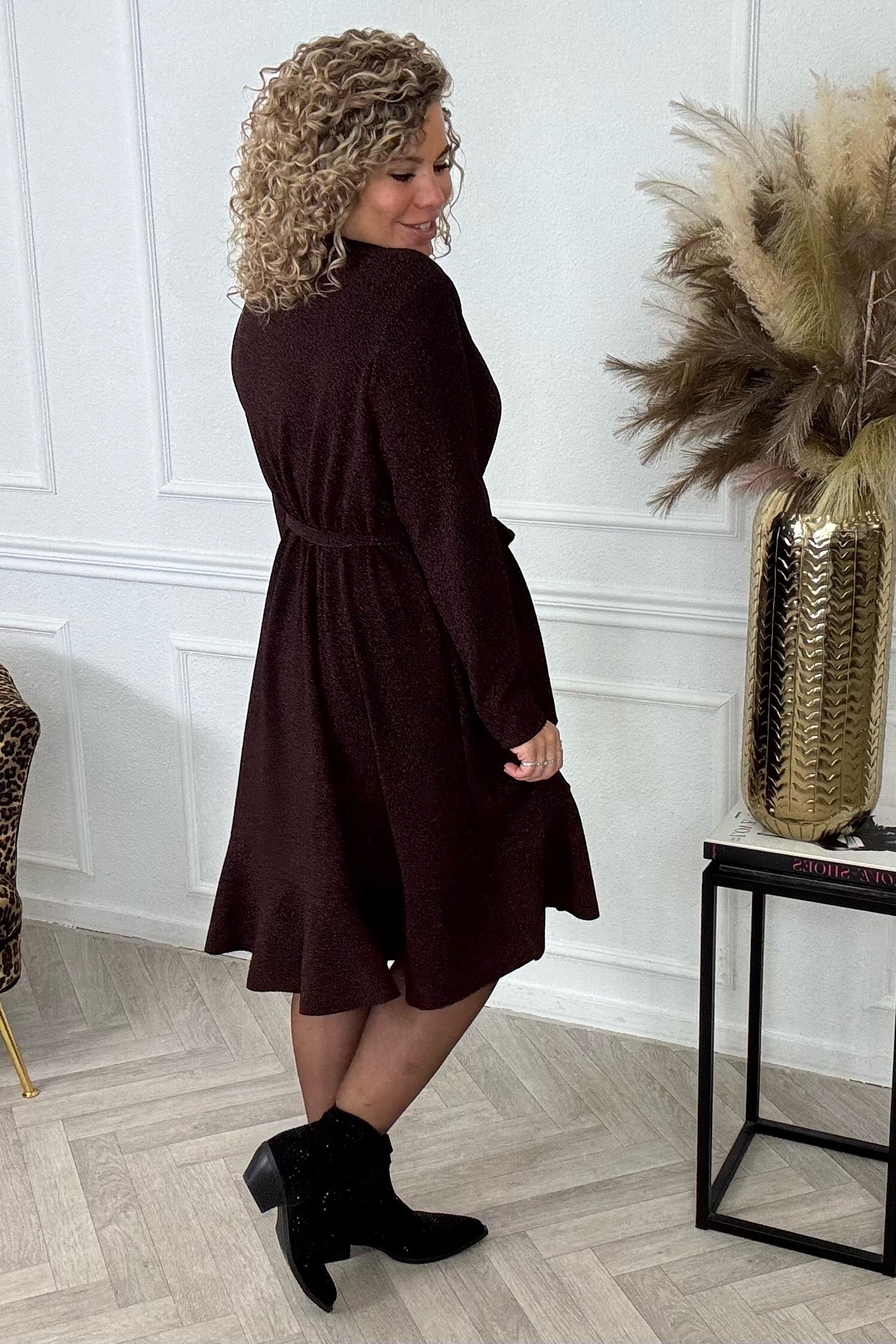 Een fantastische glitter jurk, met ook nog eens lekker veel stretch! Shop jouw ideale longsleeve kerst jurkje daarom nu snel in dark brown!