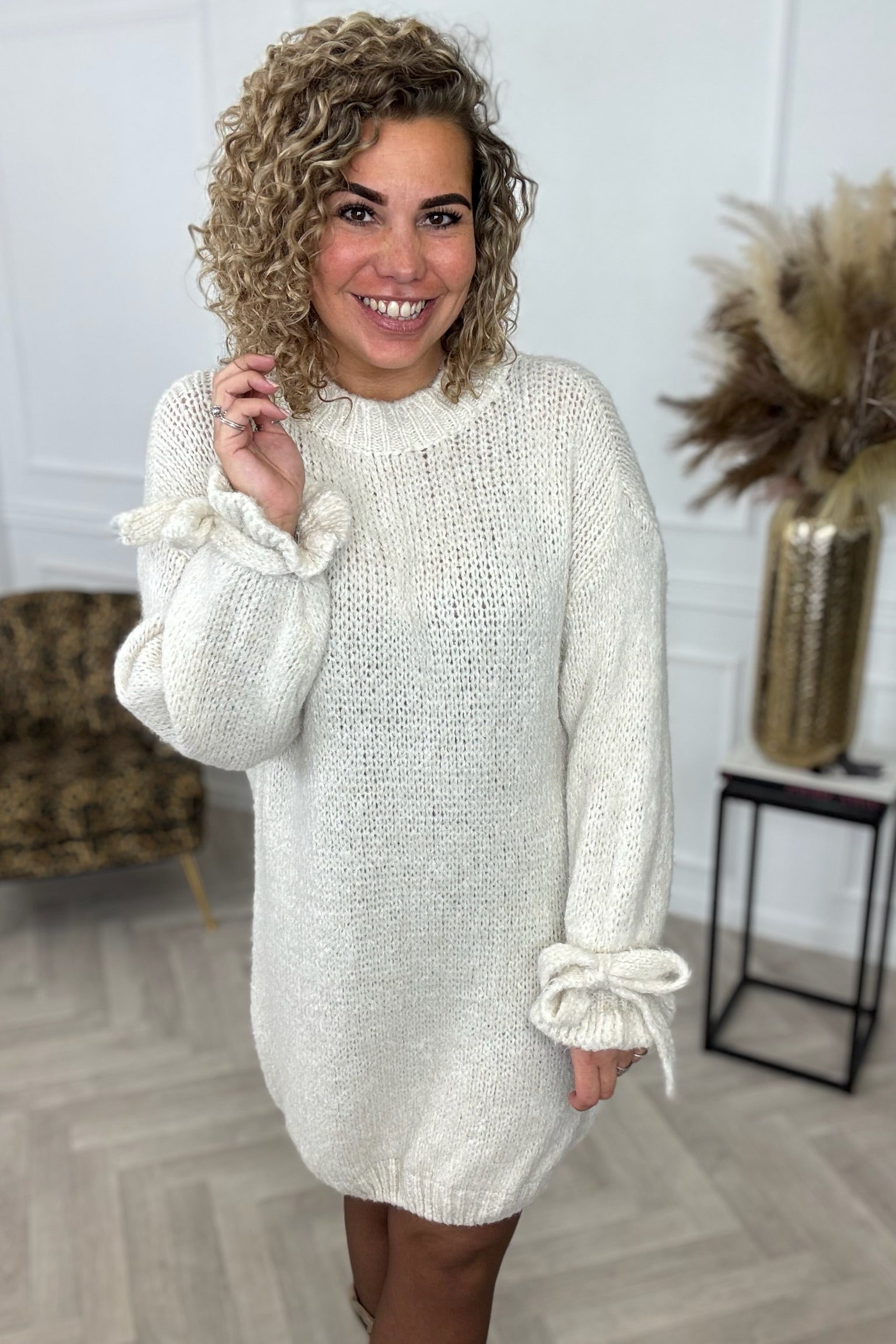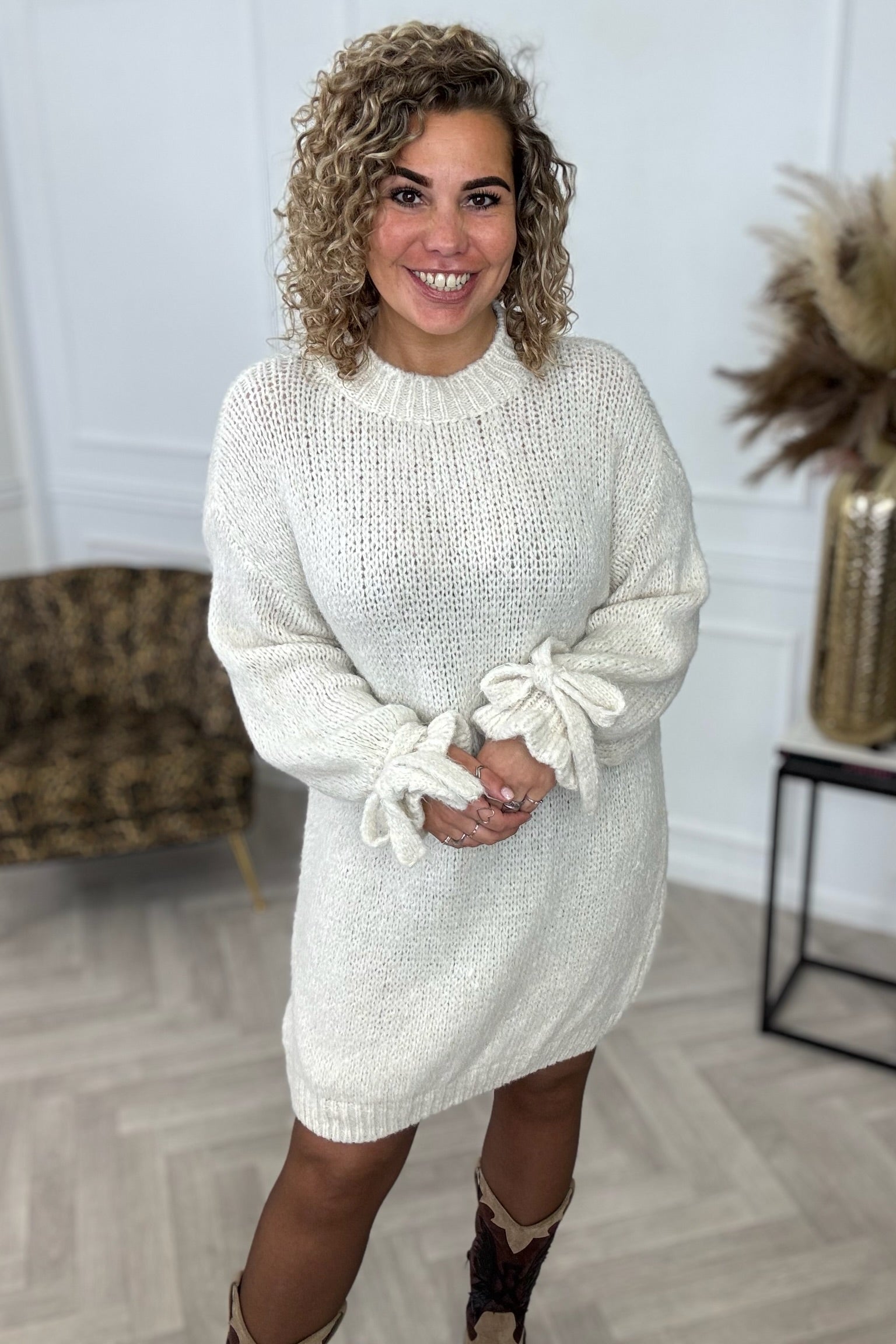 Hoe leuk zijn deze jurken? Heerlijk knitted en met een leuk strik detail op de mauwen! Shop nu snel in beige!