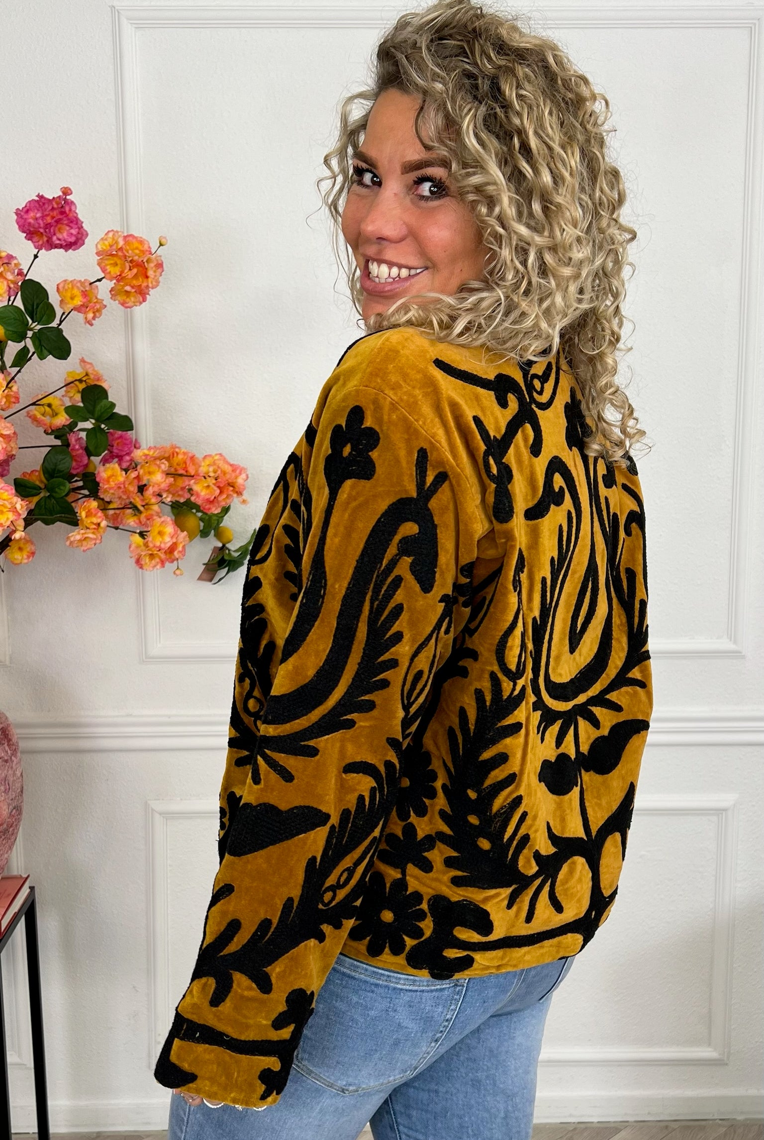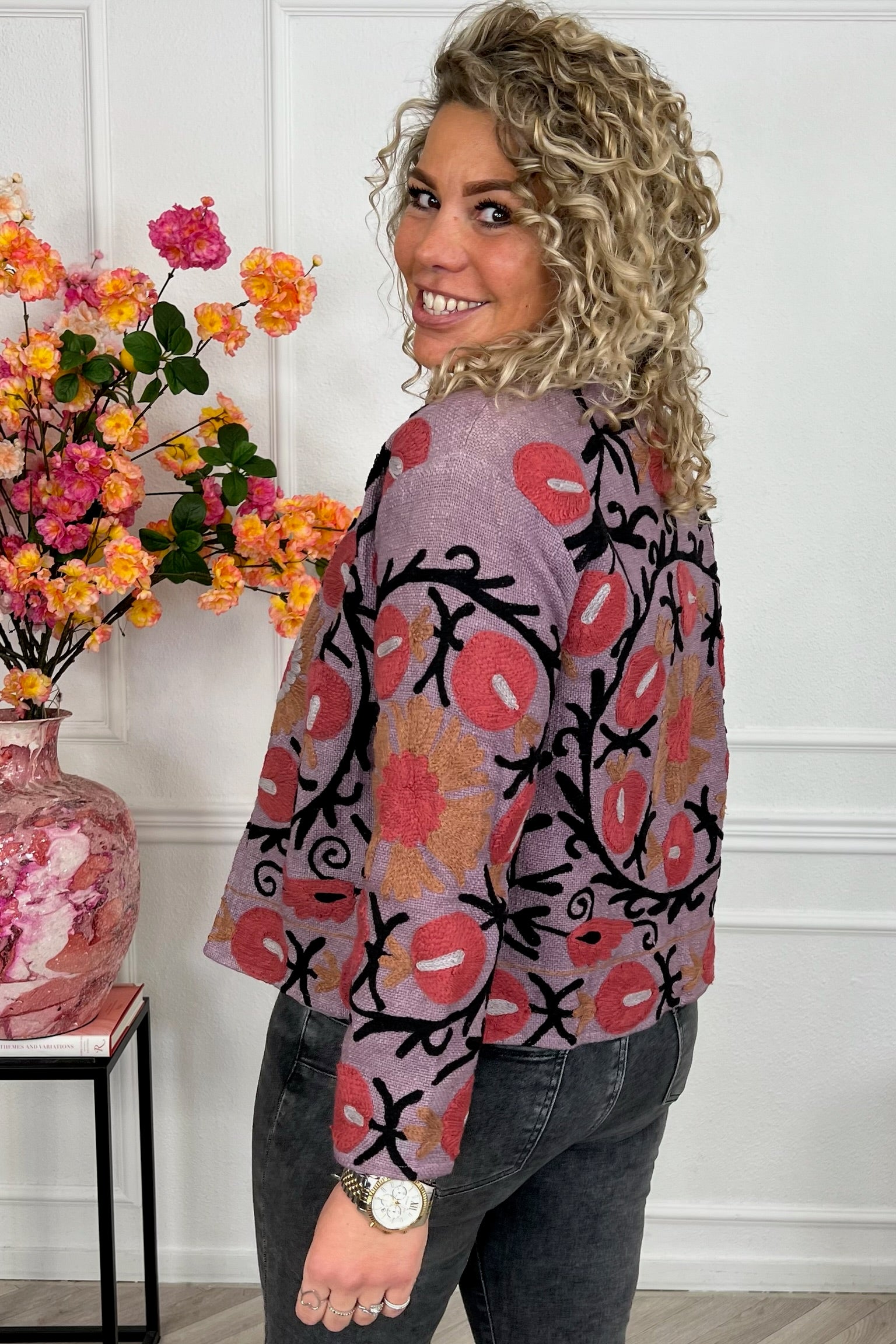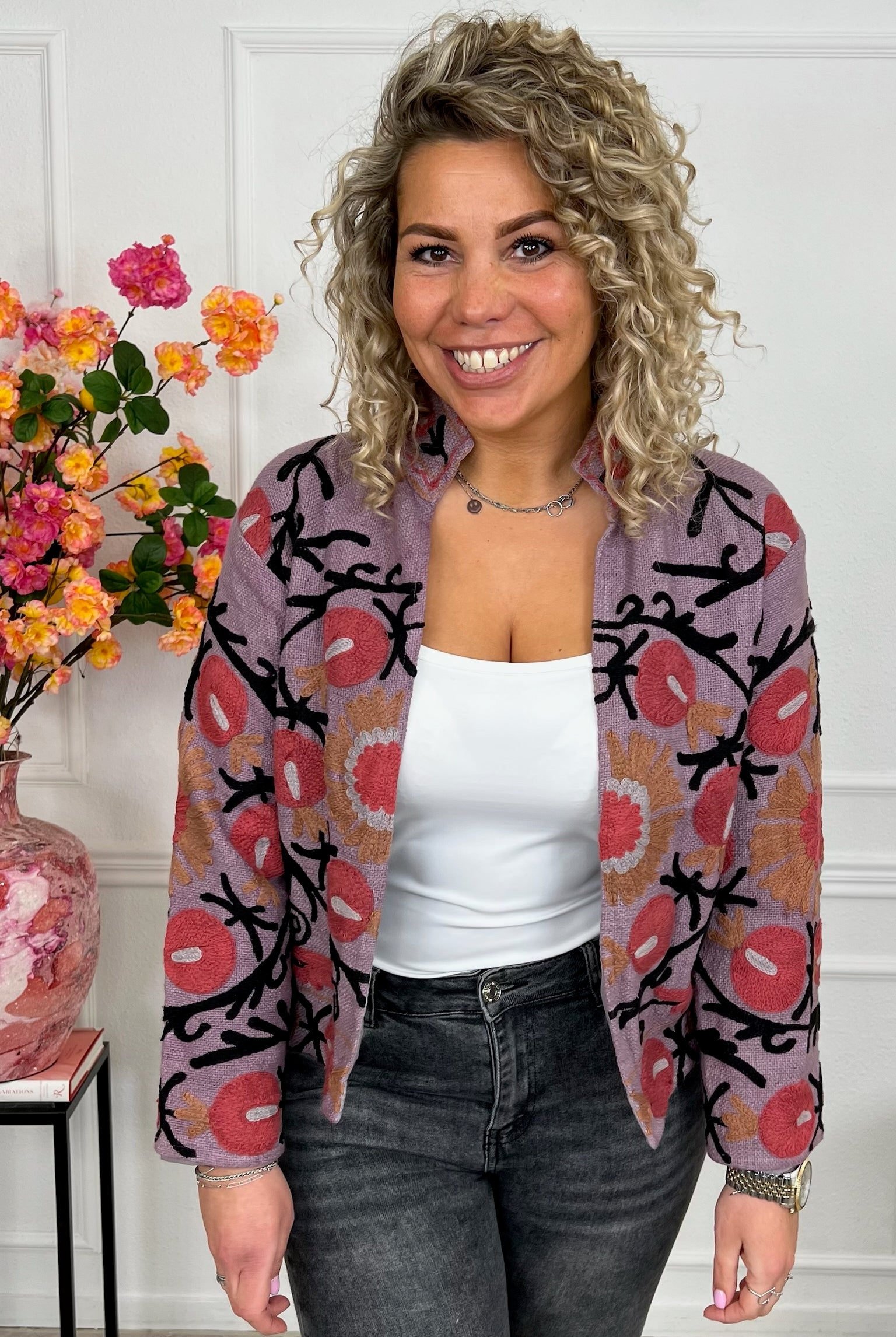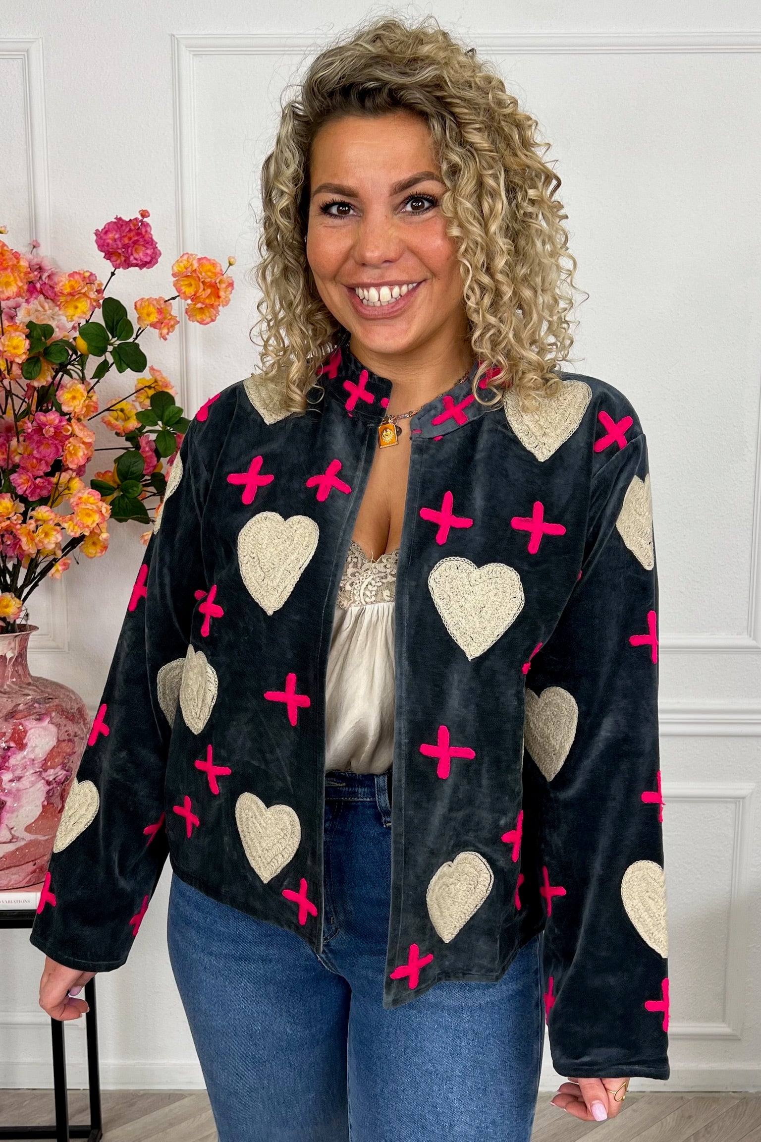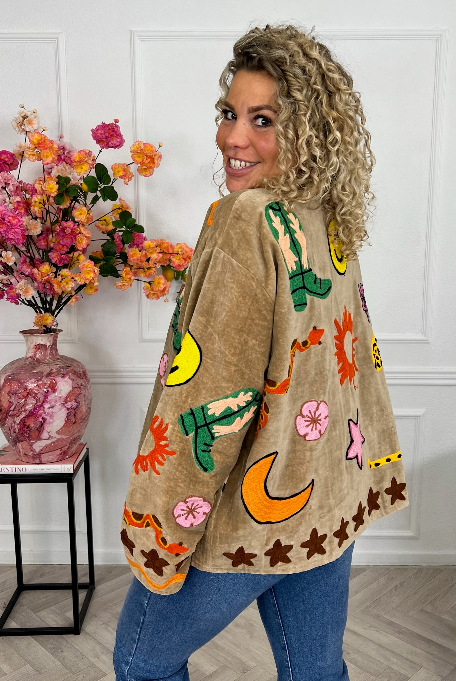De collectie bestaat uit verschillende stijlen en motieven: van kleurrijke bloemenprints tot elegante patronen met een unieke touch. Dankzij het gebruik van katoen en velvetstof voelen de jasjes niet alleen heerlijk aan, maar dragen ze ook comfortabel in elk seizoen. Combineer ze casual op een jeans, of draag ze over een jurk voor een stijlvolle, opvallende look.