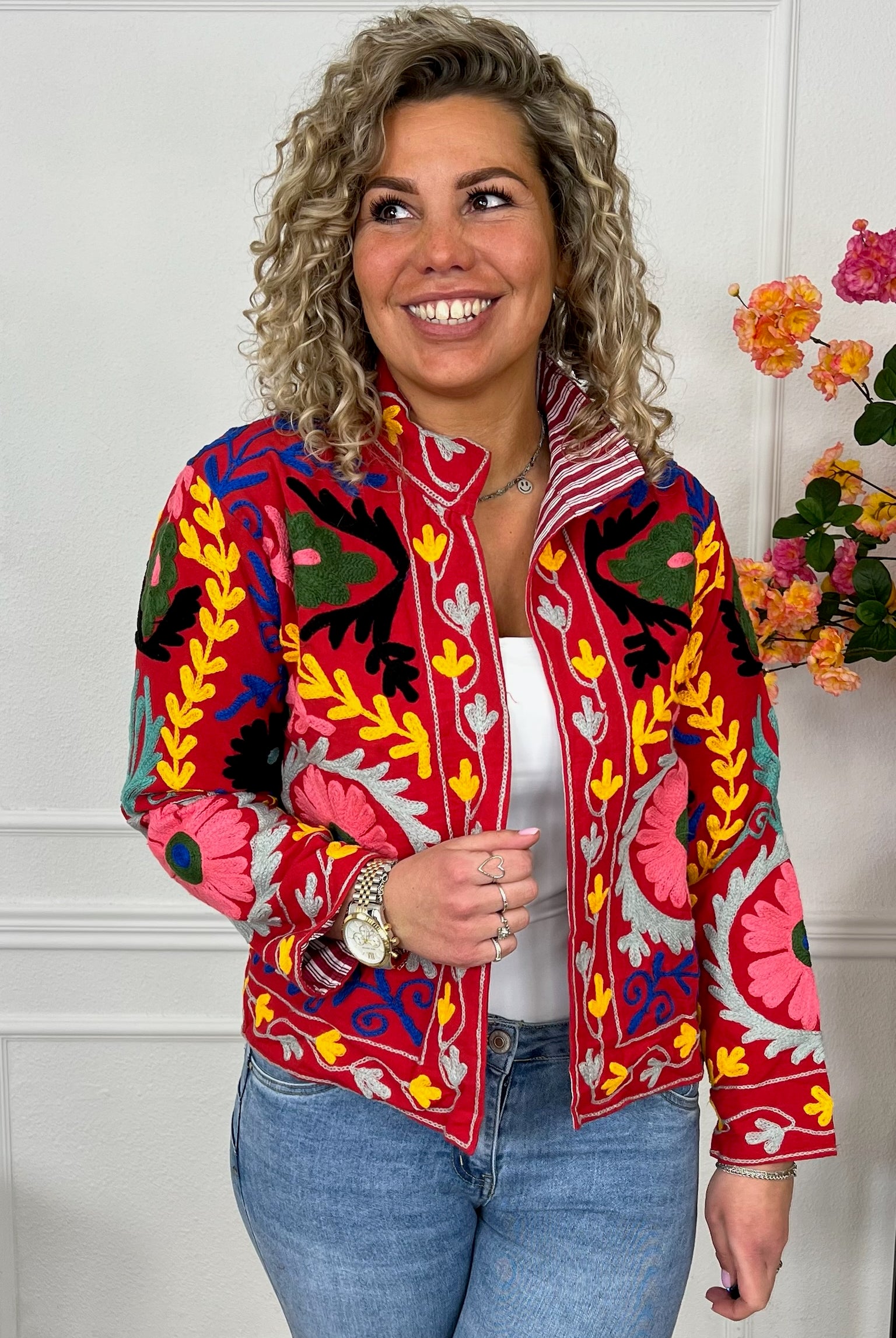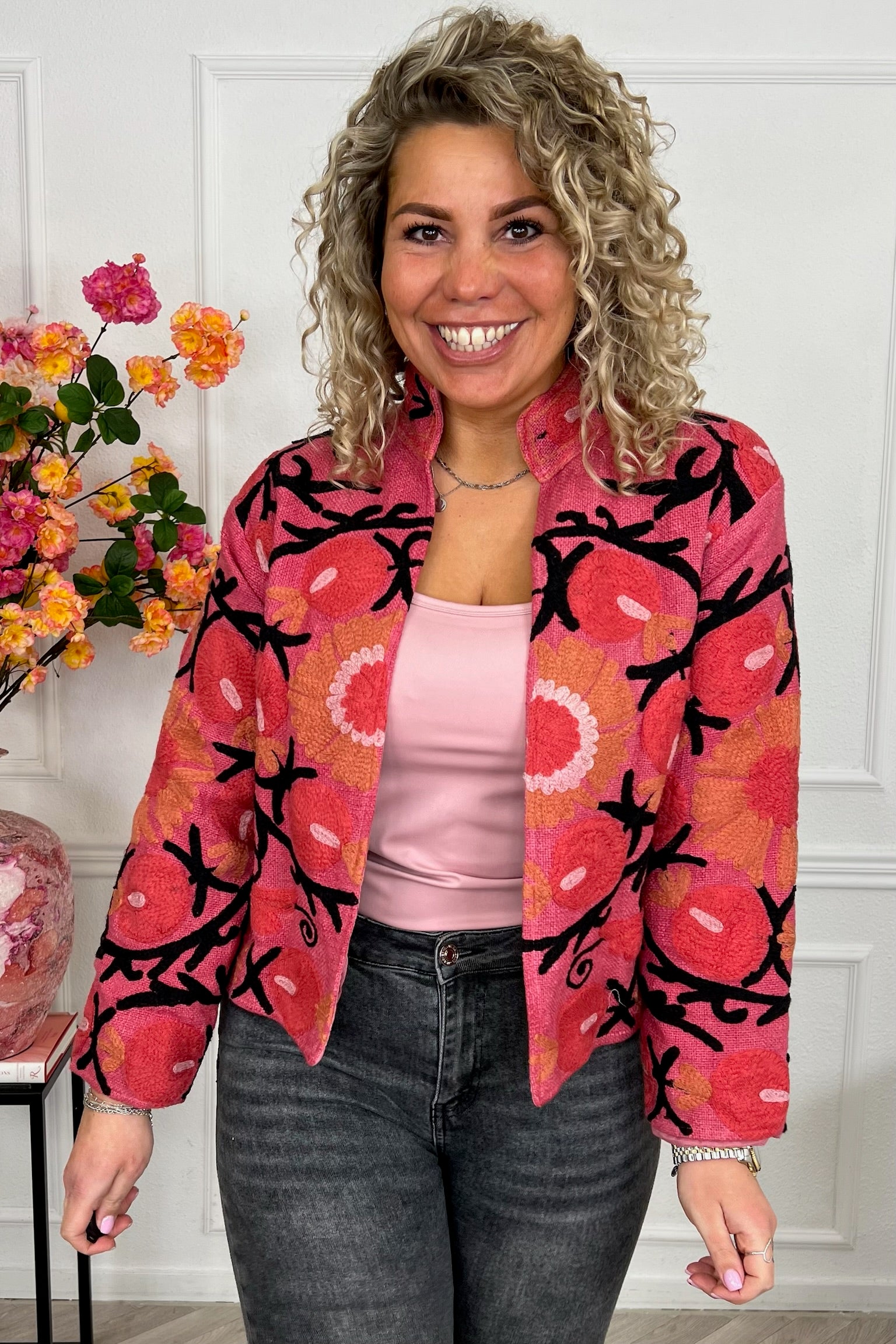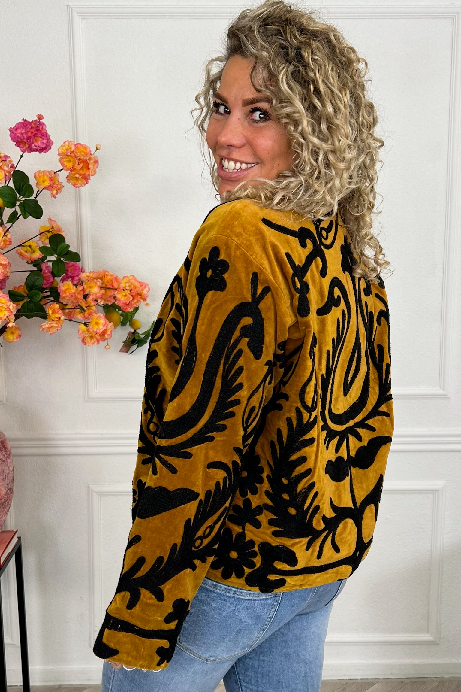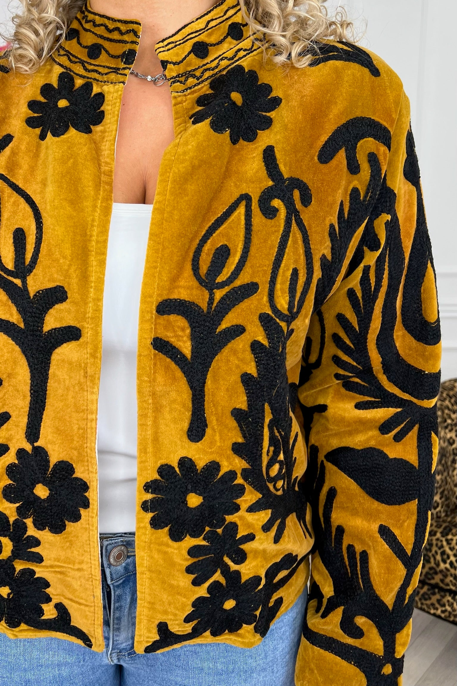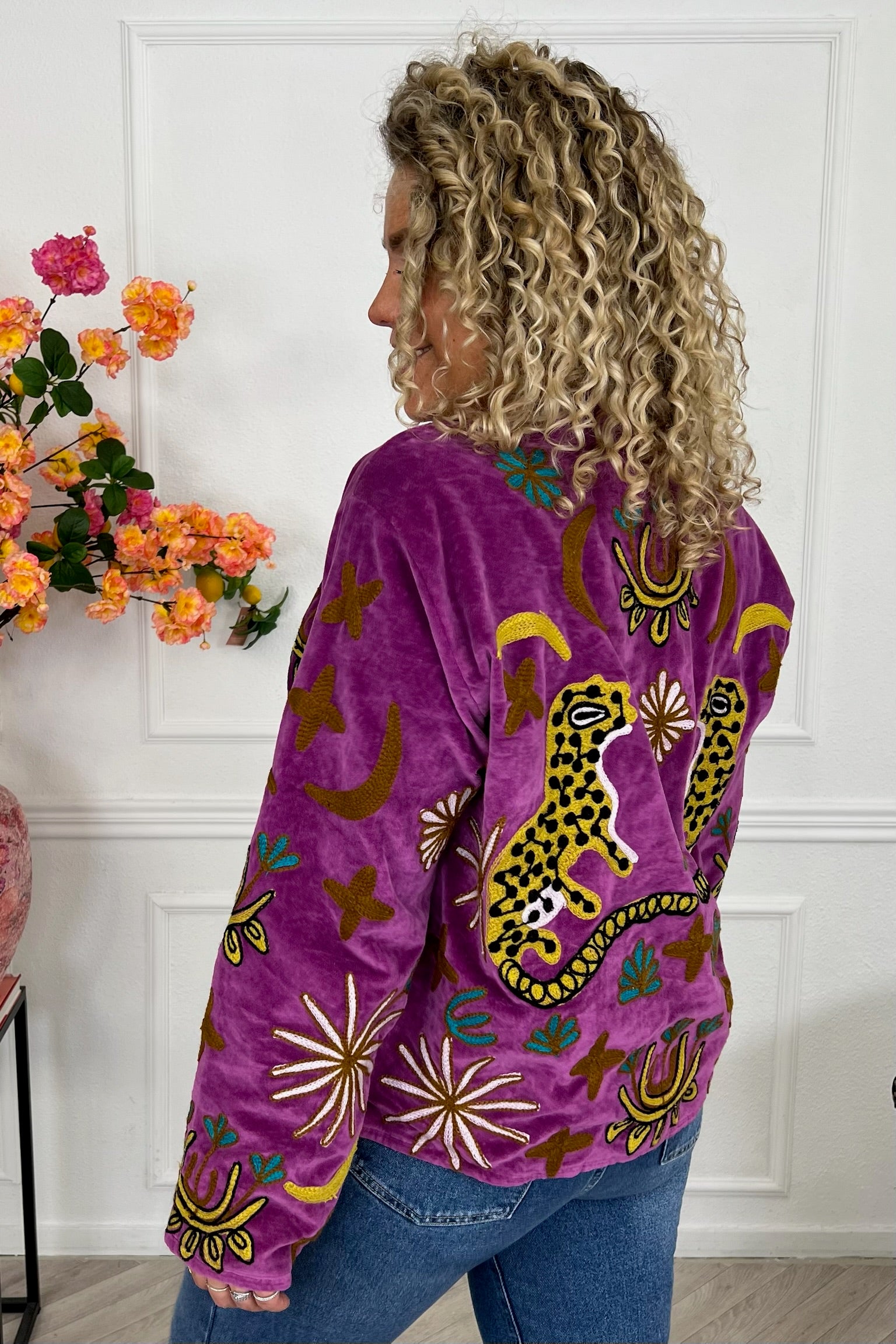 De collectie bestaat uit verschillende stijlen en motieven: van kleurrijke bloemenprints tot elegante patronen met een unieke touch. Dankzij het gebruik van katoen en velvetstof voelen de jasjes niet alleen heerlijk aan, maar dragen ze ook comfortabel in elk seizoen. Combineer ze casual op een jeans, of draag ze over een jurk voor een stijlvolle, opvallende look.