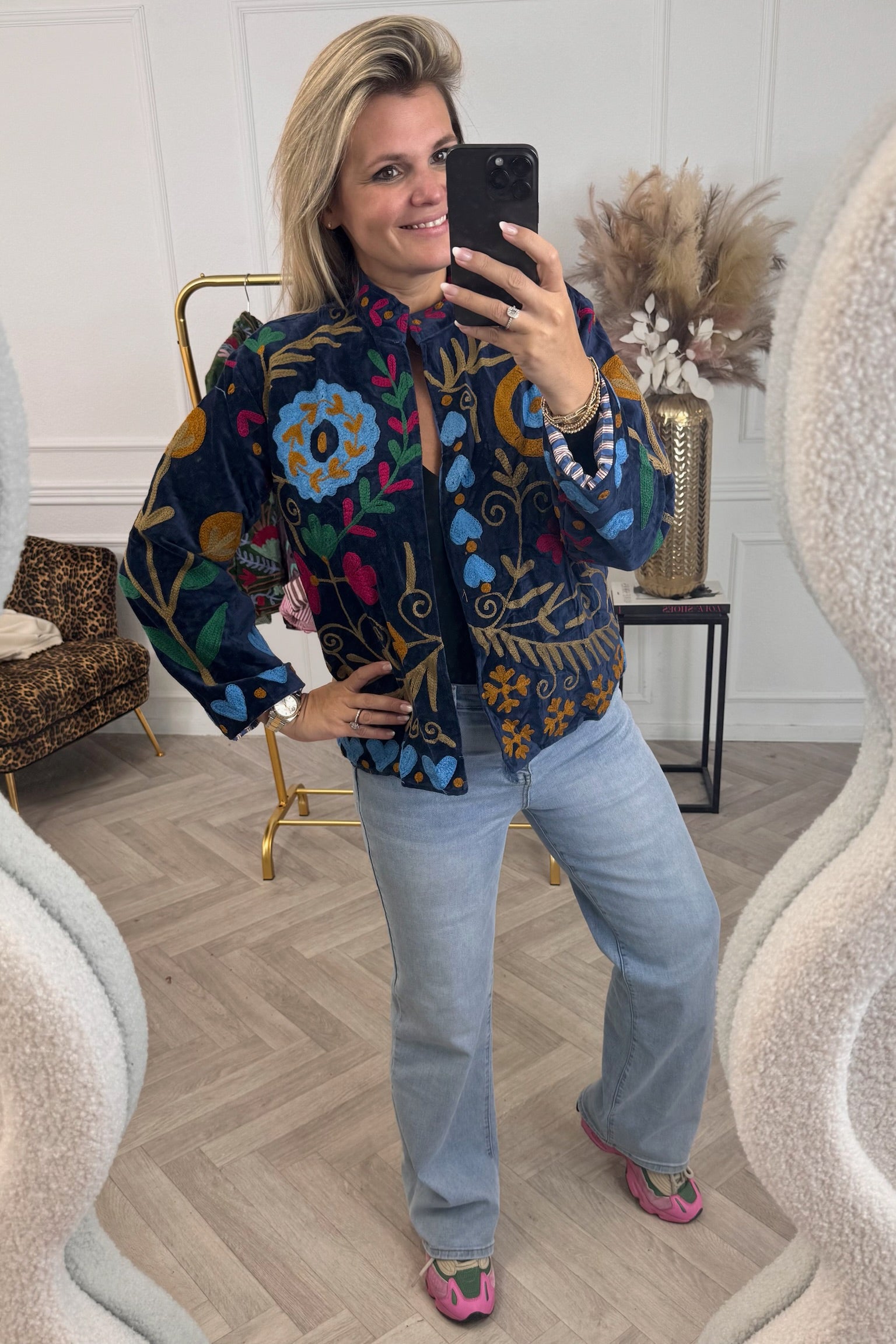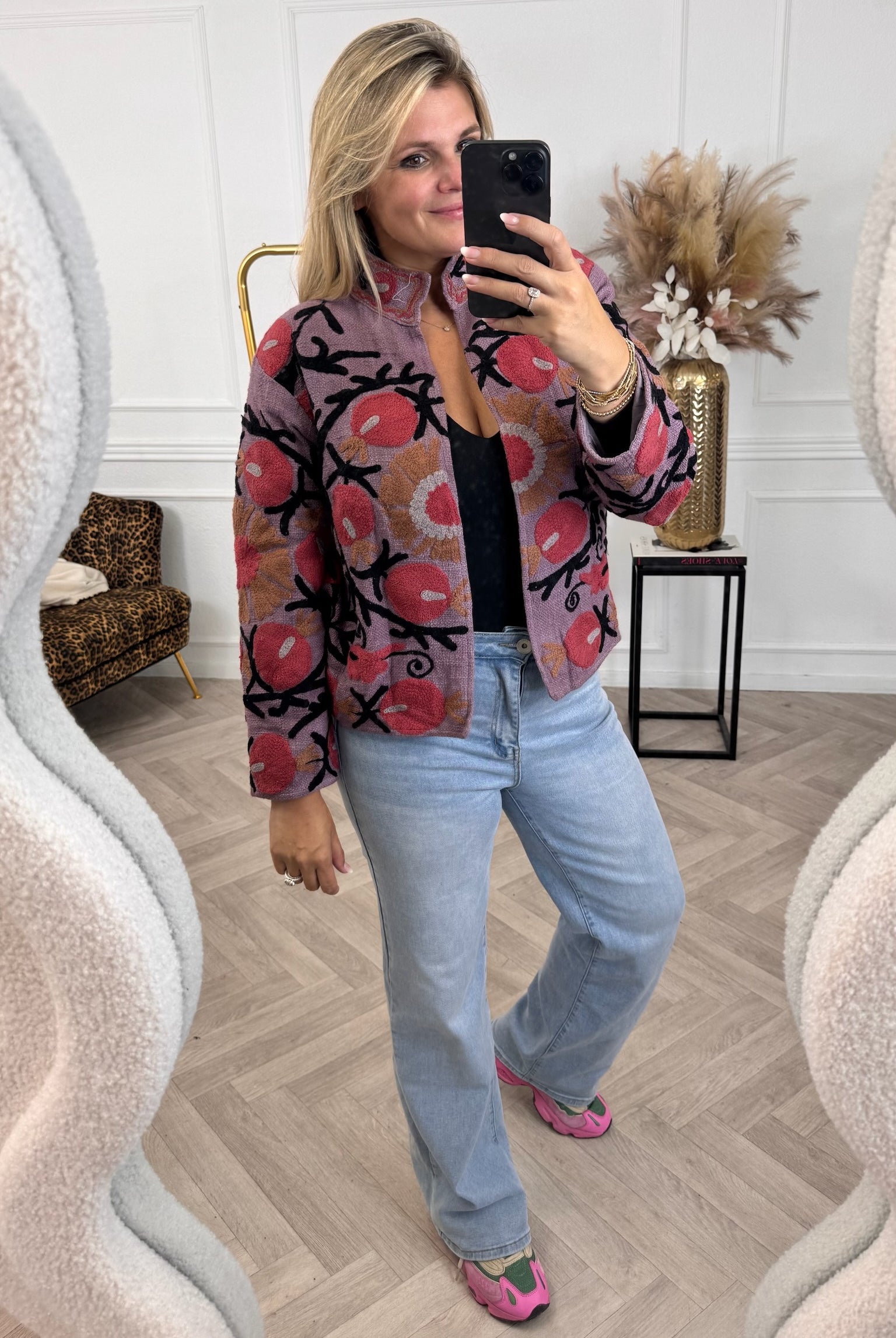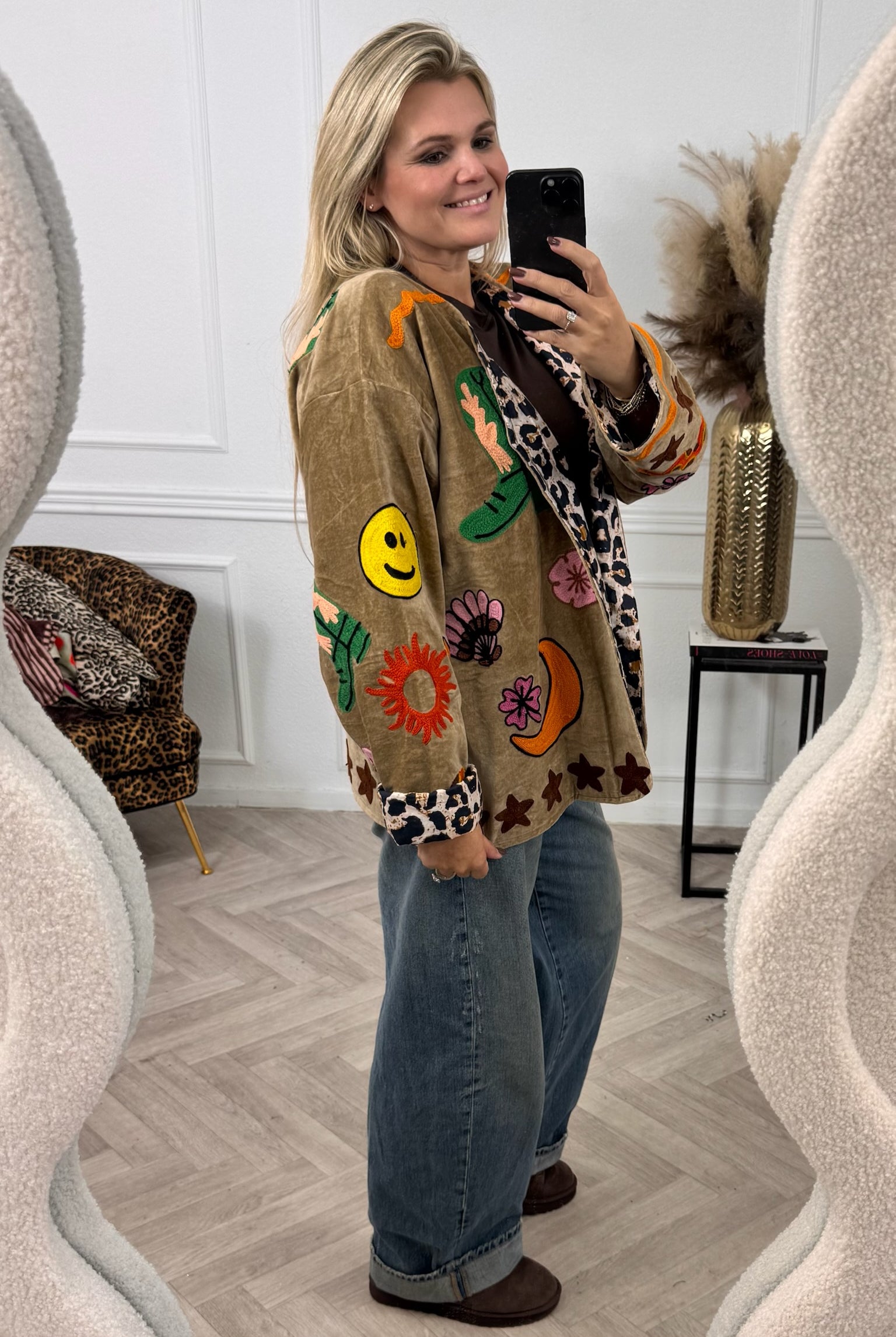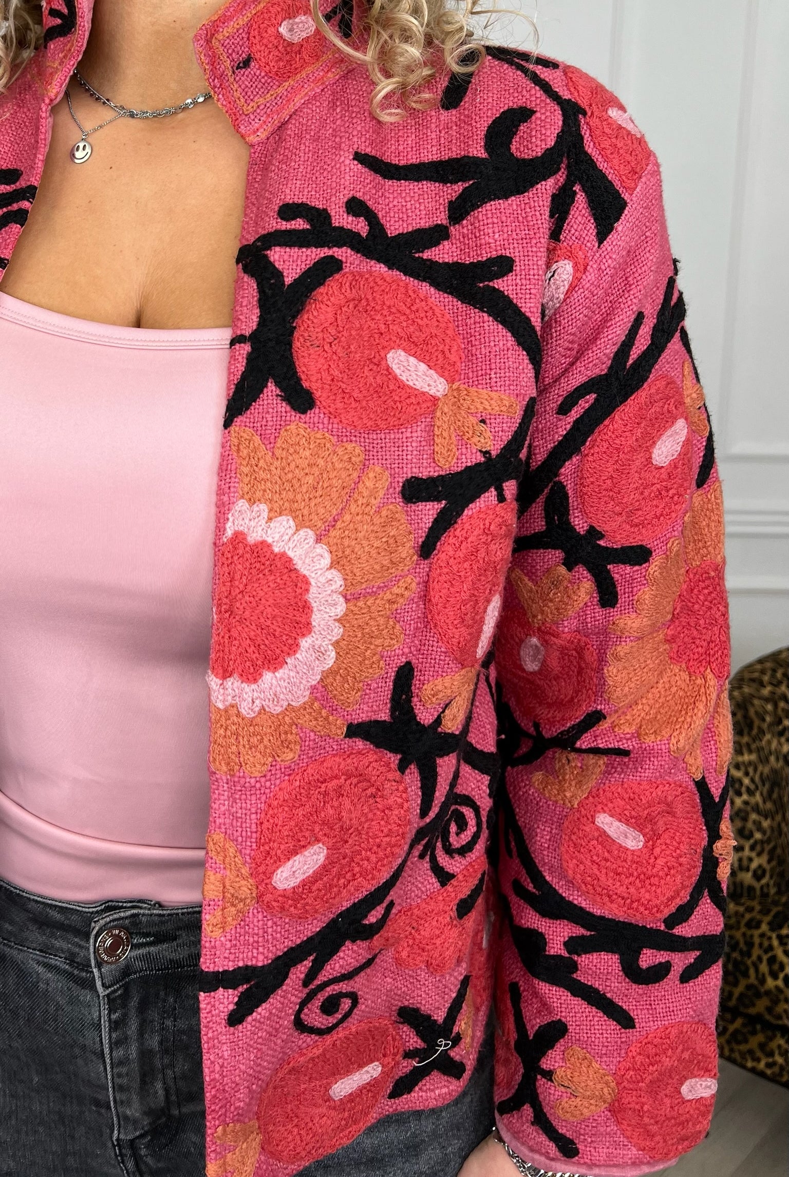 De collectie bestaat uit verschillende stijlen en motieven: van kleurrijke bloemenprints tot elegante patronen met een unieke touch. Dankzij het gebruik van katoen en velvetstof voelen de jasjes niet alleen heerlijk aan, maar dragen ze ook comfortabel in elk seizoen. Combineer ze casual op een jeans, of draag ze over een jurk voor een stijlvolle, opvallende look.