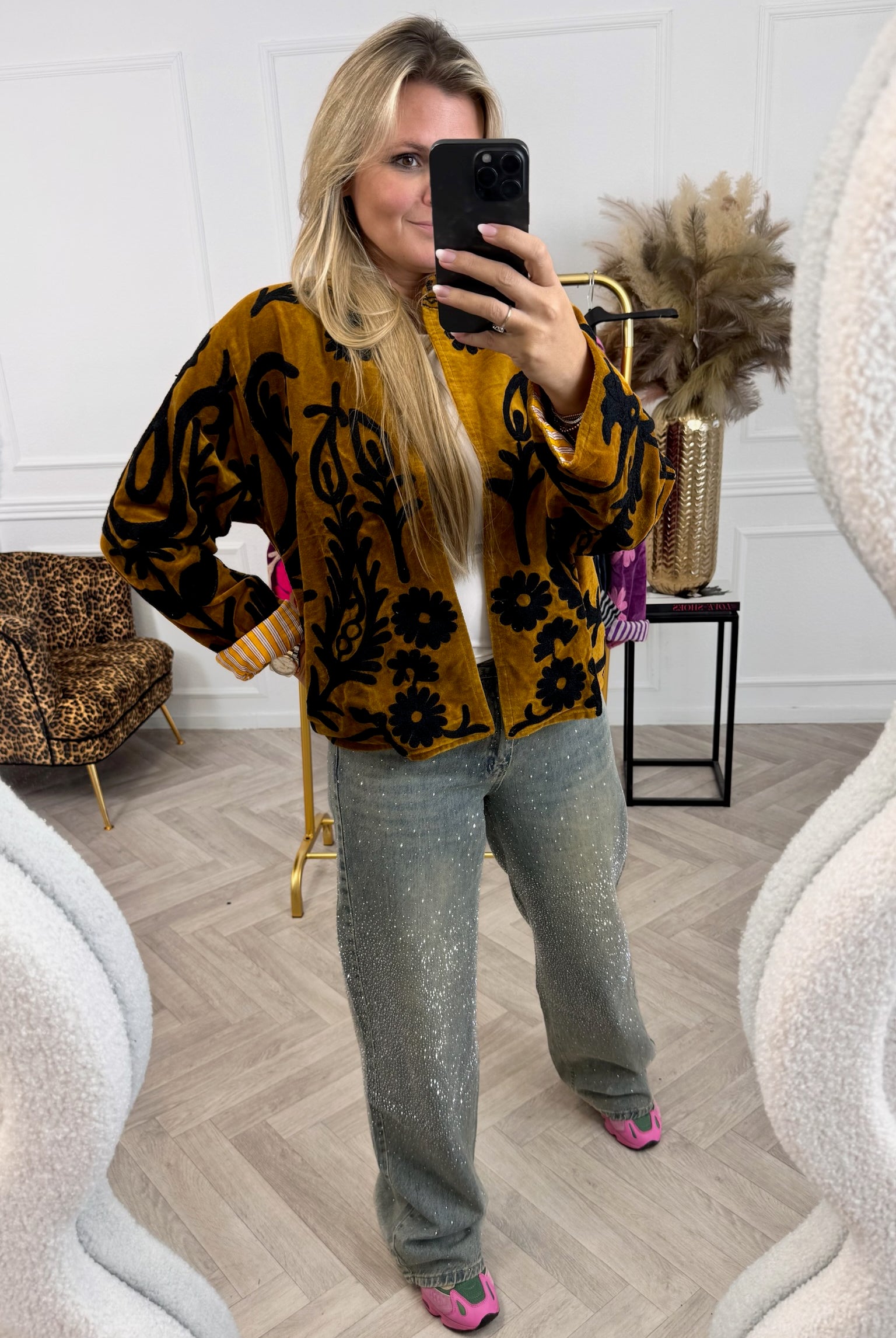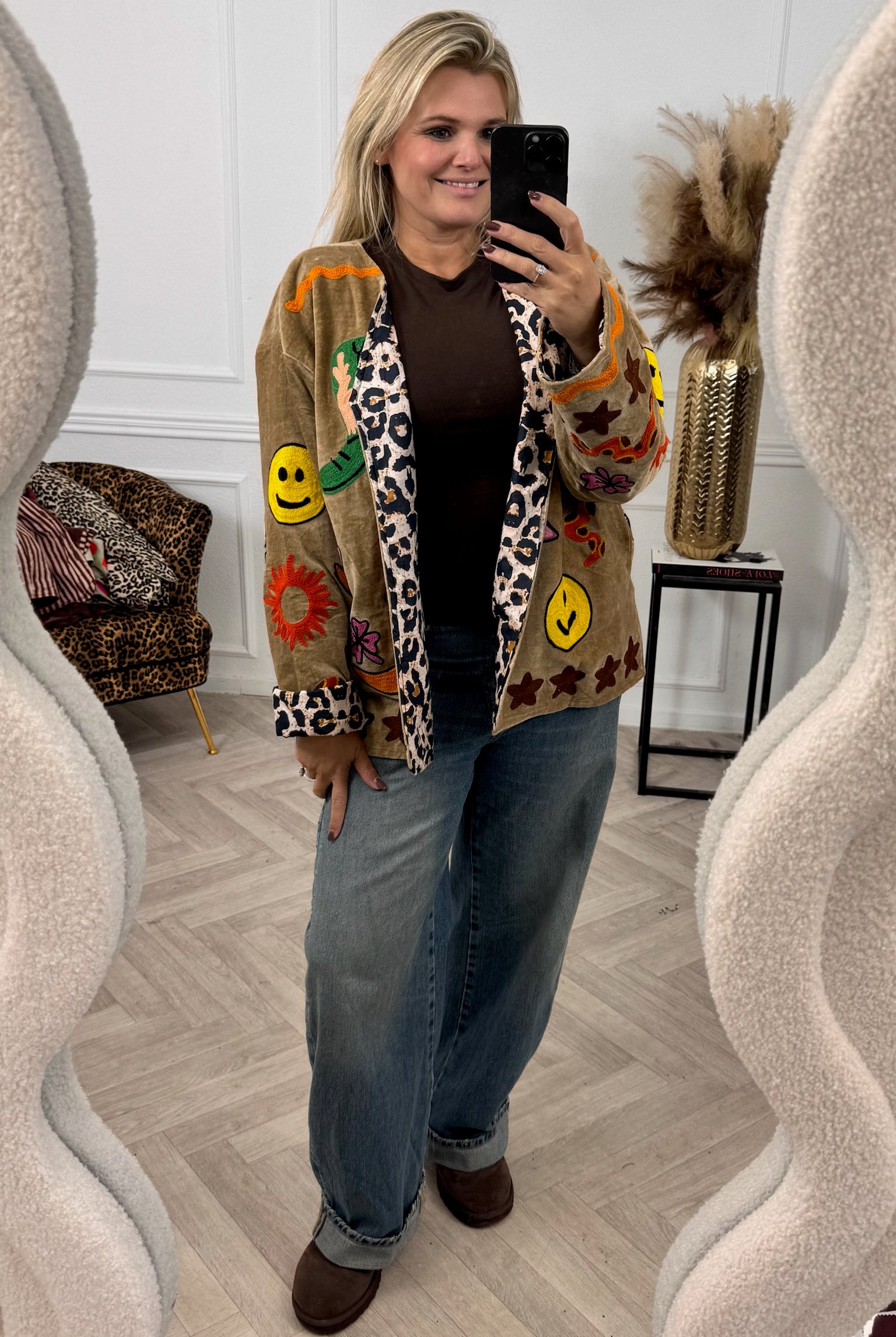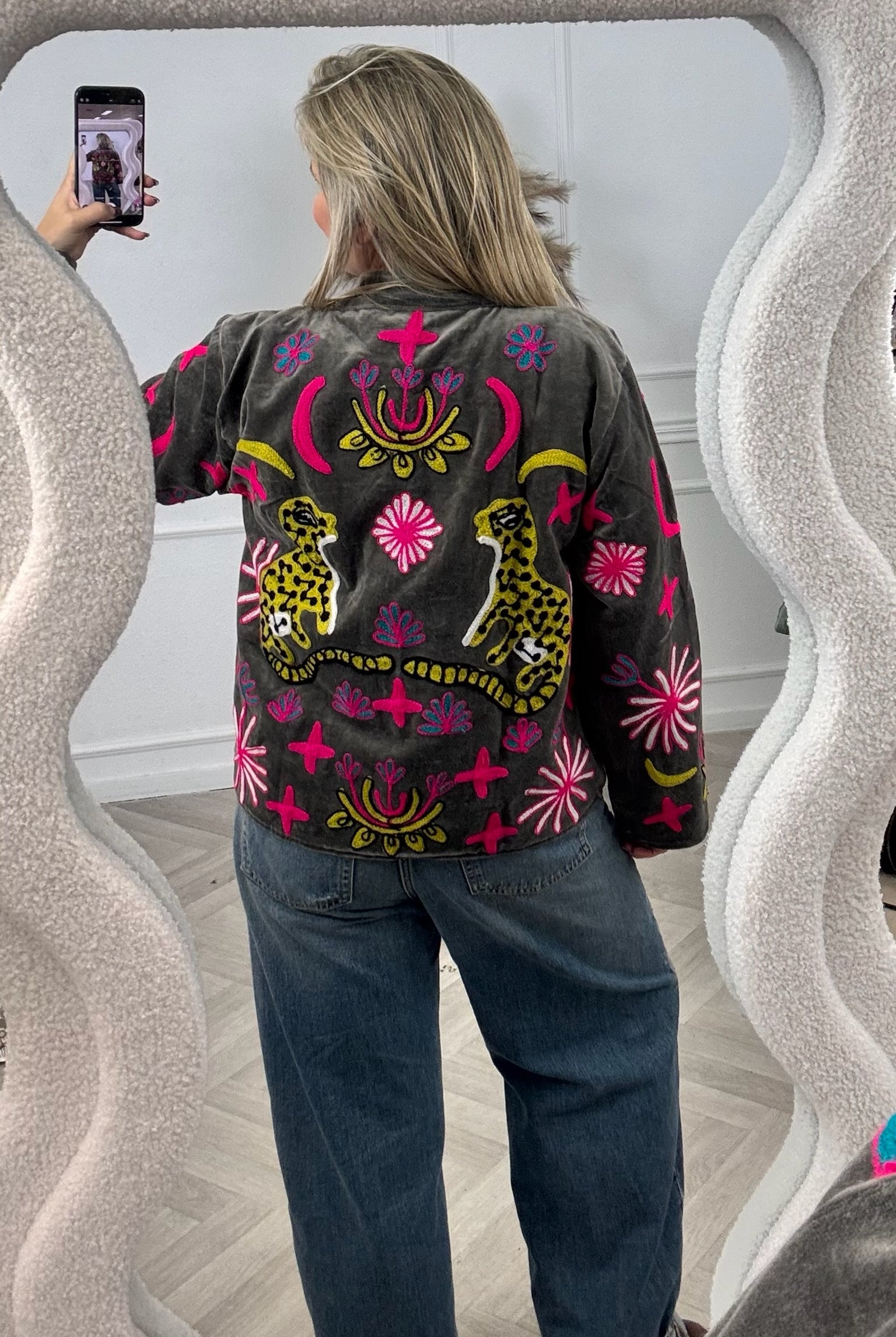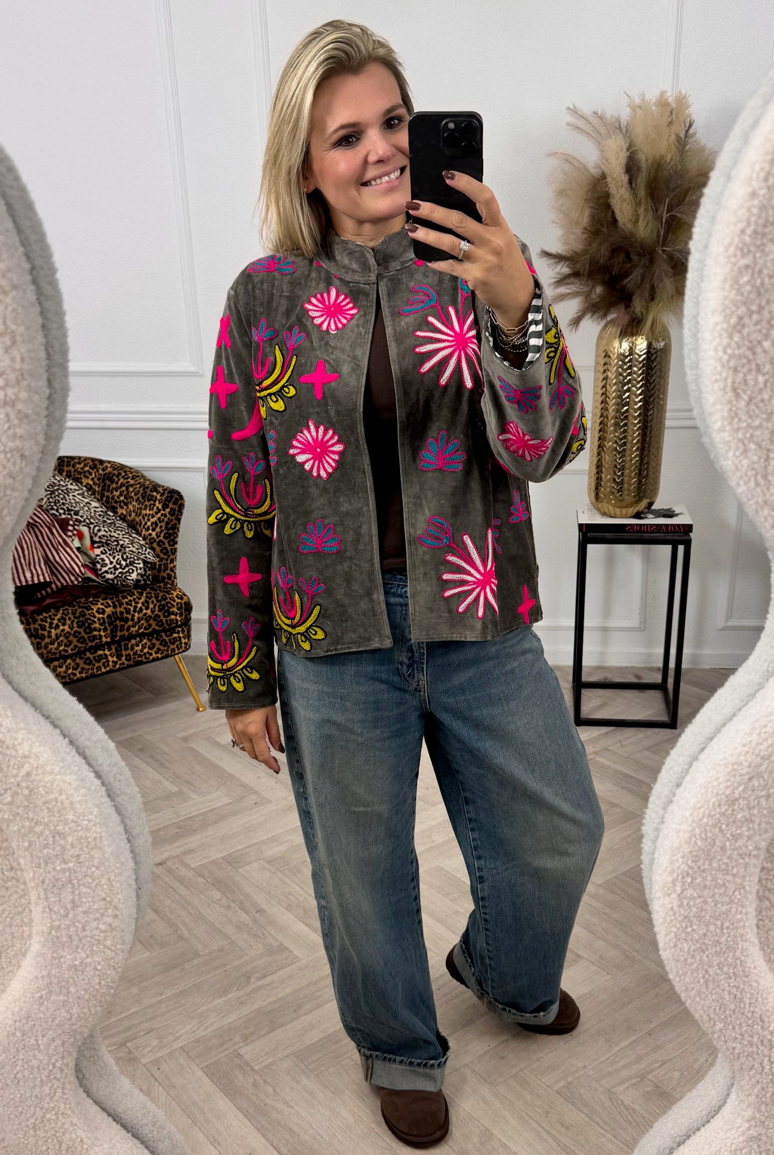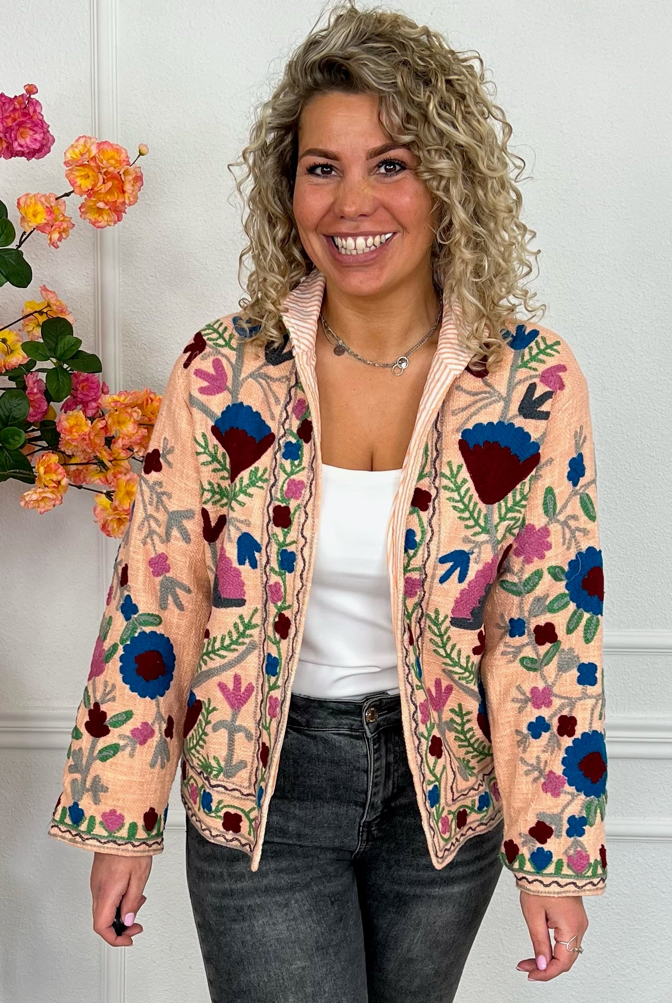 De collectie bestaat uit verschillende stijlen en motieven: van kleurrijke bloemenprints tot elegante patronen met een unieke touch. Dankzij het gebruik van katoen en velvetstof voelen de jasjes niet alleen heerlijk aan, maar dragen ze ook comfortabel in elk seizoen. Combineer ze casual op een jeans, of draag ze over een jurk voor een stijlvolle, opvallende look.