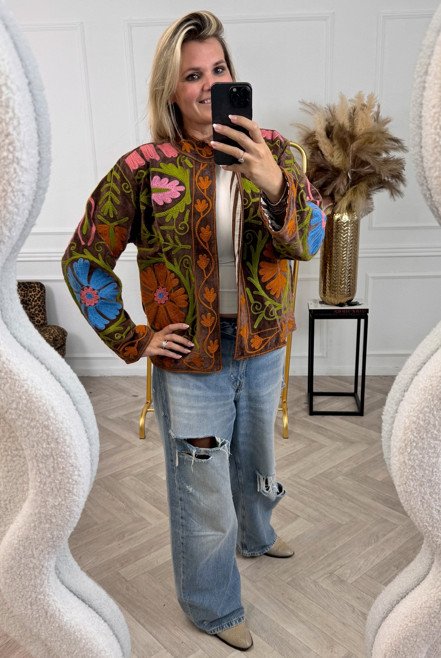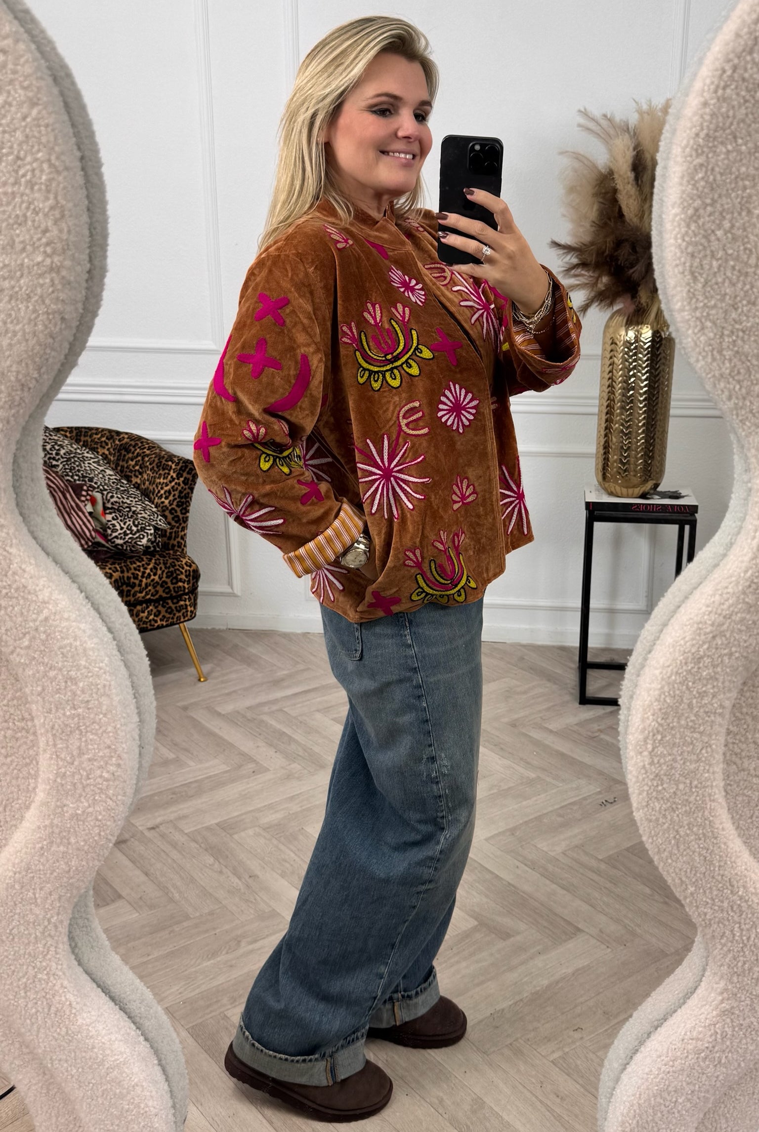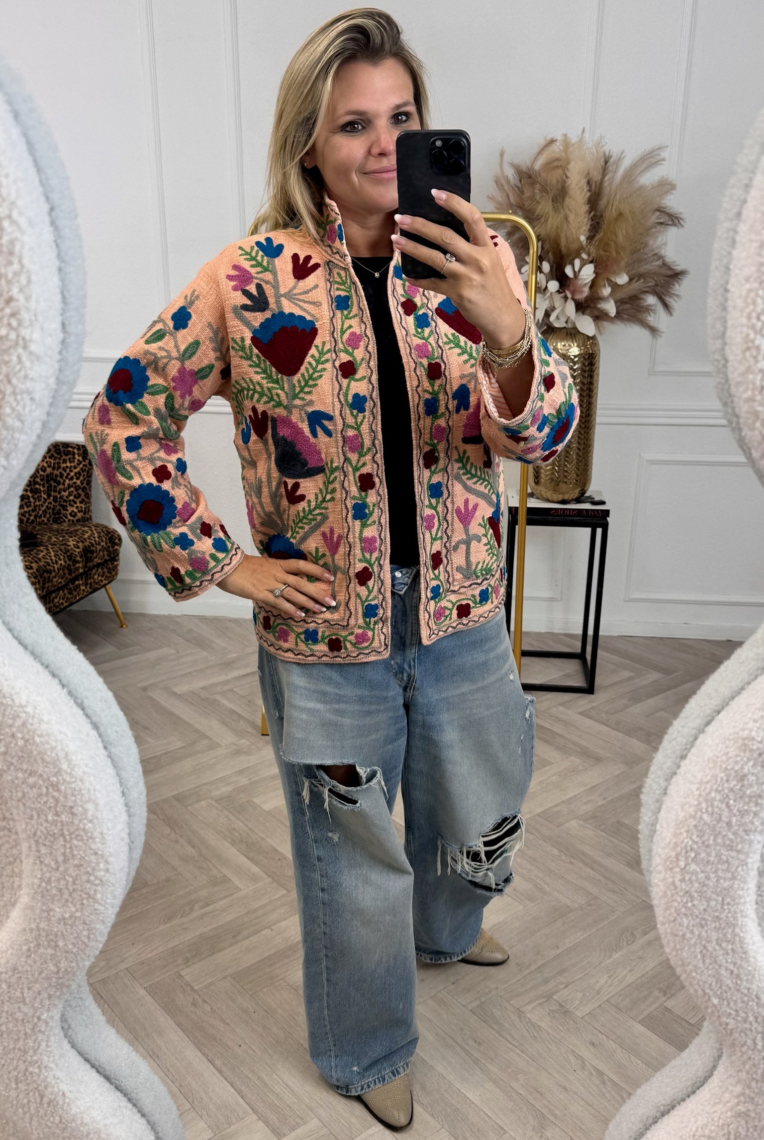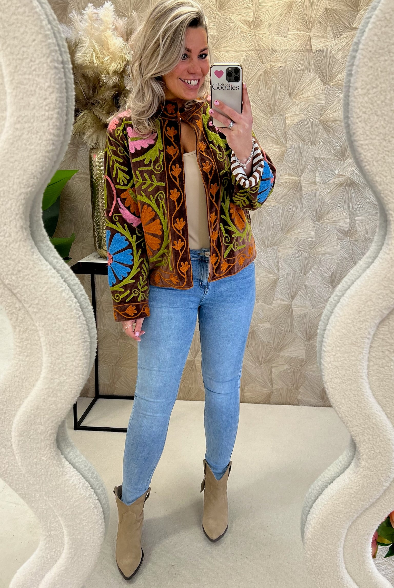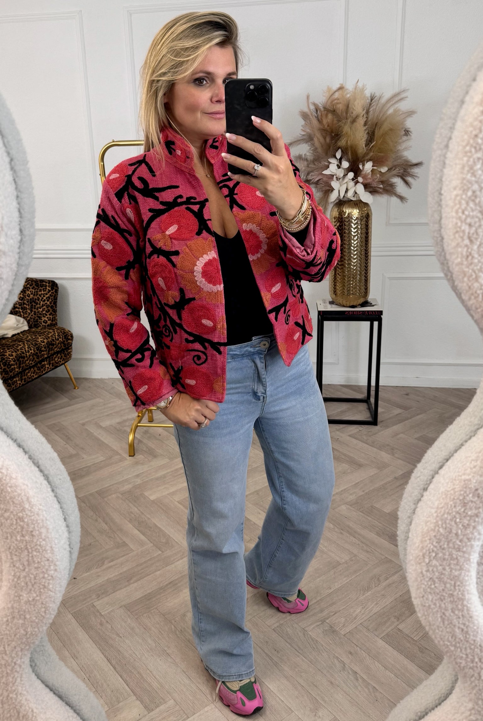 De collectie bestaat uit verschillende stijlen en motieven: van kleurrijke bloemenprints tot elegante patronen met een unieke touch. Dankzij het gebruik van katoen en velvetstof voelen de jasjes niet alleen heerlijk aan, maar dragen ze ook comfortabel in elk seizoen. Combineer ze casual op een jeans, of draag ze over een jurk voor een stijlvolle, opvallende look.