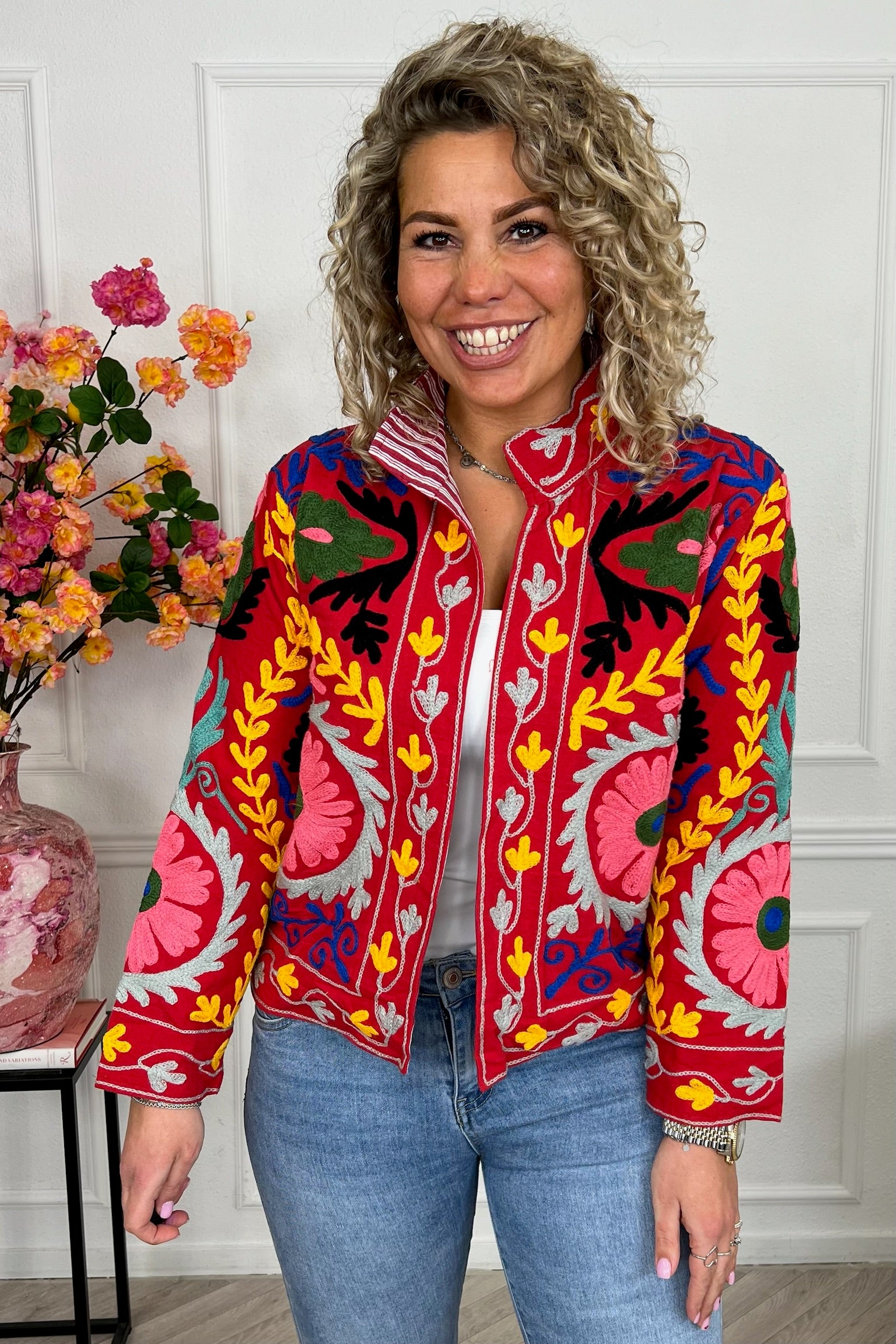 Dit mega leuke jasje is gemaakt van 100% katoen! Dit exemplaar heeft een mooie circle print. Shop hem nu in red!