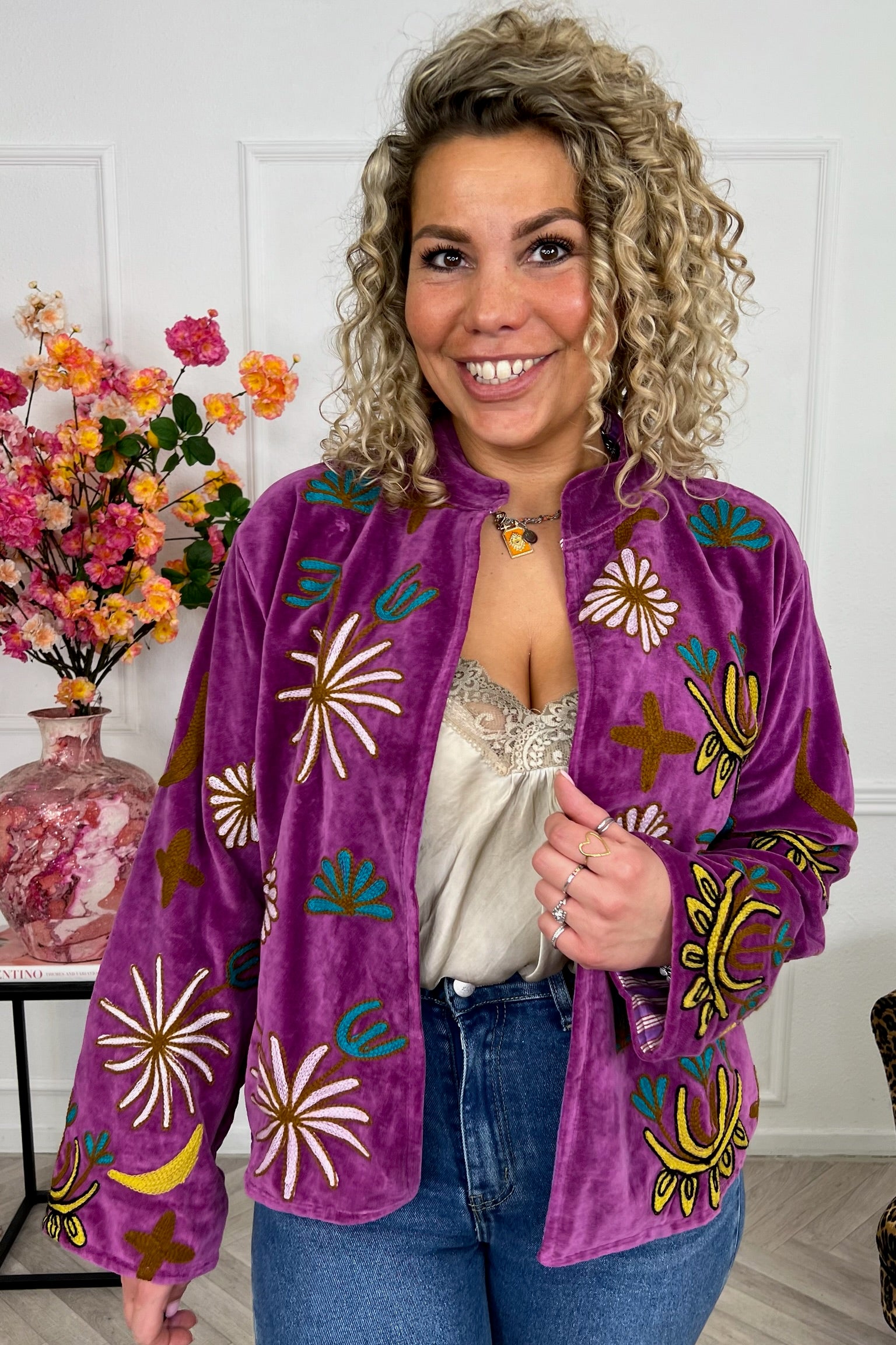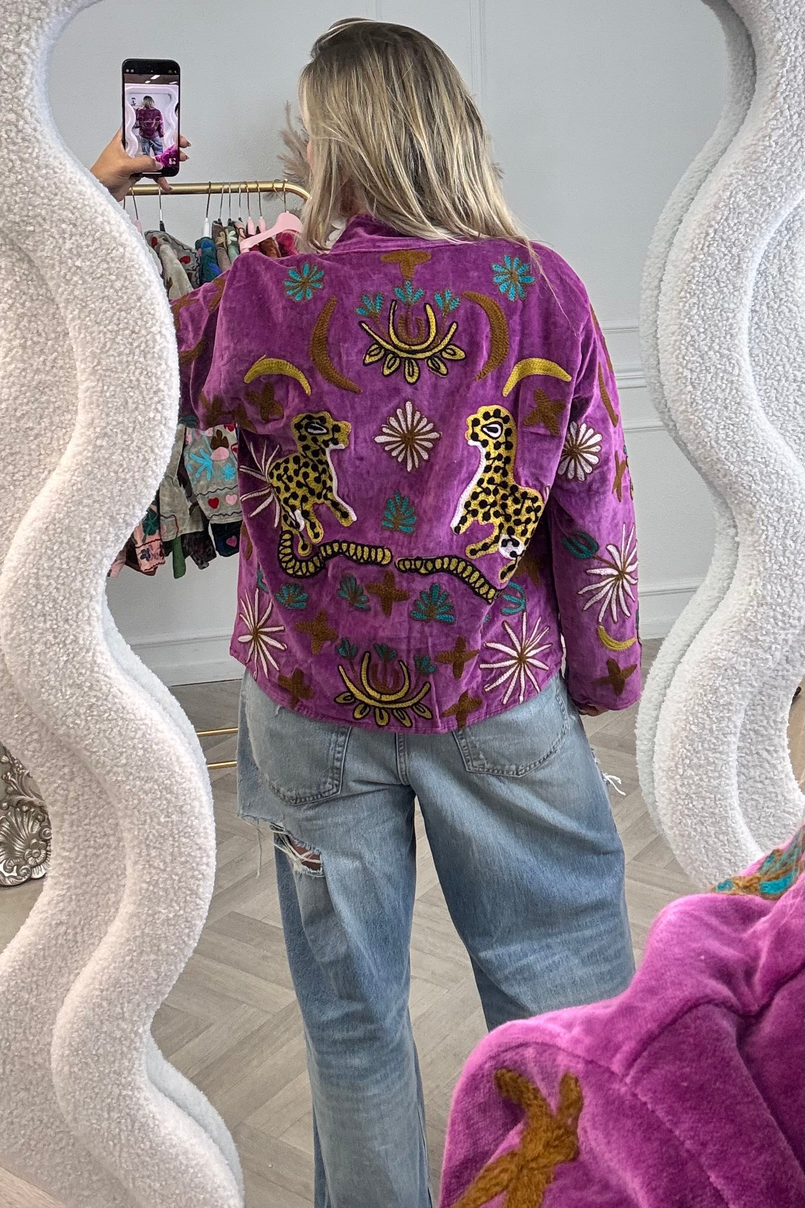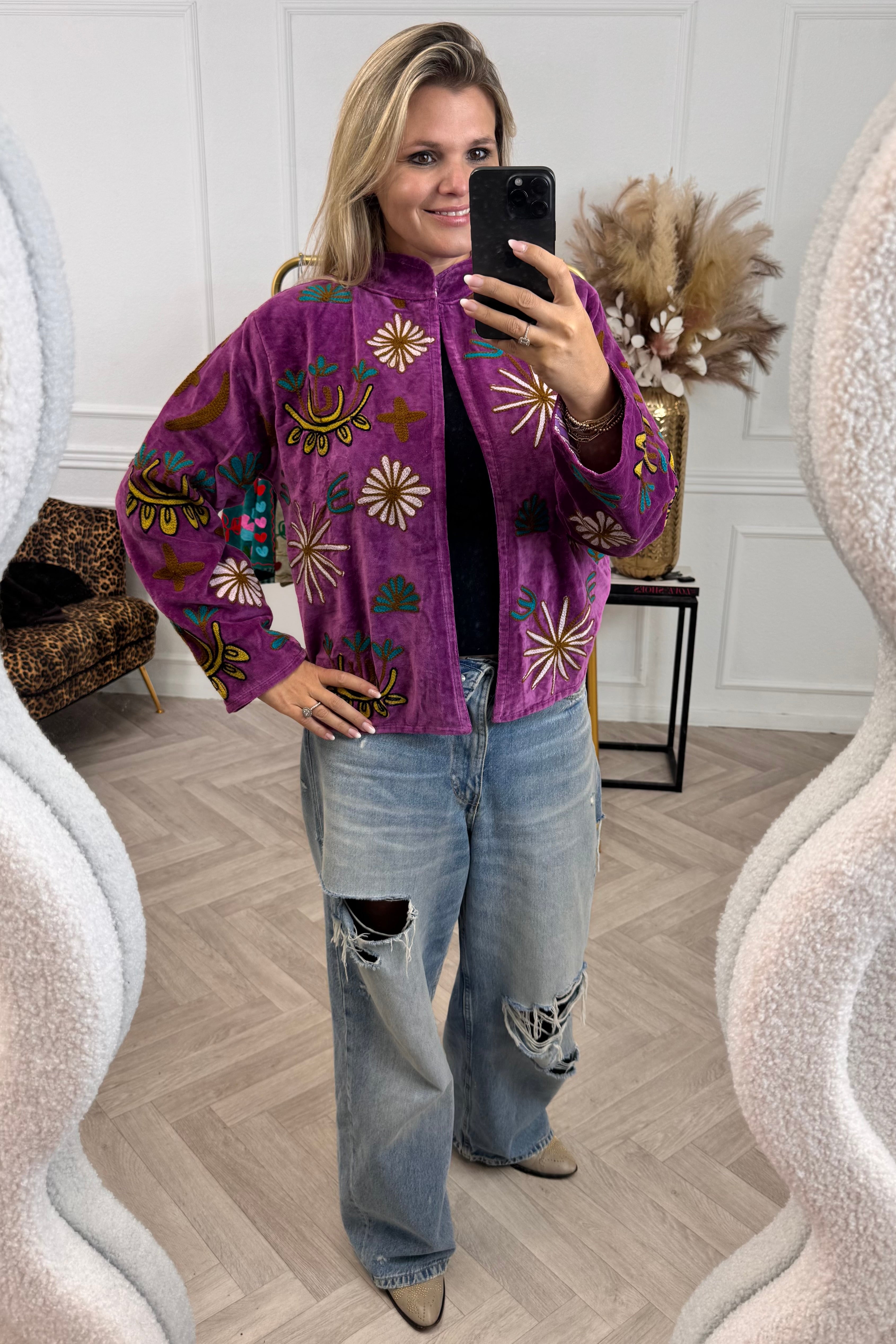 Dit mega leuke jasje is gemaakt van 100% katoen en heeft een velvet look! Dit exemplaar heeft een mooie leopard print. Shop hem nu in purple!