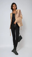 Fake Leather Fringe Jacket - Camel