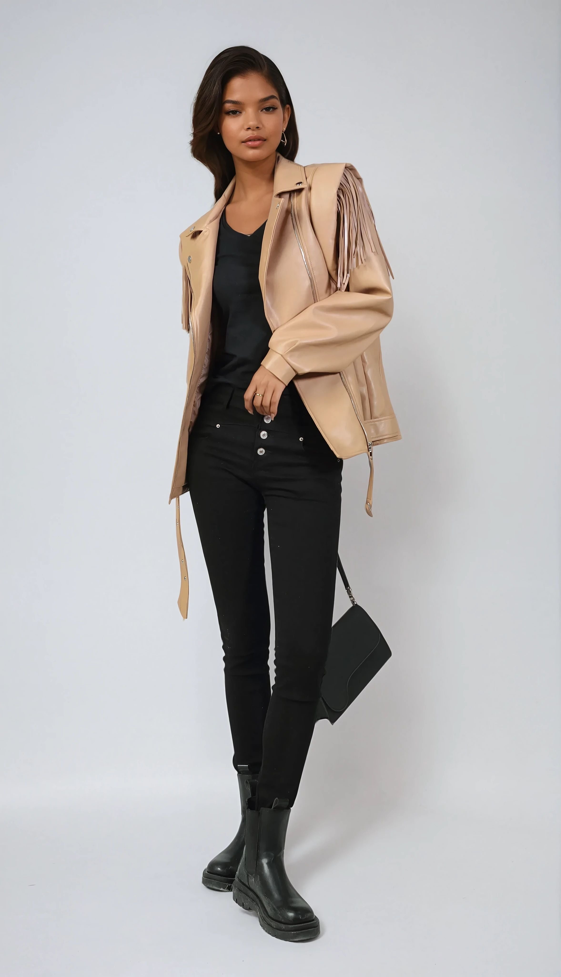 Super leuke leren jasjes die perfect zijn om nu te dragen! Met het leuke fringe detail hebben we ze nu in 2 kleuren. Shop hem in Camel!