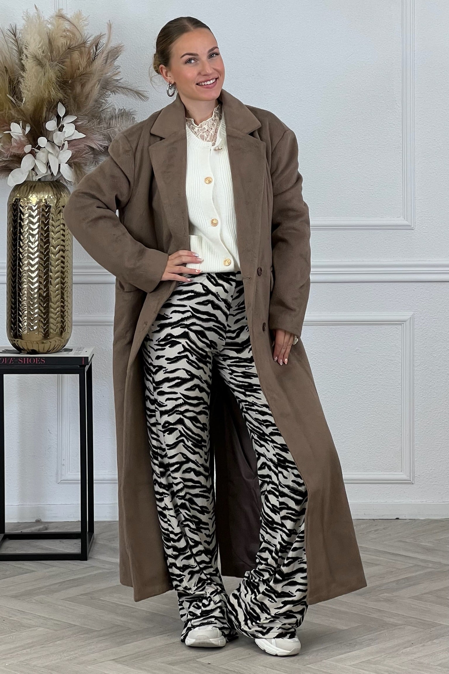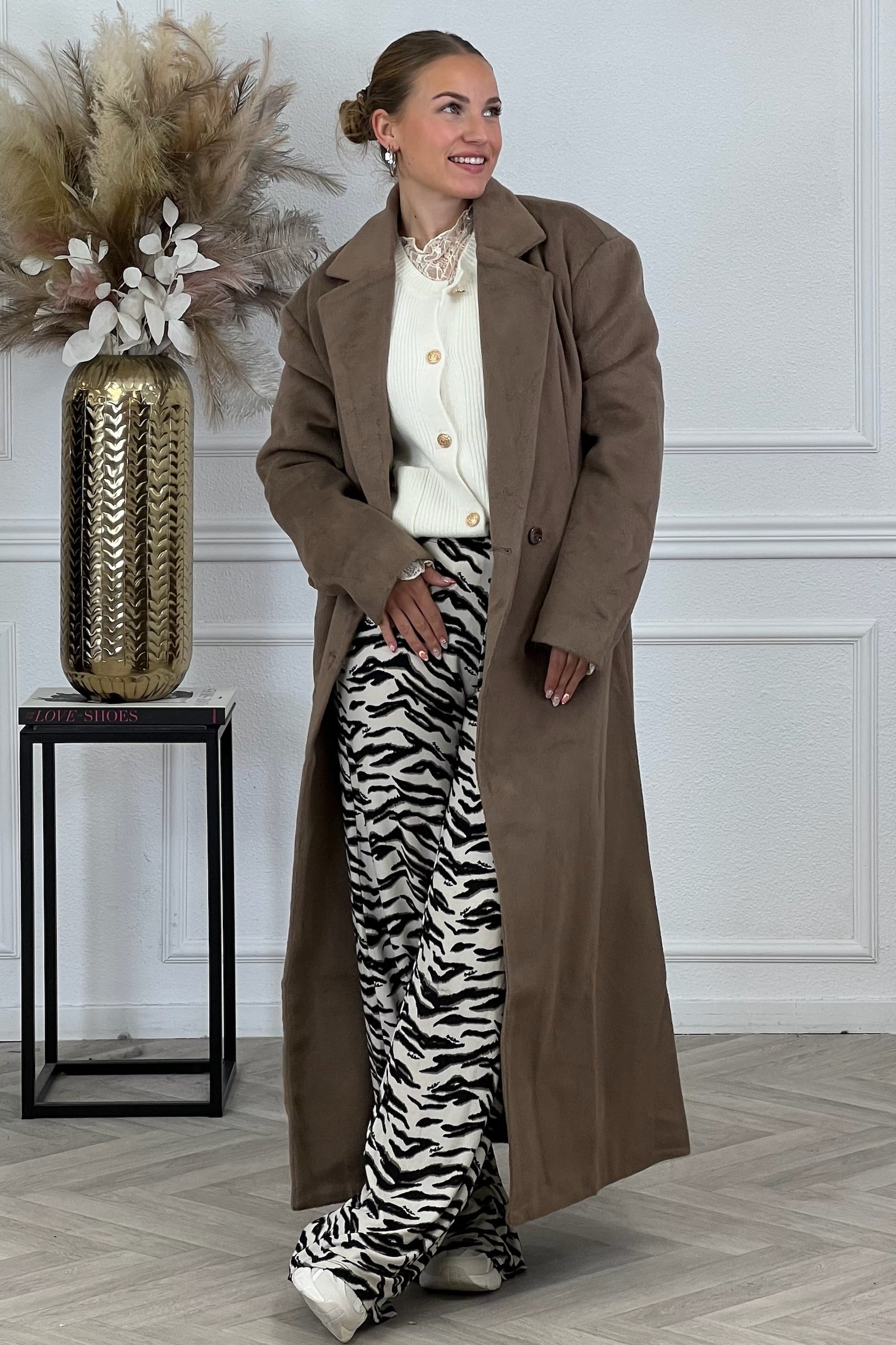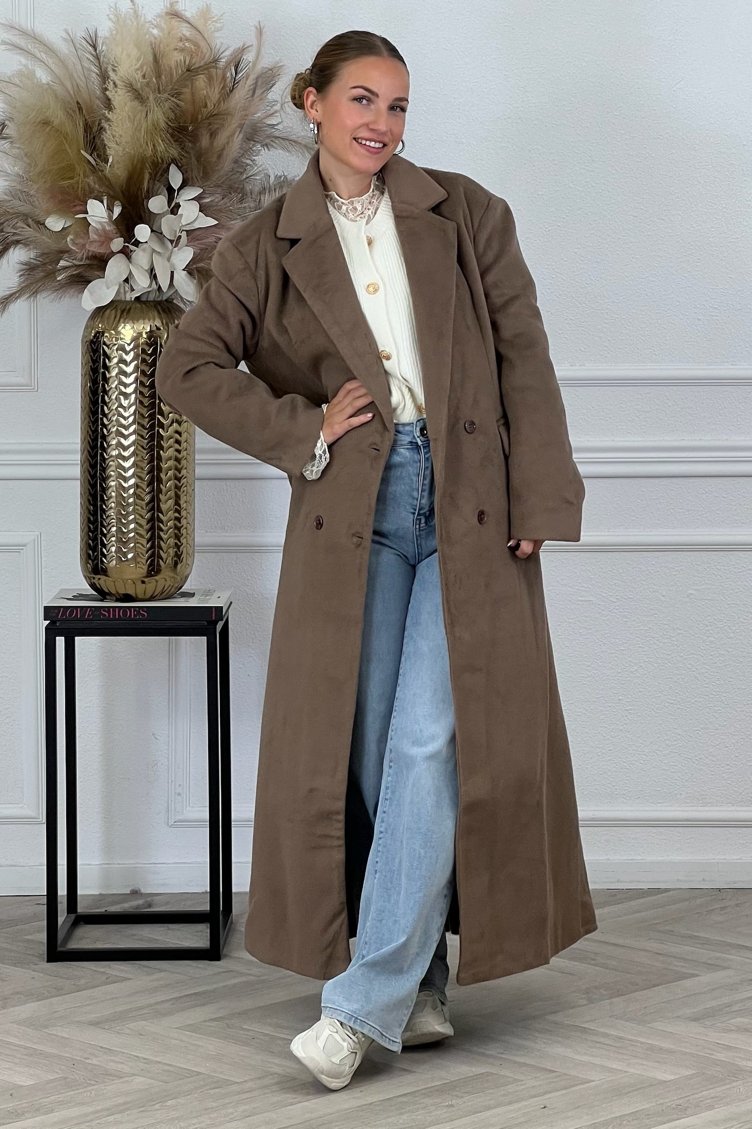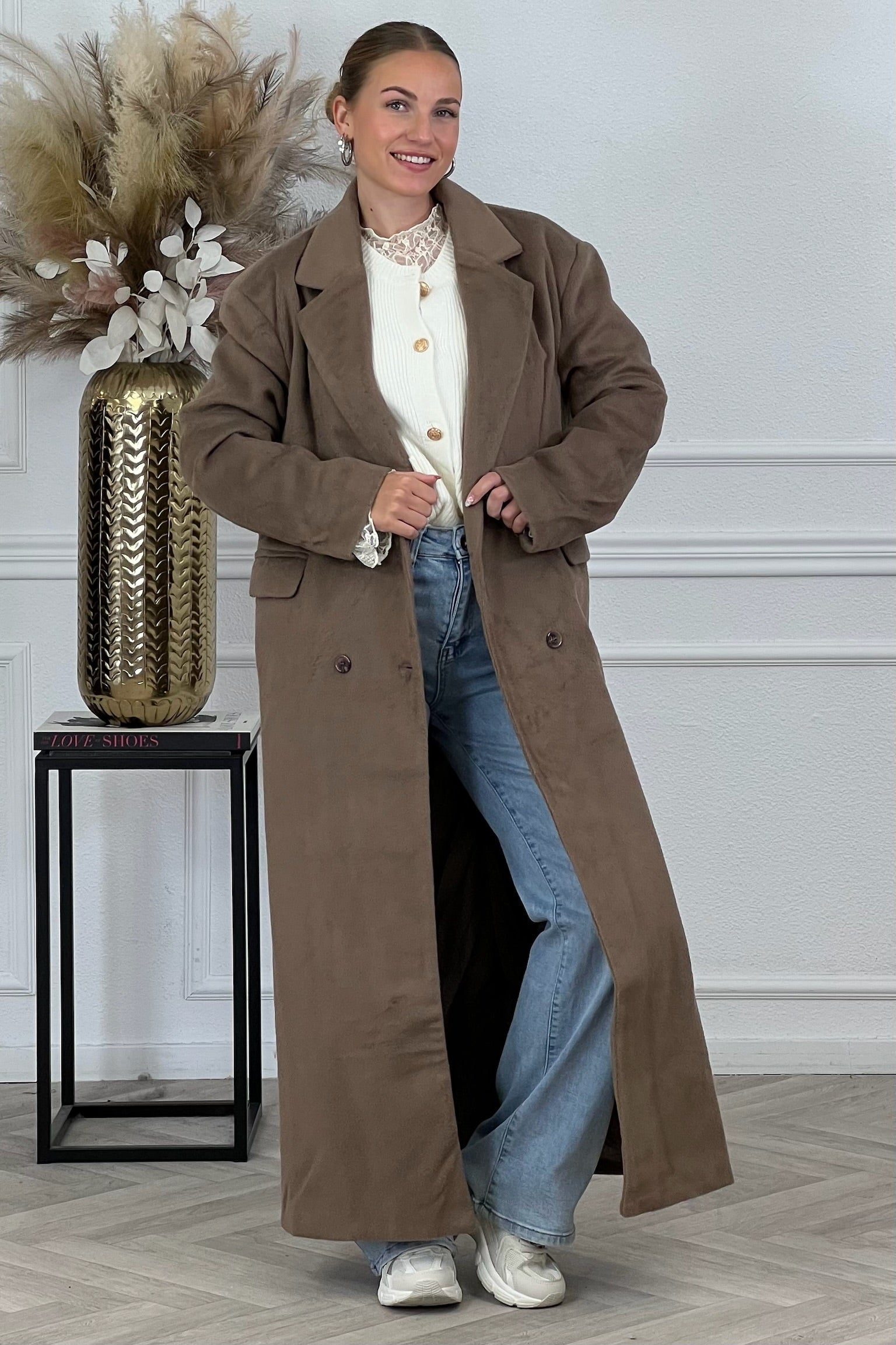 Deze heerlijke coat is een echte musthave dit seizoen! Hij is heerlijk lang en zacht, shop hem nu in taupe.