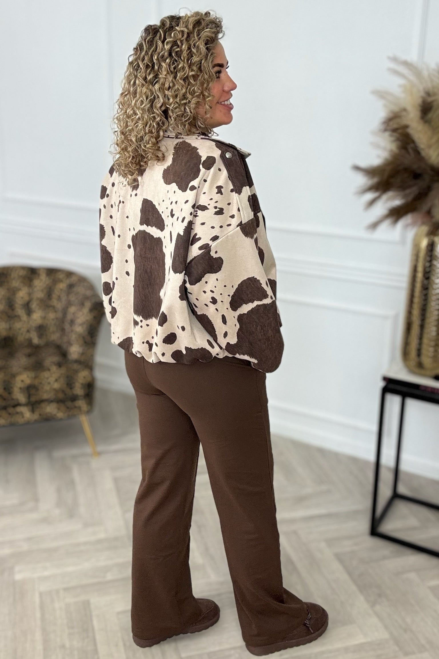 Deze mooie suede bomber is de perfecte eyecatcher voor de herfst! Shop hem nu met mooie cow print in beige/brown!