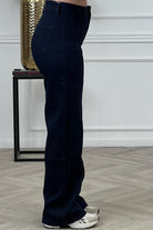 Deze prachtige wide leg heeft een mooie streep, voorop de broek! Shop deze wide leg nu in het dark blue! Van maat 36 tot en met 44!