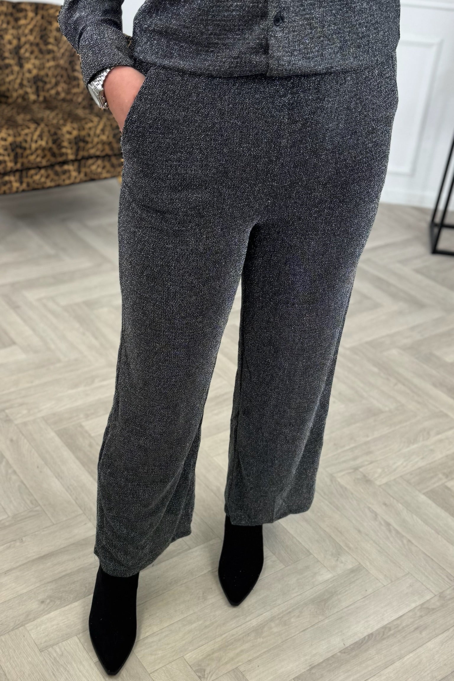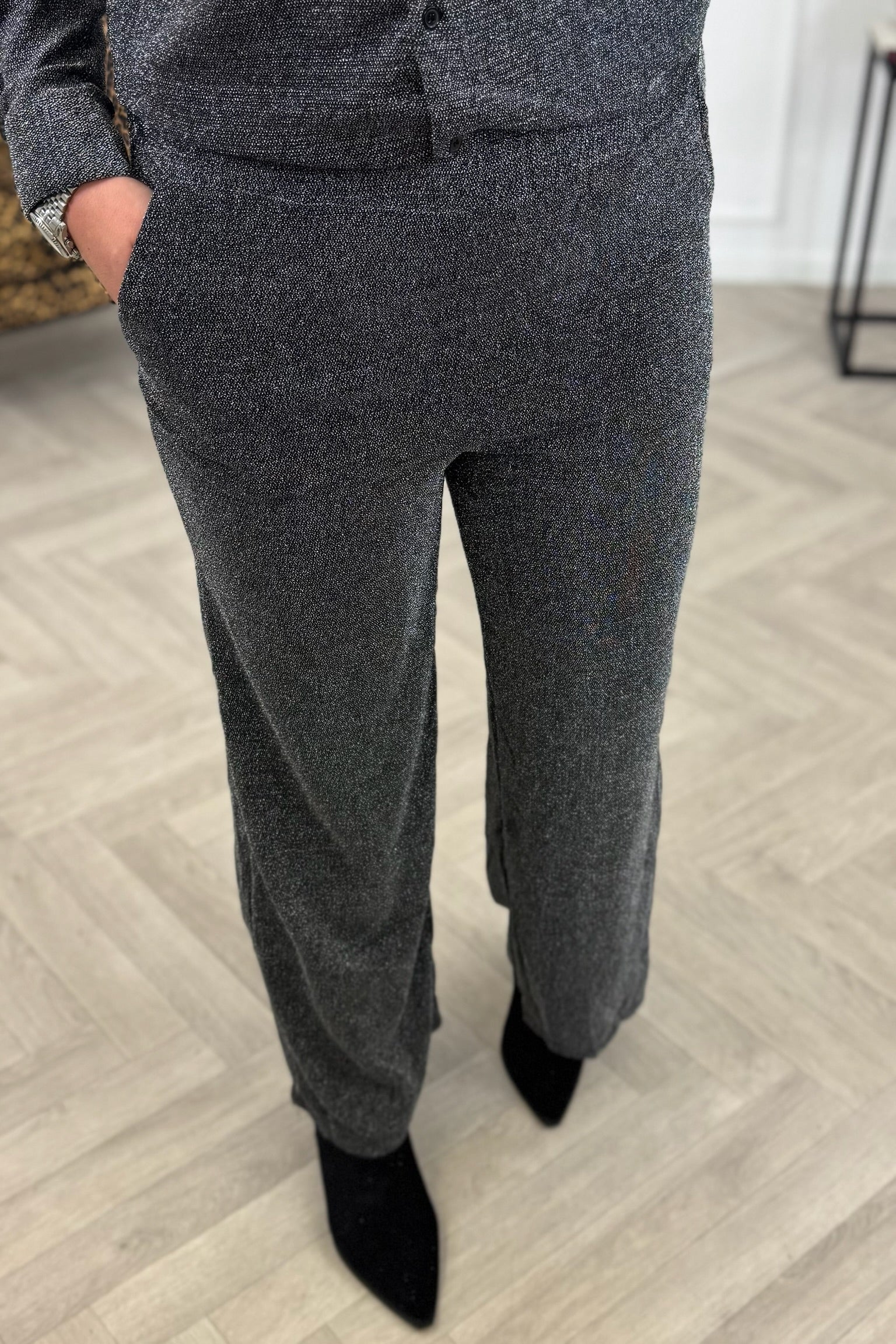 Een fantastische glitter broek, die ook nog eens heerlijk zit! Deze broek heeft mega veel stretch en zit mega comfy! Shop de glitter wide leg pants nu snel!