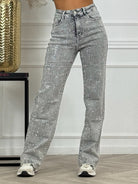 Wat een sparkle van een broek is dit! De super glitter jeans is helemaal vol met glitter!Shop hem nu in grey.