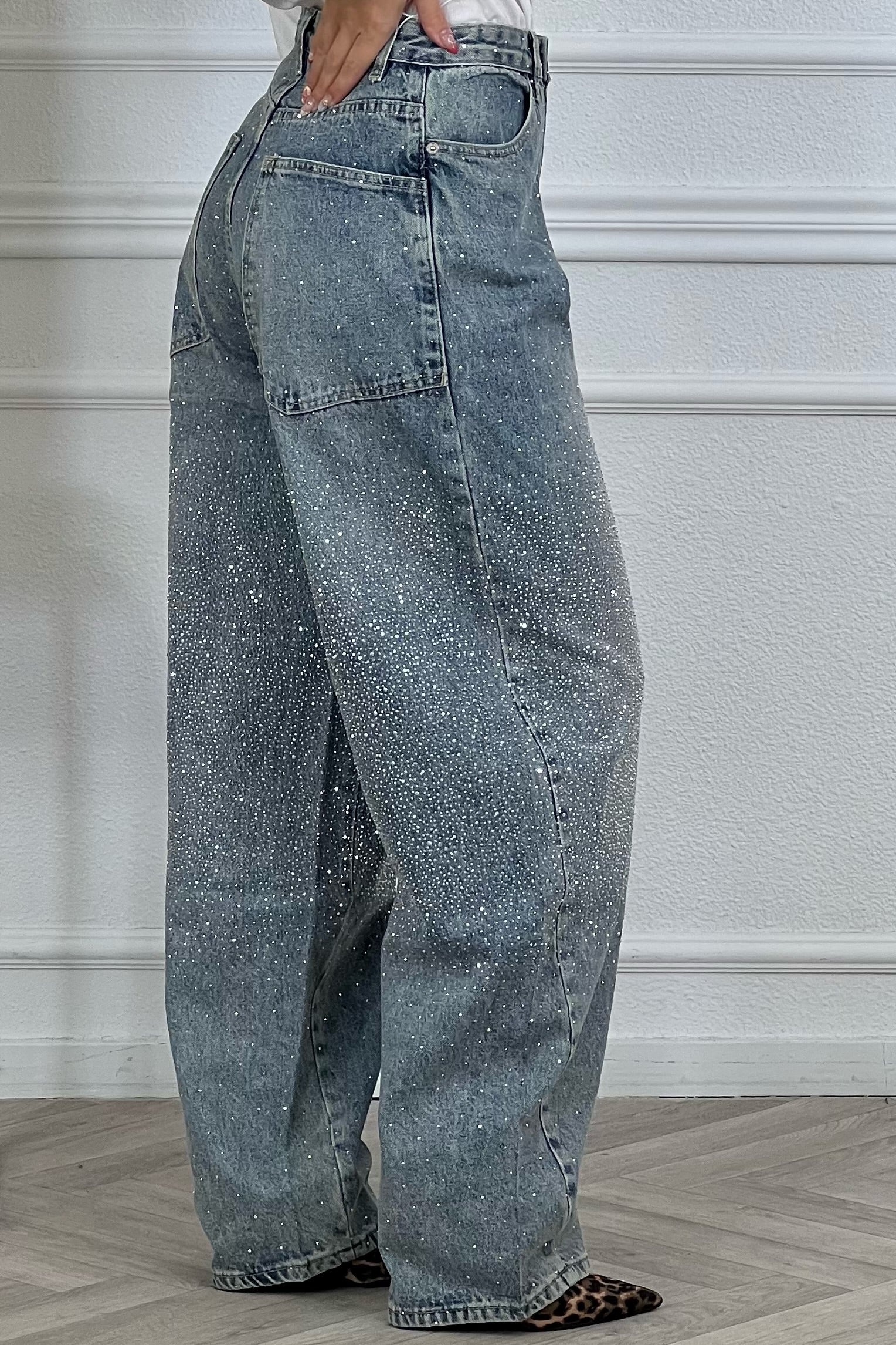 Wonderful Baggy Glitter Jeans - Blue