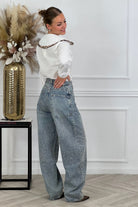 Wat een gave jeans! Hij heeft een baggy model en mooie glitters, shop hem nu in blue!