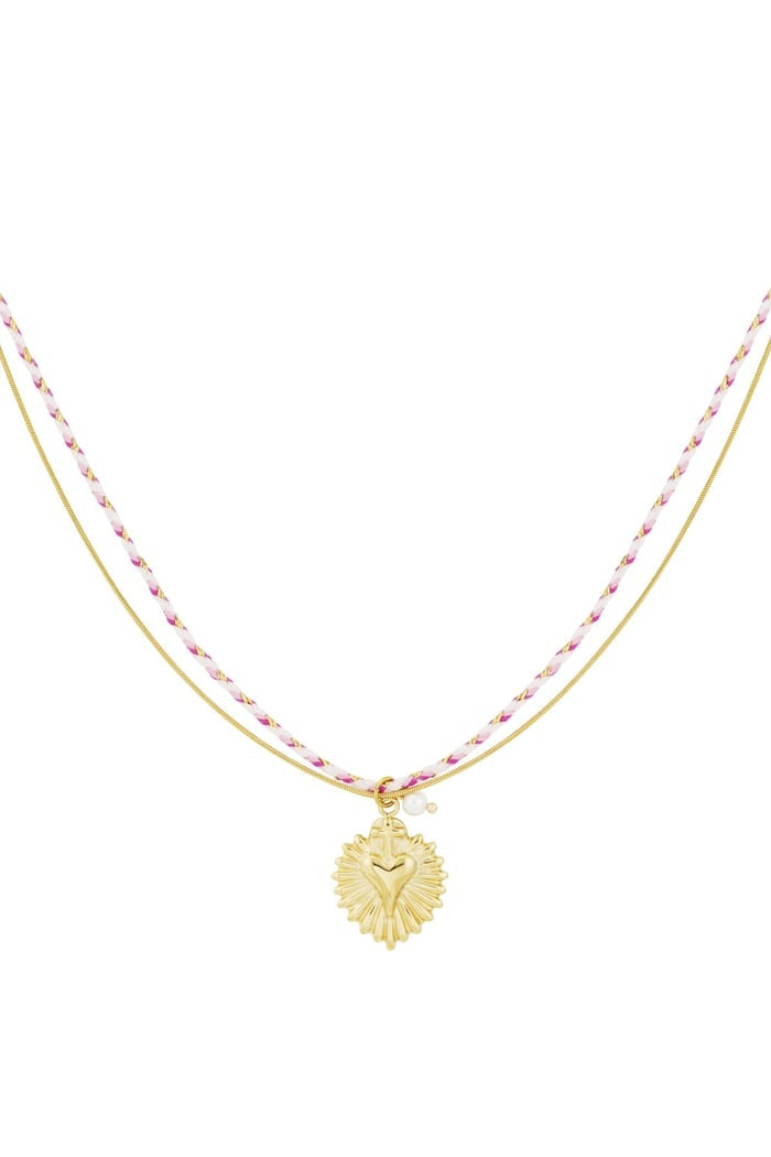 Colorful Heartbeat Necklace - Pink/Gold