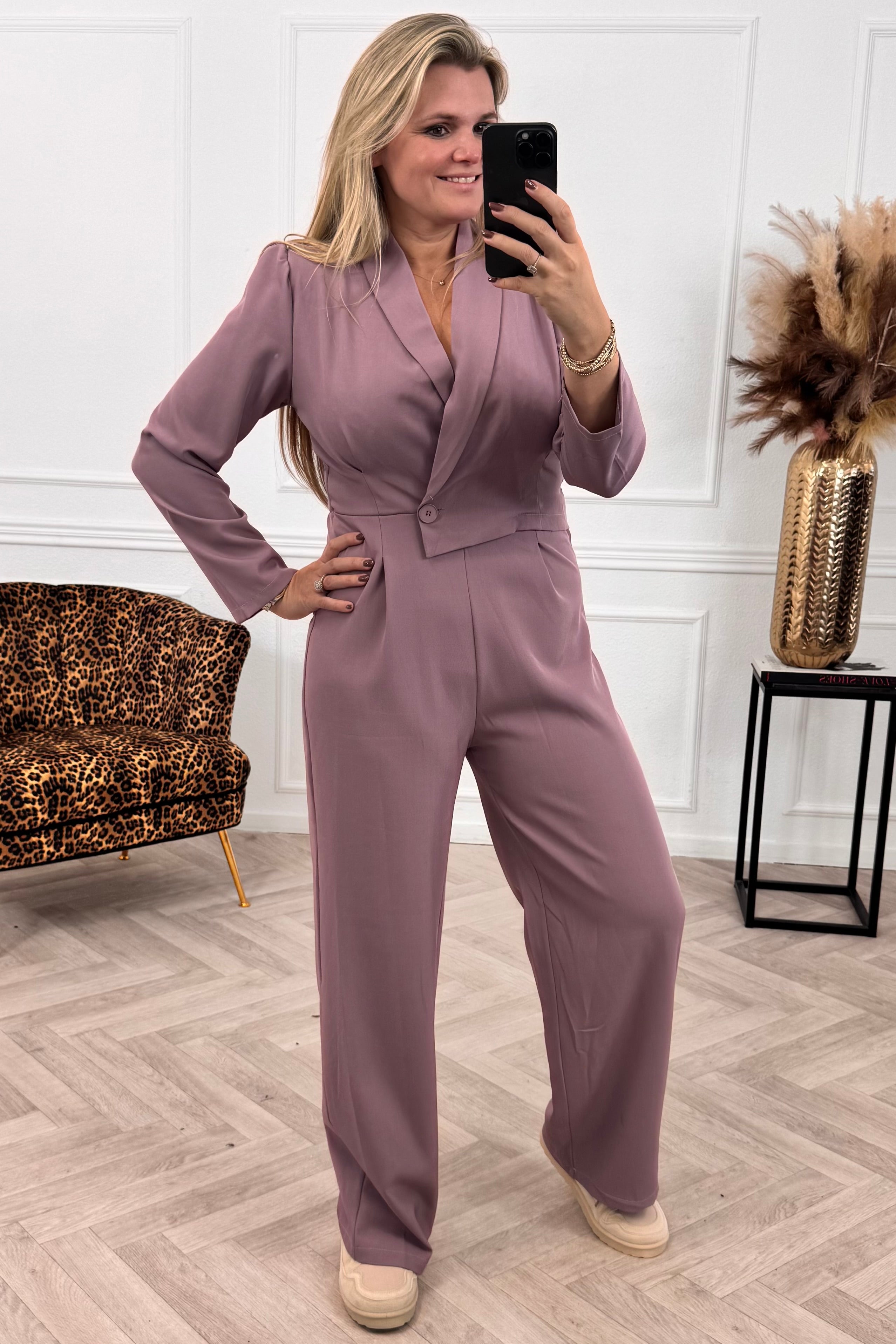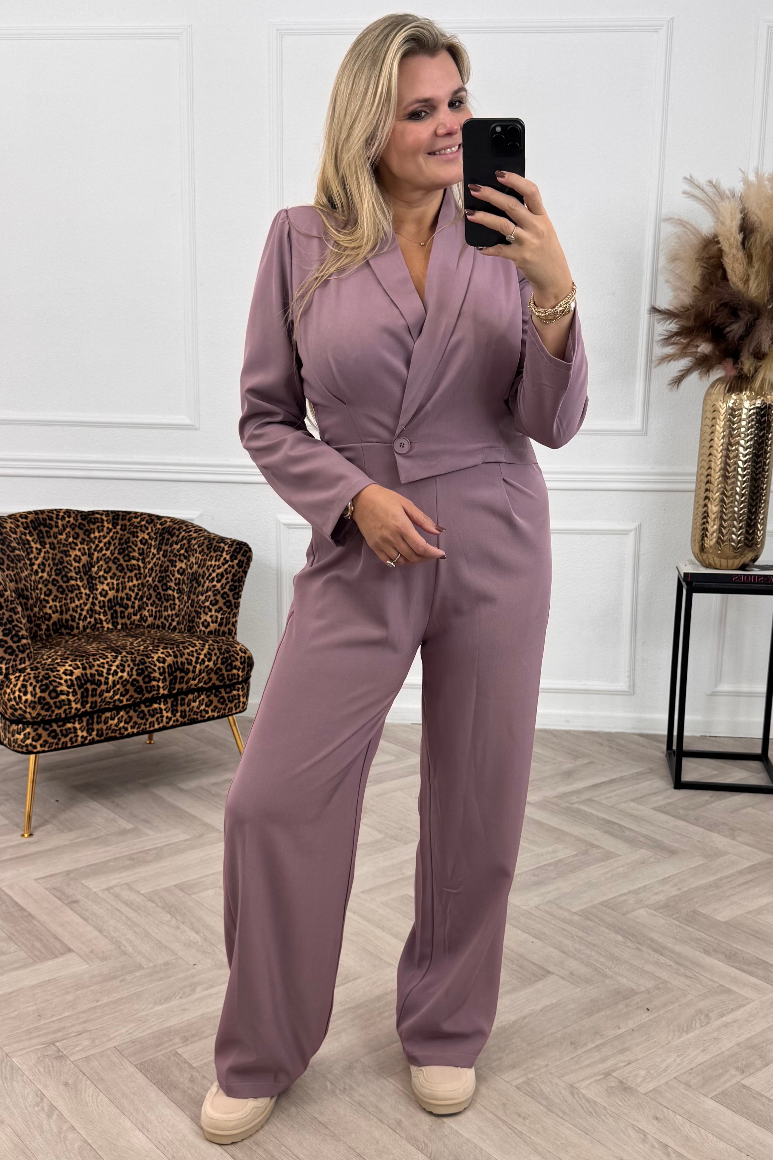Wow! Ben jij ook zo op jumpsuits? Wij wel, en hoe bijzonder is deze jumpsuit: het lijkt op ons Classy Suit (met blazer en pantalon), maar dan als jumpsuit! Shop hem in mauve!