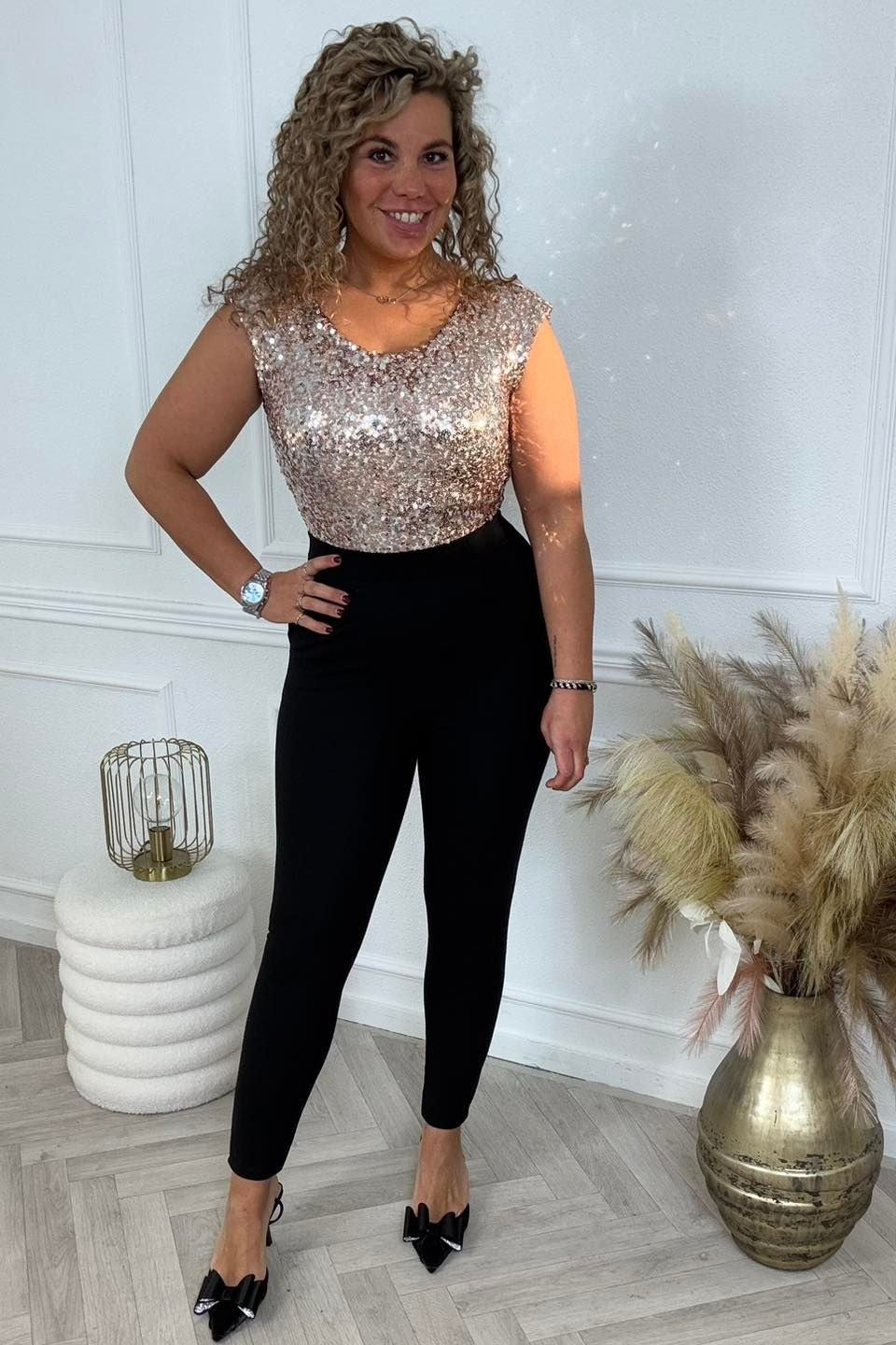 Regular Sara Sequin Jumpsuit - Champagne/Black