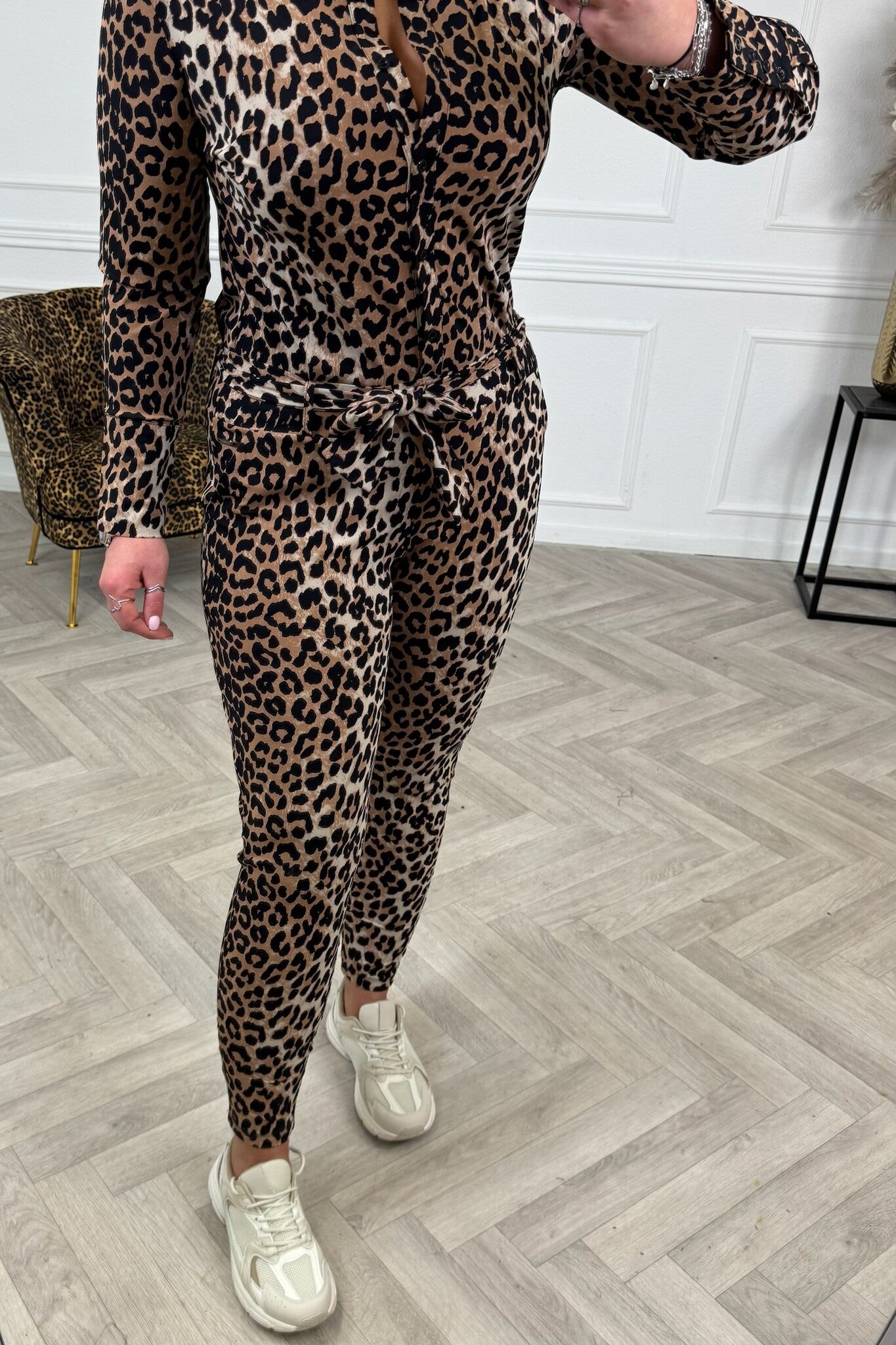 Travel Jumpsuit Leopard - Camel/Black