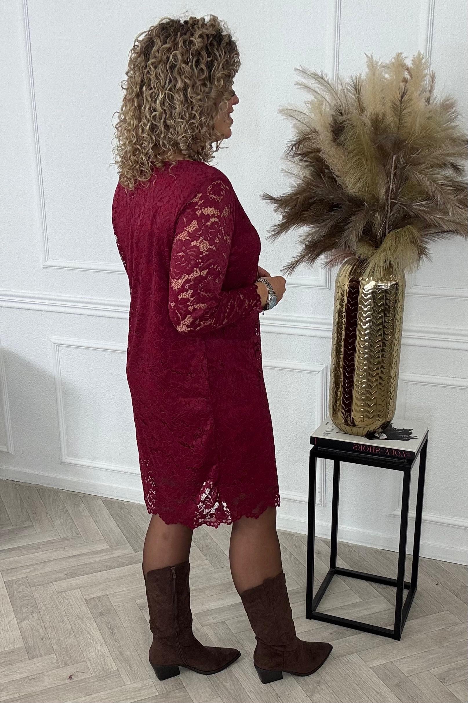 Deze fantastische lace dress maakt jouw feestdagen tot een waar succes! Shop hem in bordeaux!