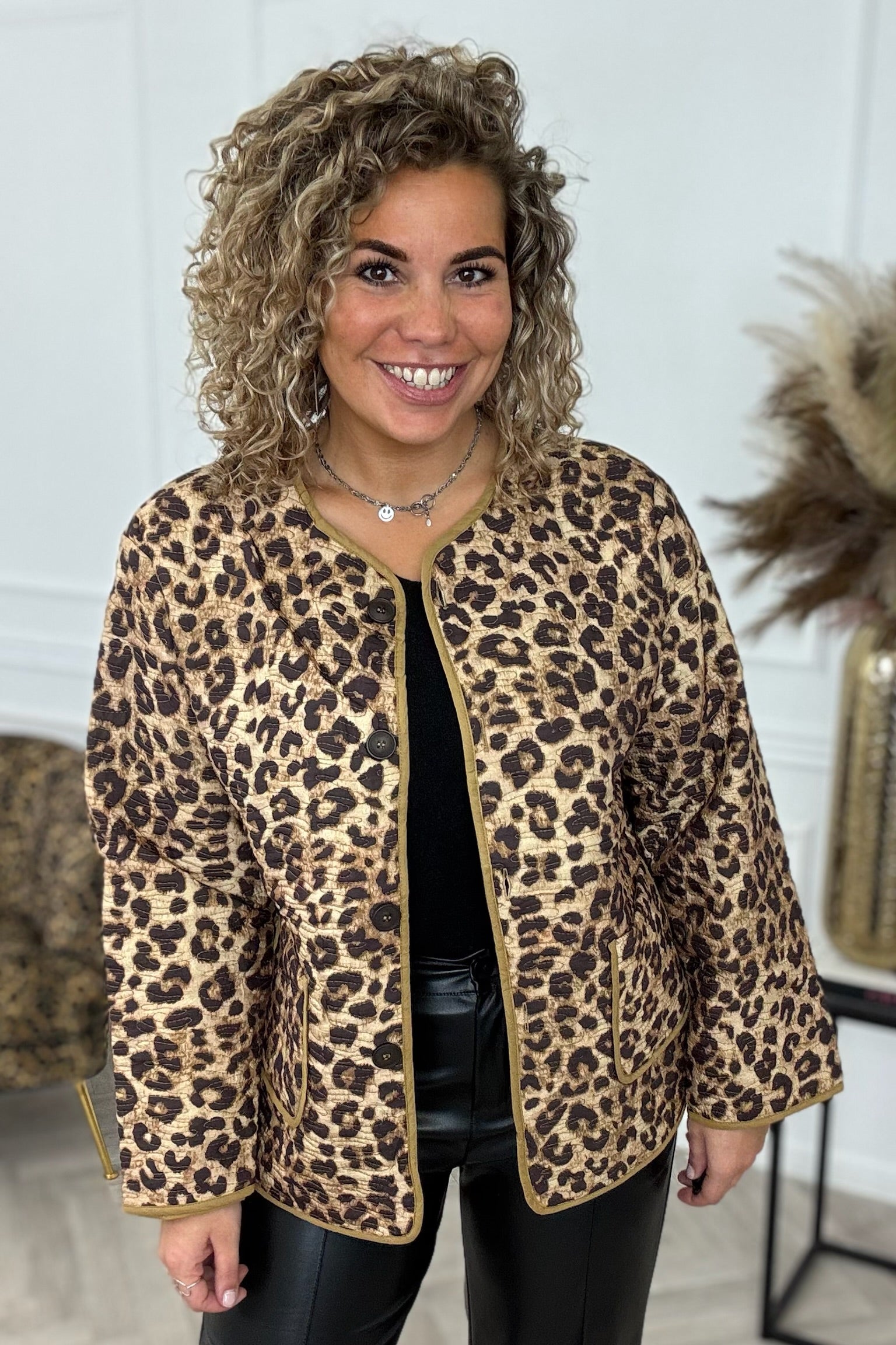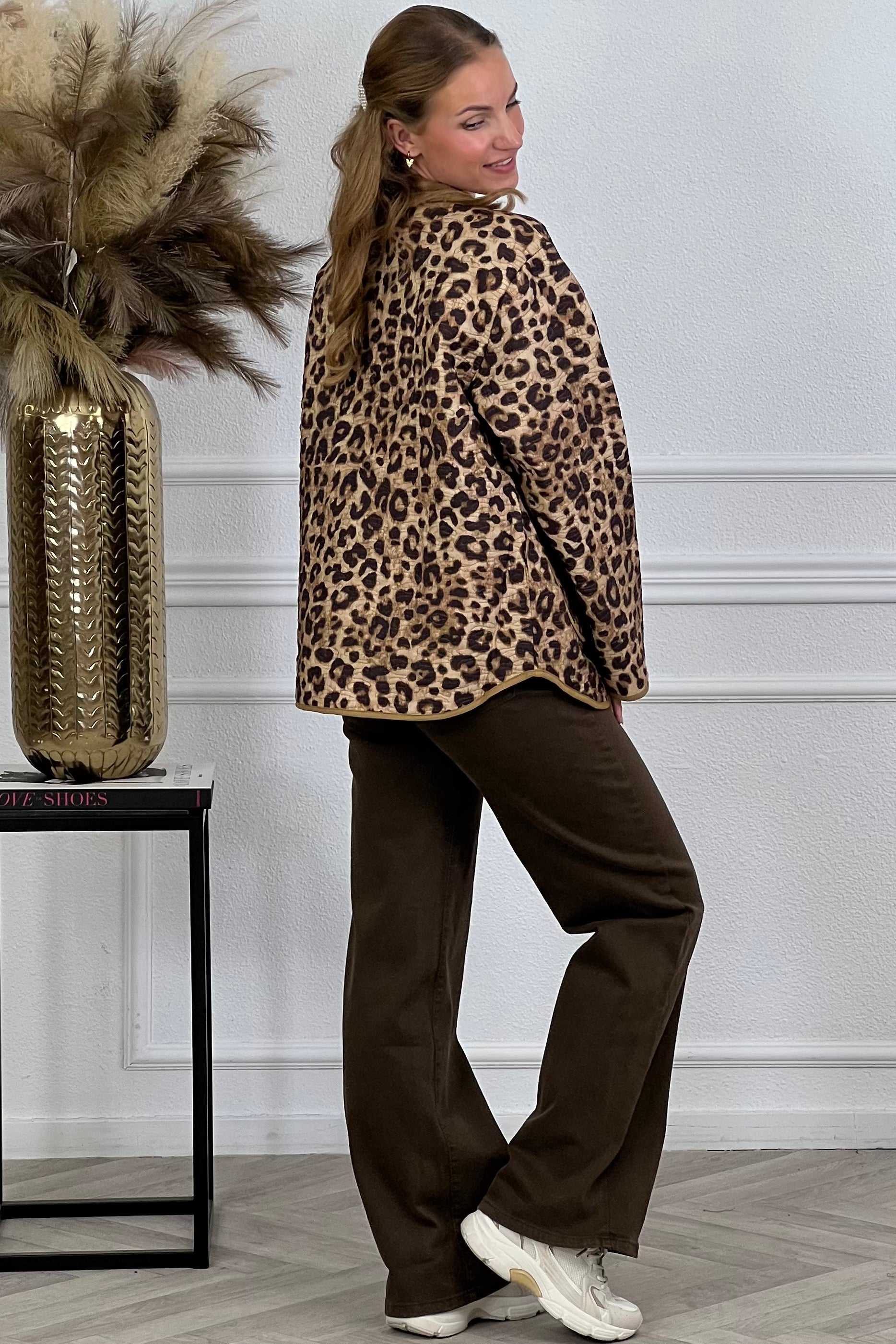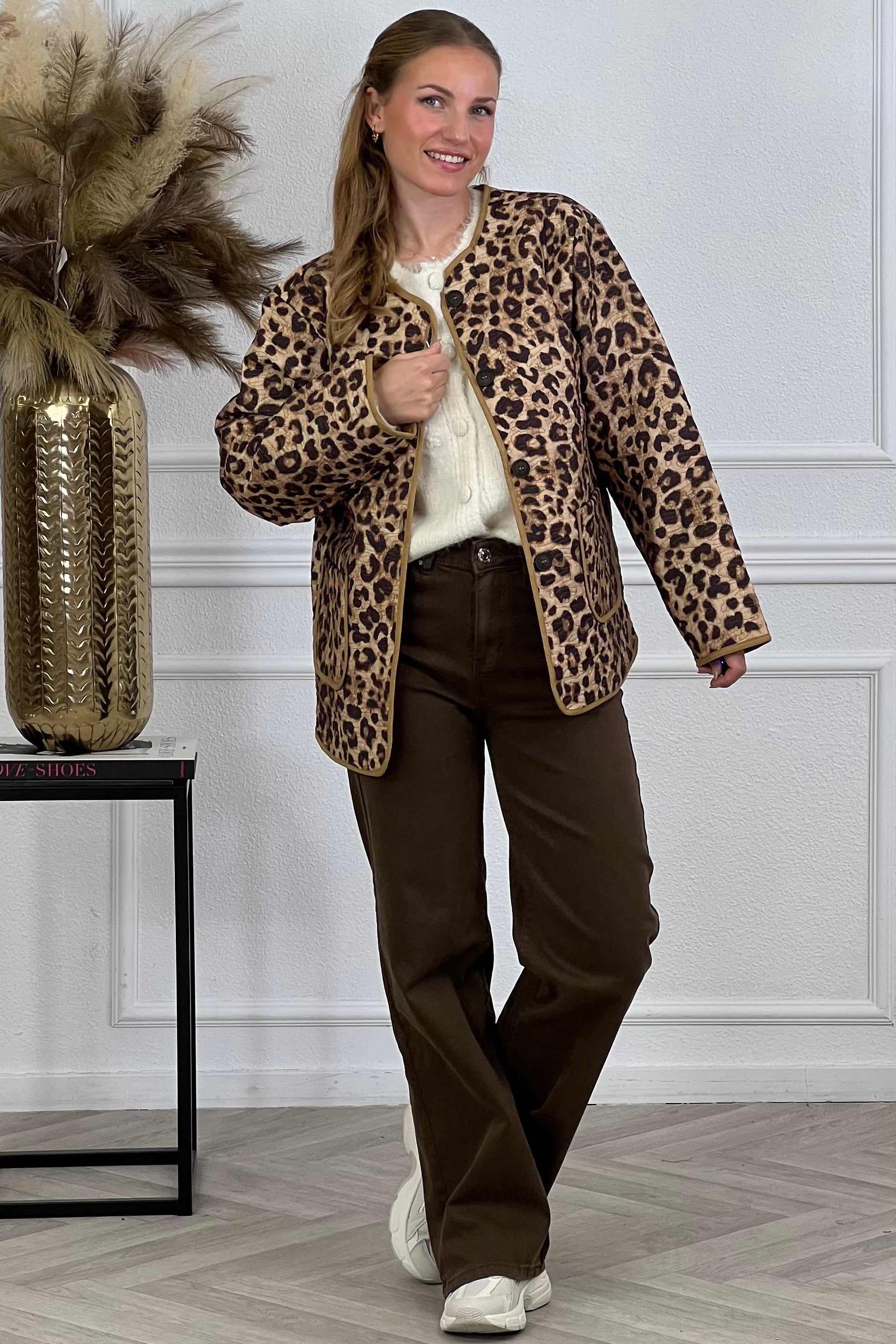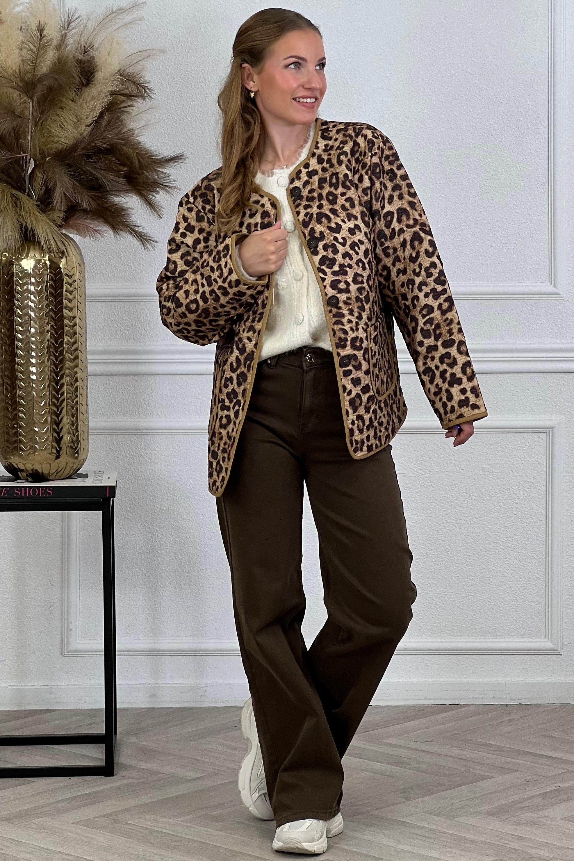 Dit fantastische jasje heeft leopard print, knoopjes en zakken! Shop hem nu in brown/black!