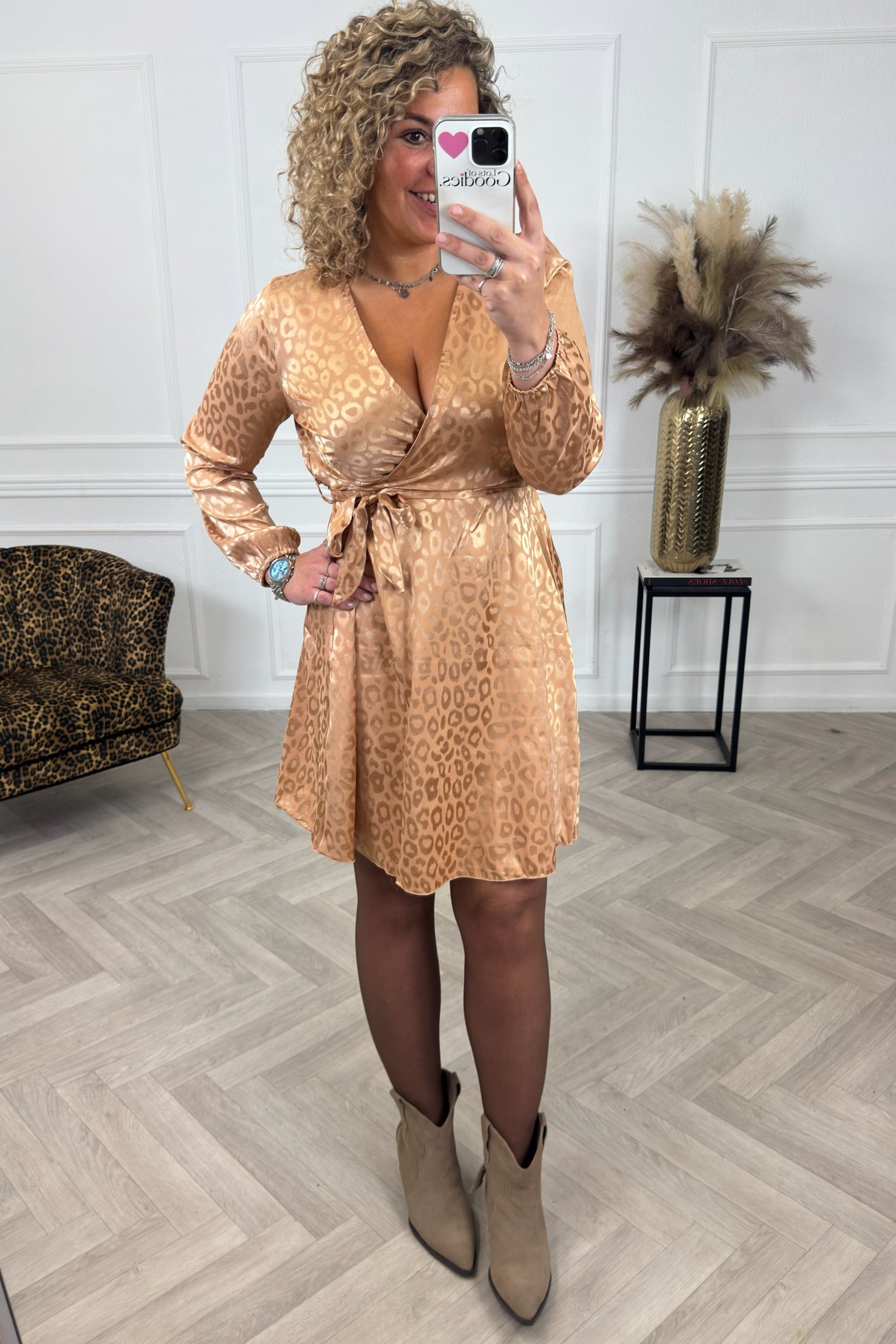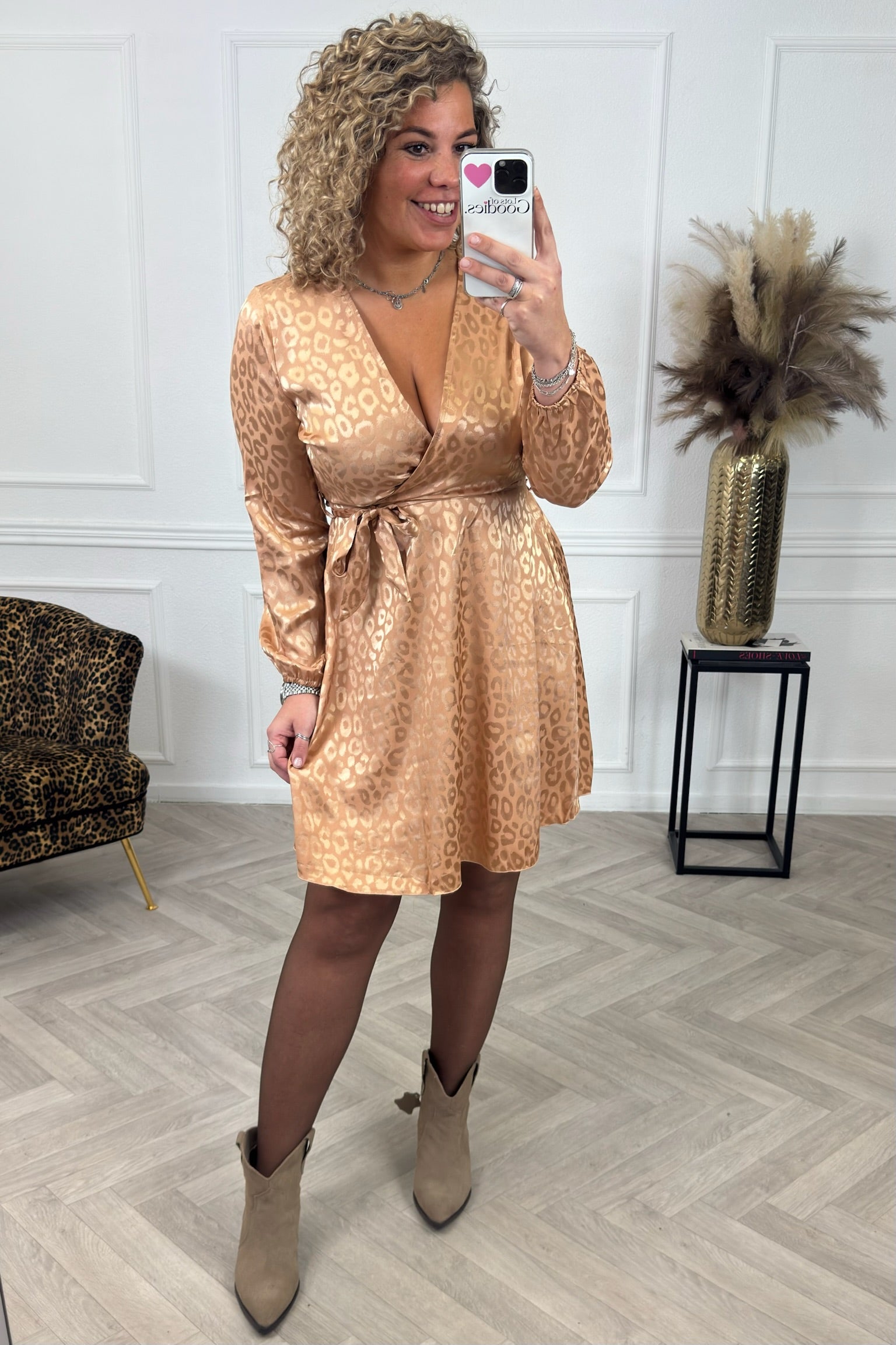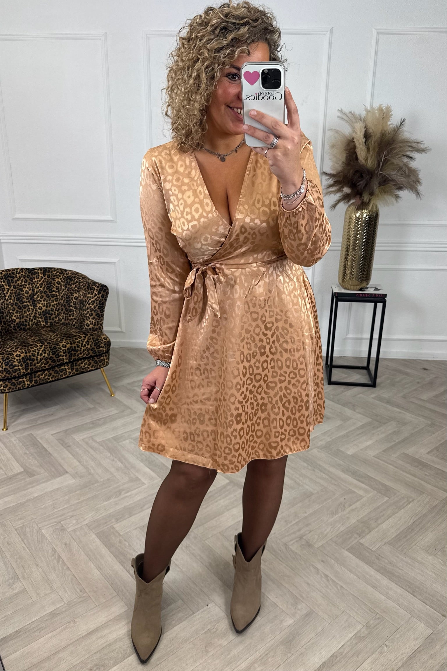 Een mooi wrap jurkje met een satijnen uitstraling en in leopard print! Shop de silk leopard strik dress nu in rose.