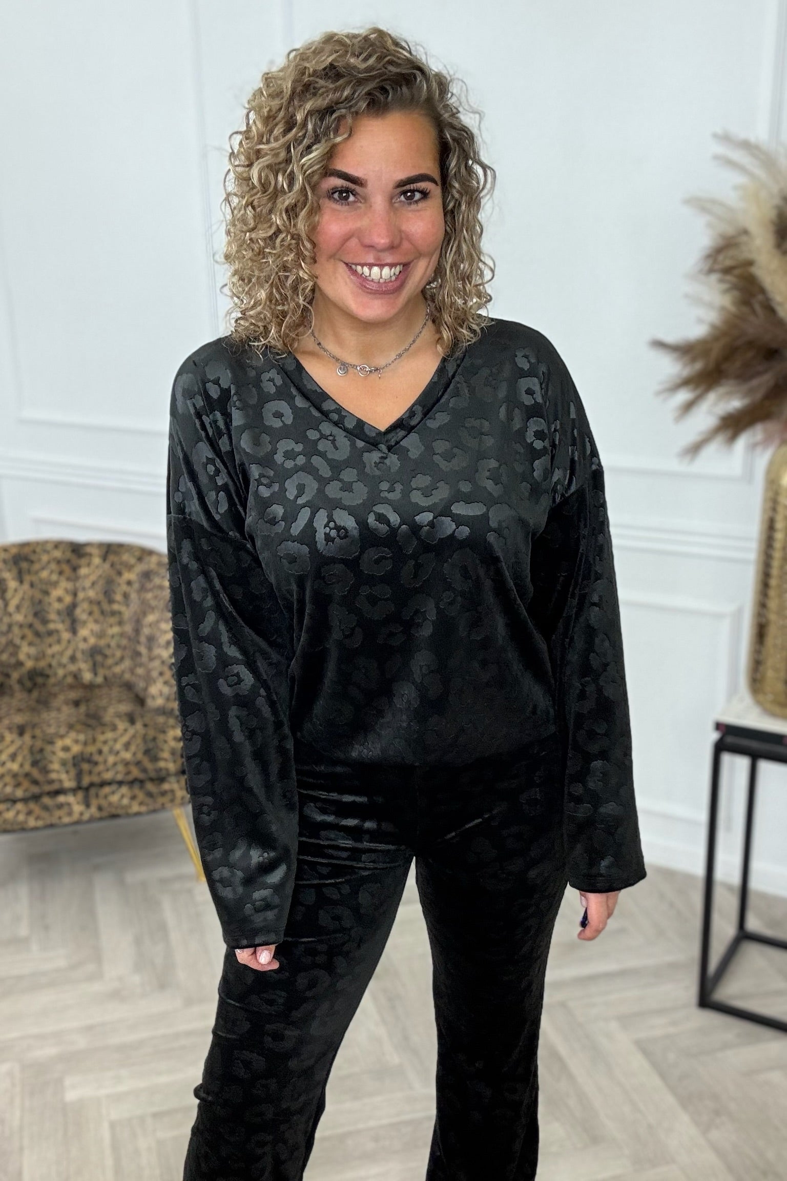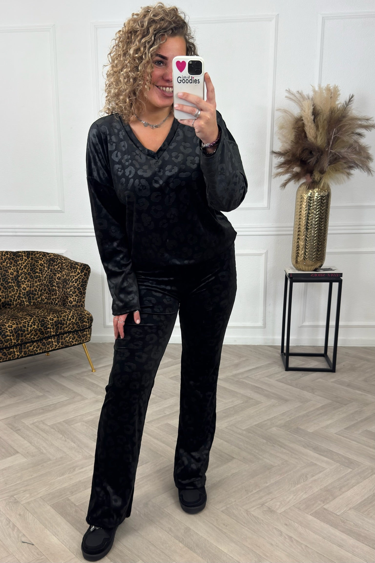 Een heerlijke joggingset, die er ook nog eens leuk uitziet! Shop de velvet leopard jogging set nu snel in black!