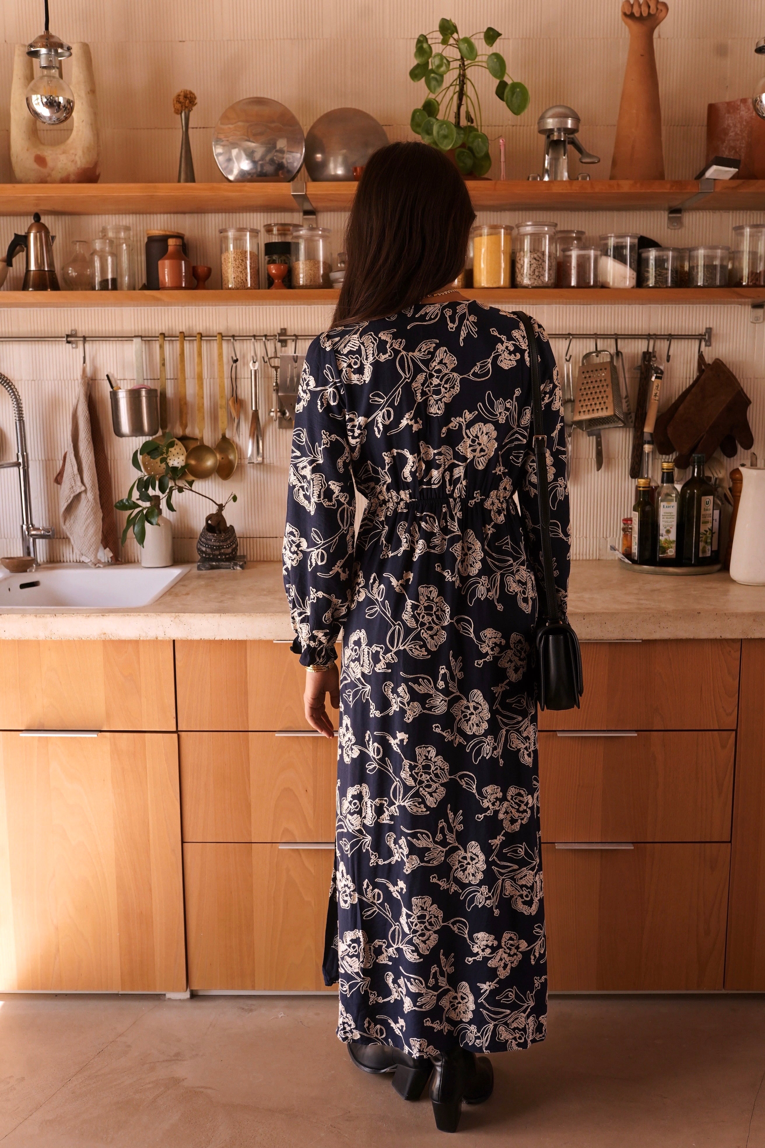 Isabel Flower Dress Long - Black