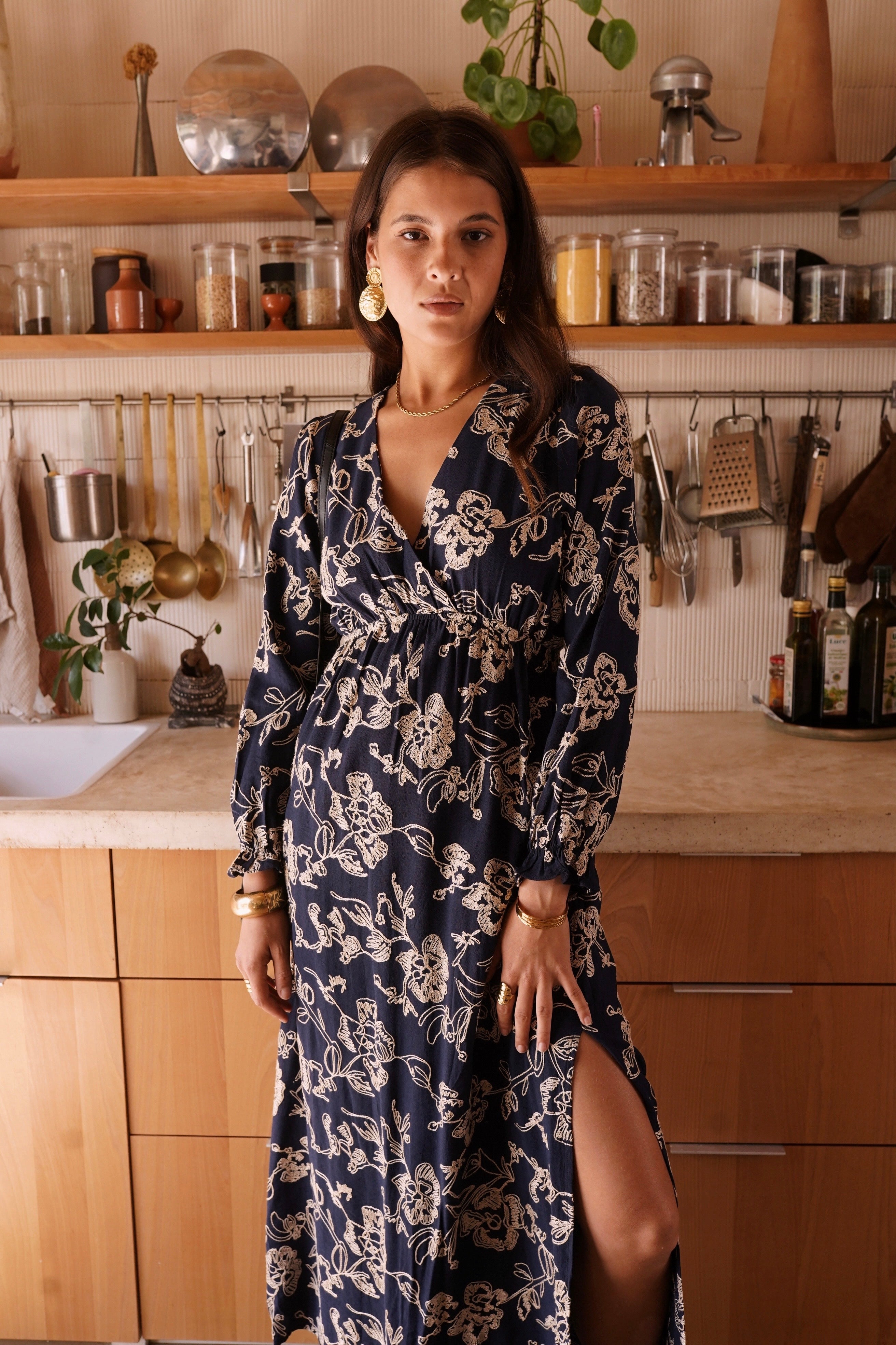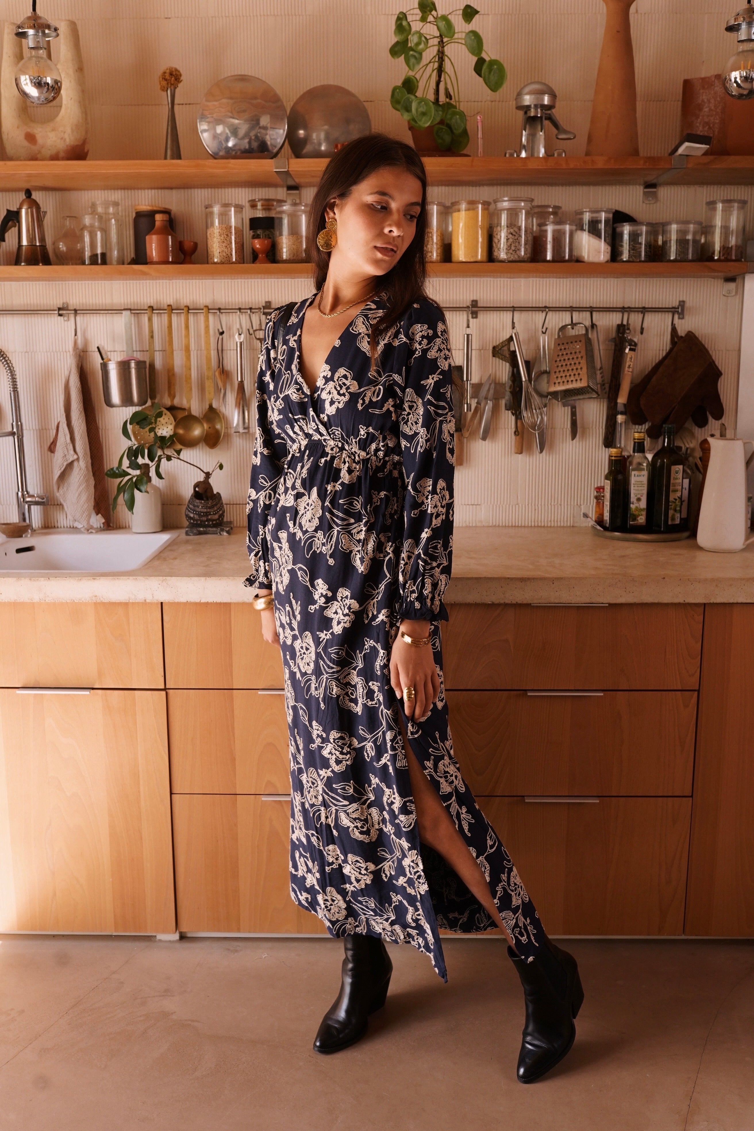 Maxi Barok Split Dress - Marine