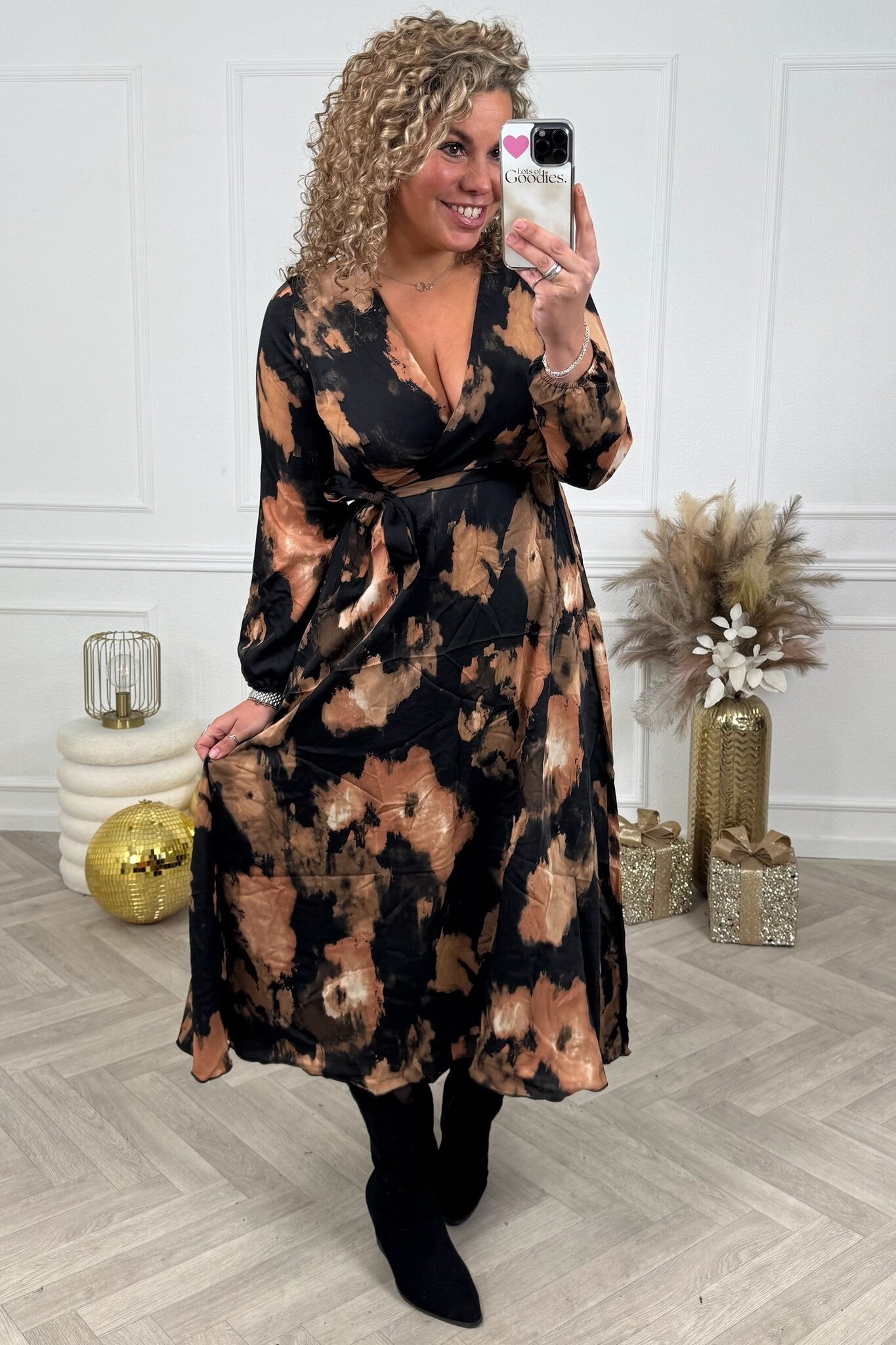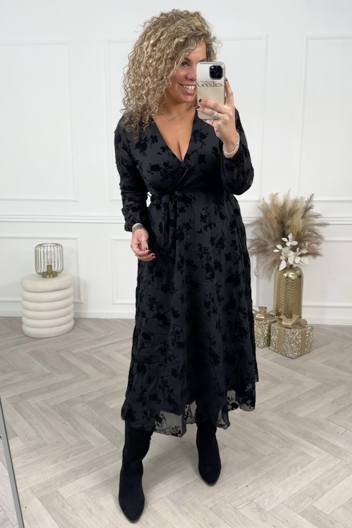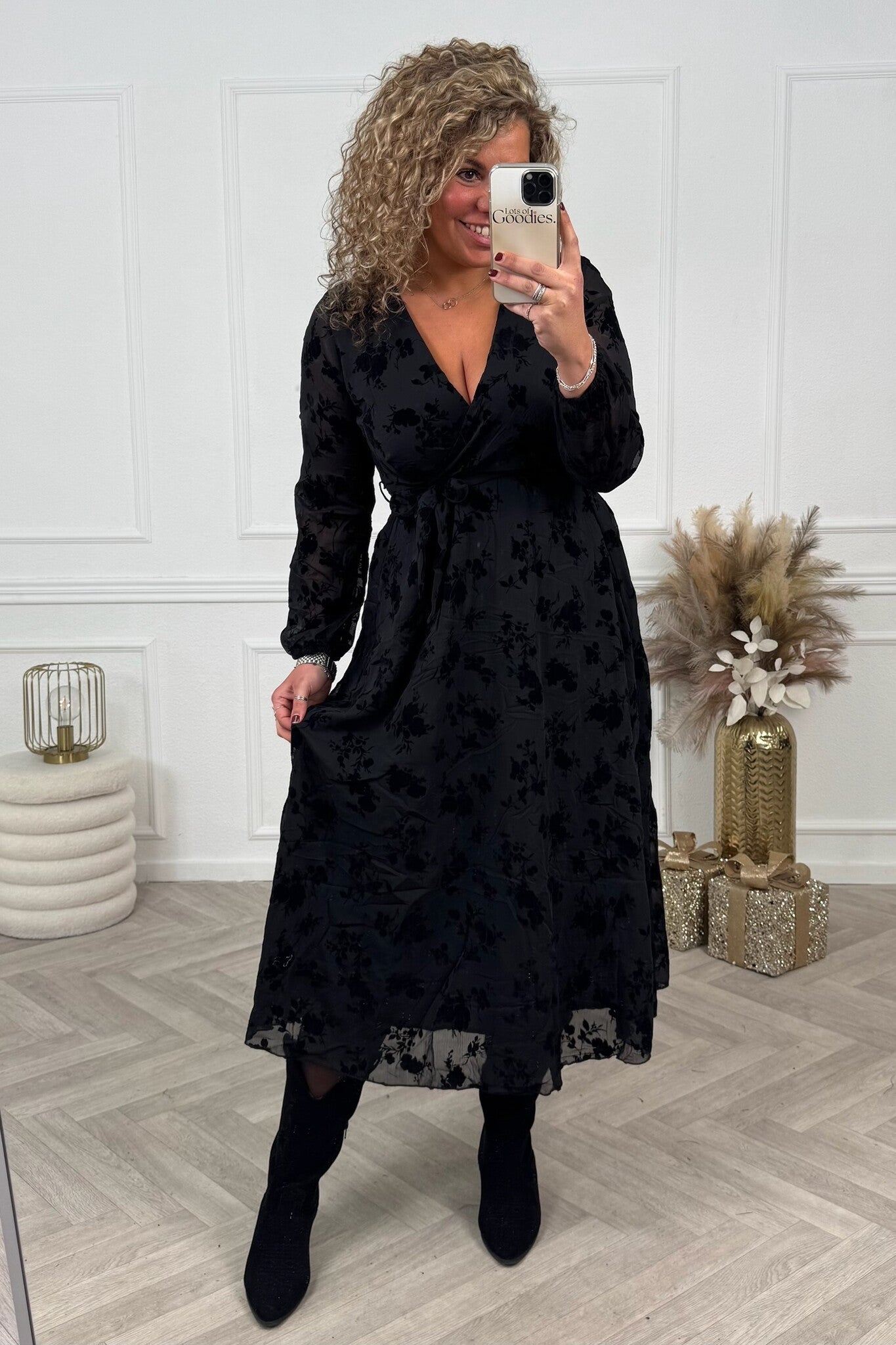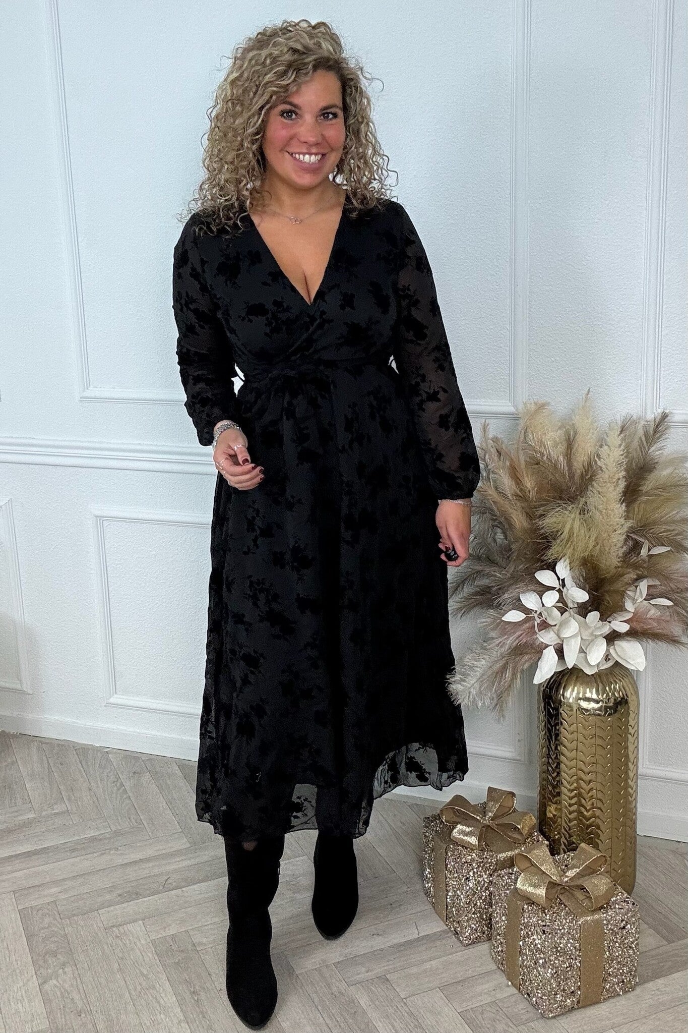 Lieke Flower Dress Long - Black/Gold
