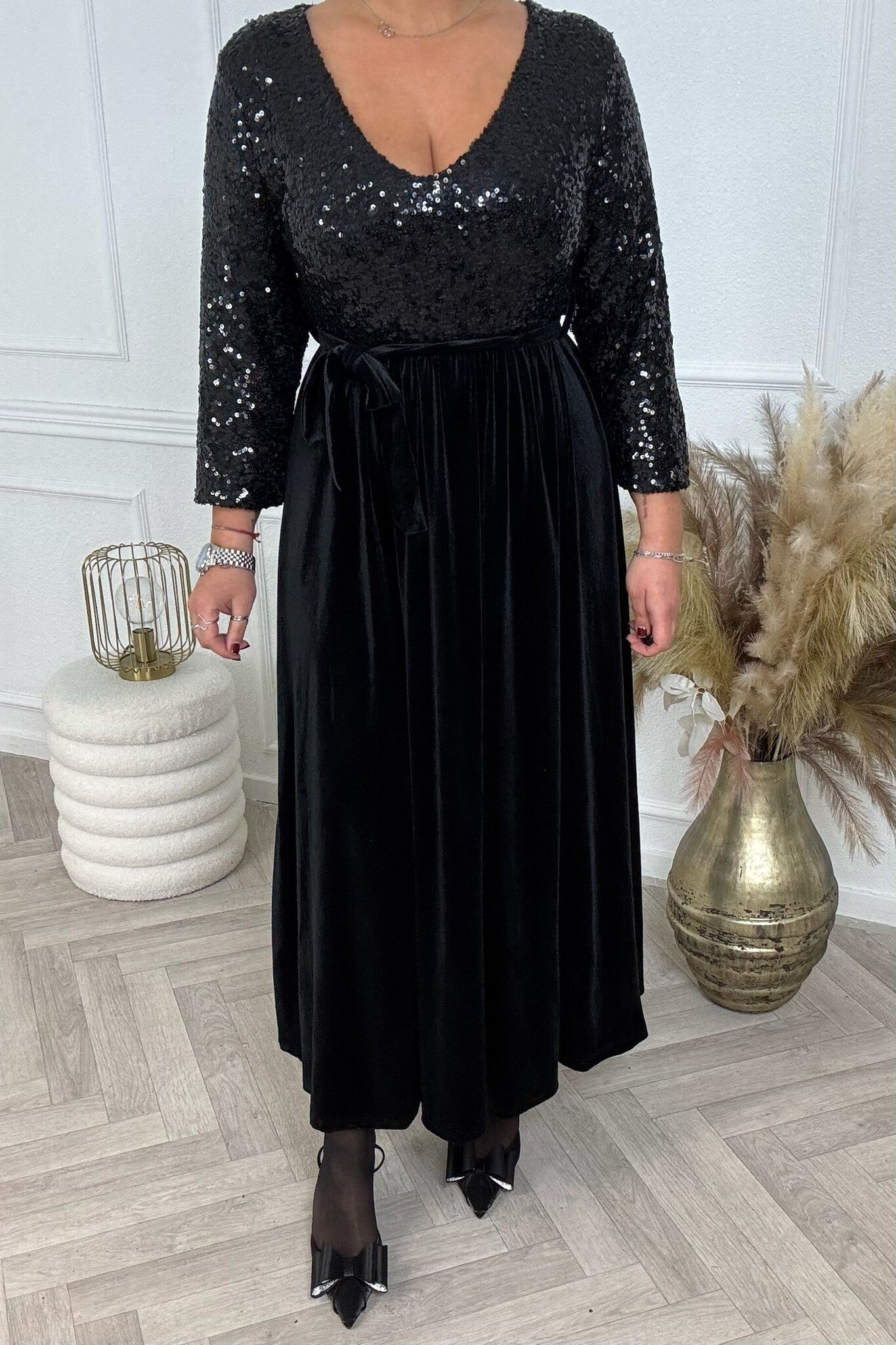 Velvet sequin Maxi Dress - Black/Silver