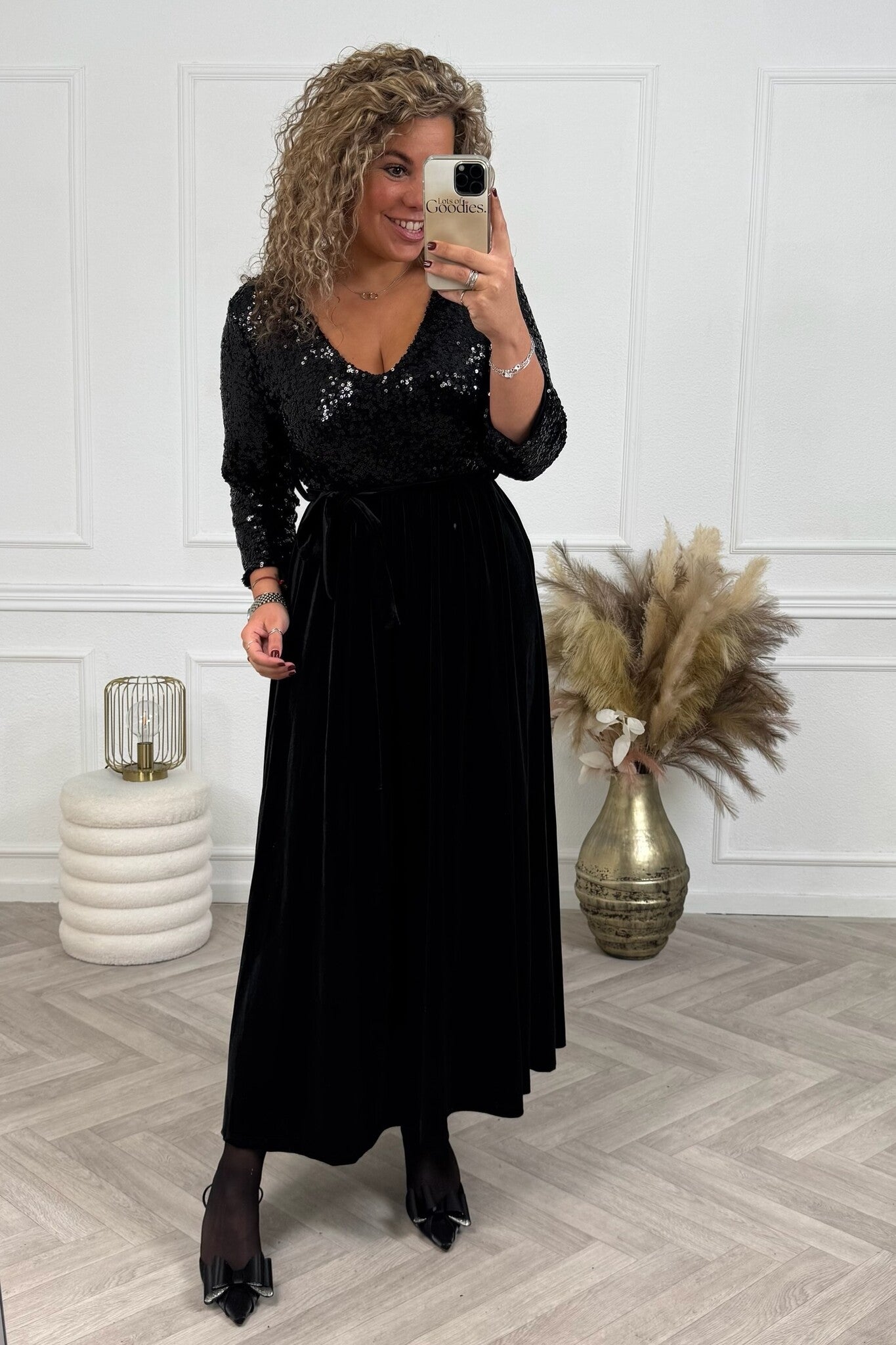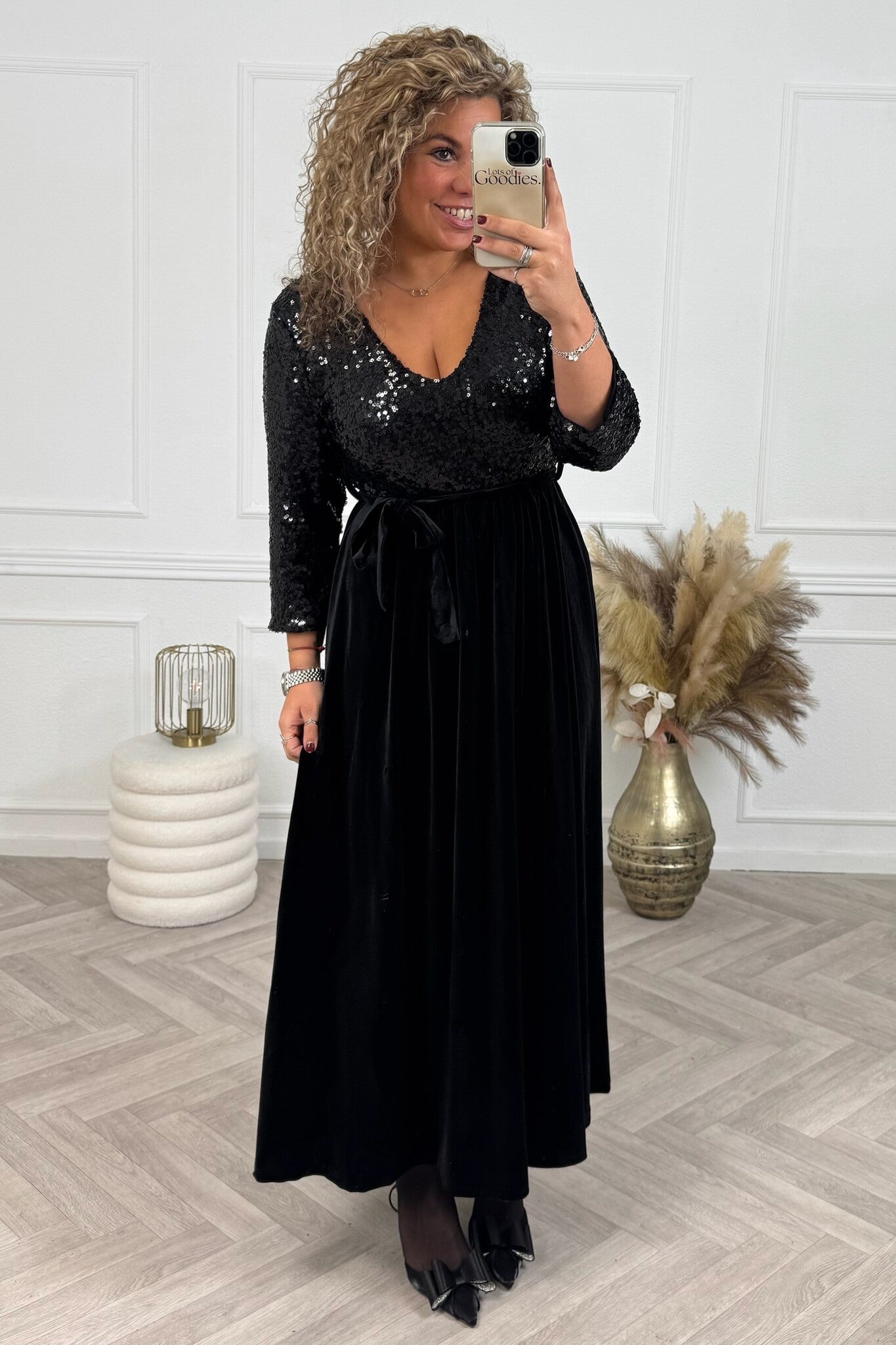 Velvet sequin Maxi Dress - Black/Black