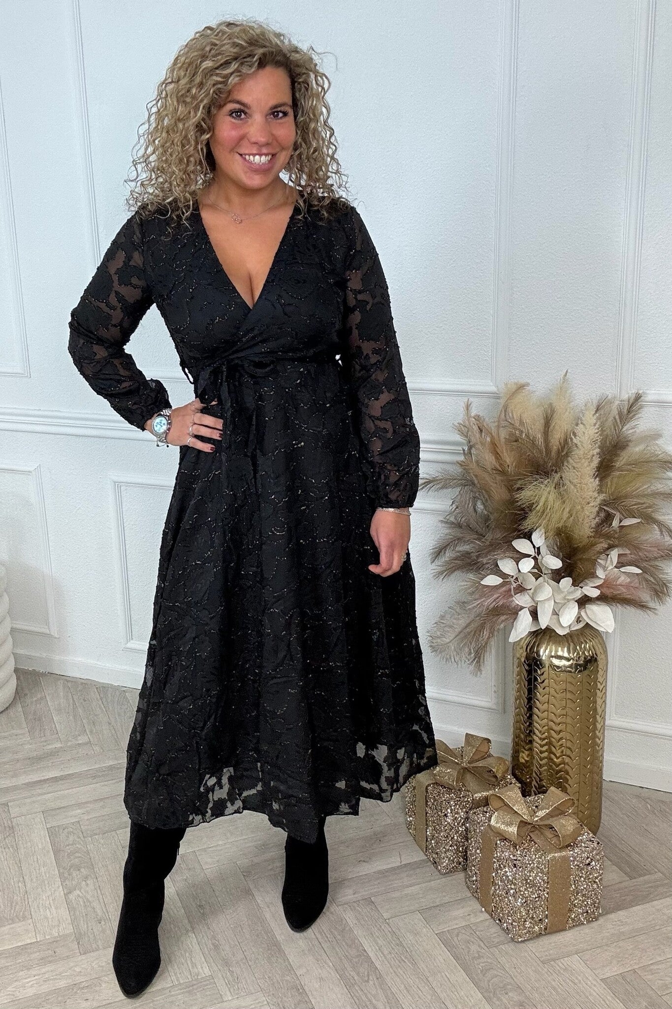 Maxi Sparkle Wrap Dress - Black