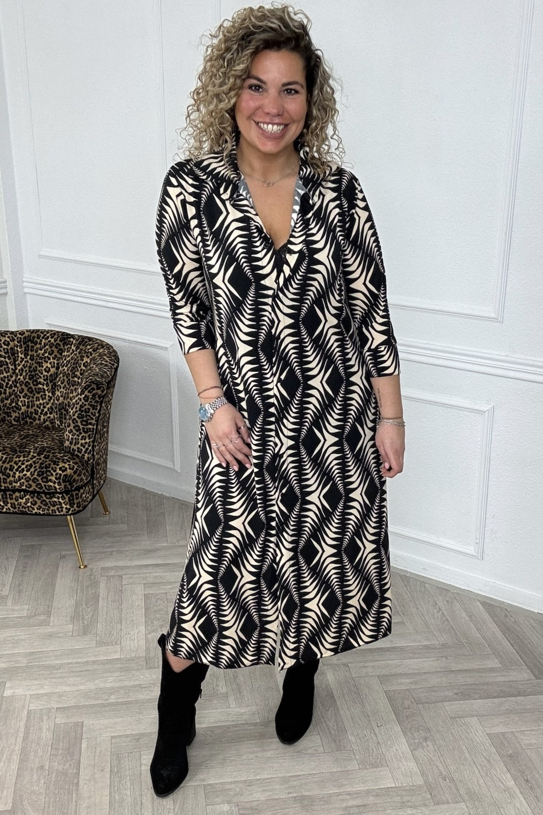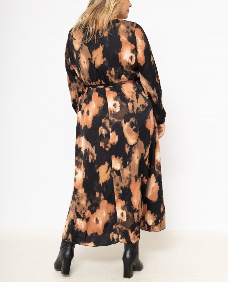 Maxi Blouse Leopard Dress - Black/Camel
