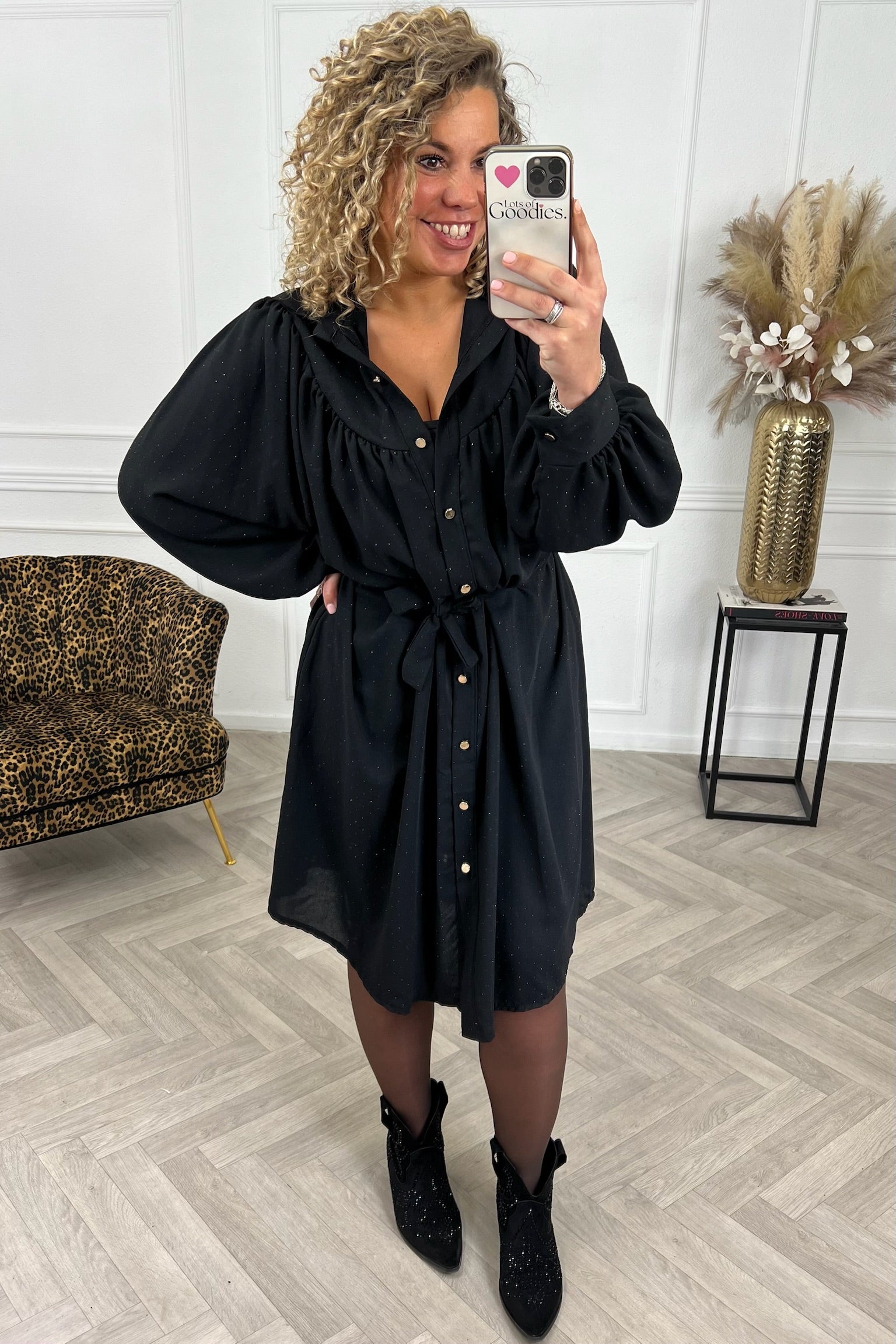 Een super mooie glitter jurk! Het is een curvy jurk, dus de maat is zeker tot een maat 48 te dragen! Shop de curvylivia midi sparkle dress nu in black/black.