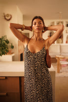 Deze mooie maxi jurk heeft een v-hals en een prachtige leopard print. Shop hem nu in brown!